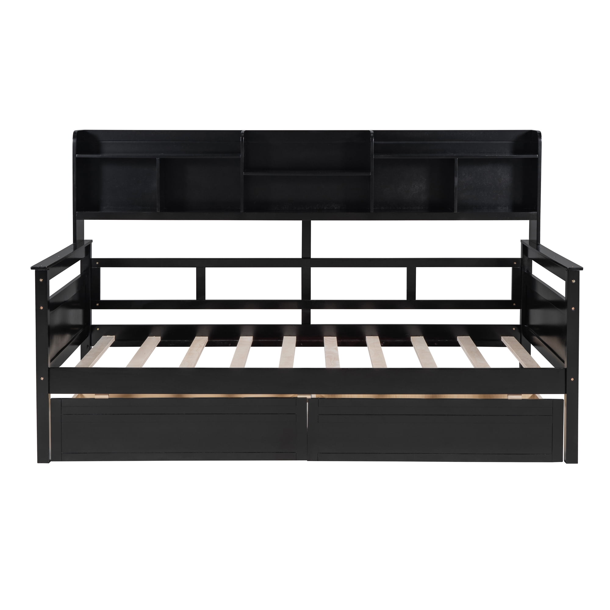 Euroco Wood Twin Size Platform Bed with 2 Drawers, Captain Bed with Storage Shelves, Espresso