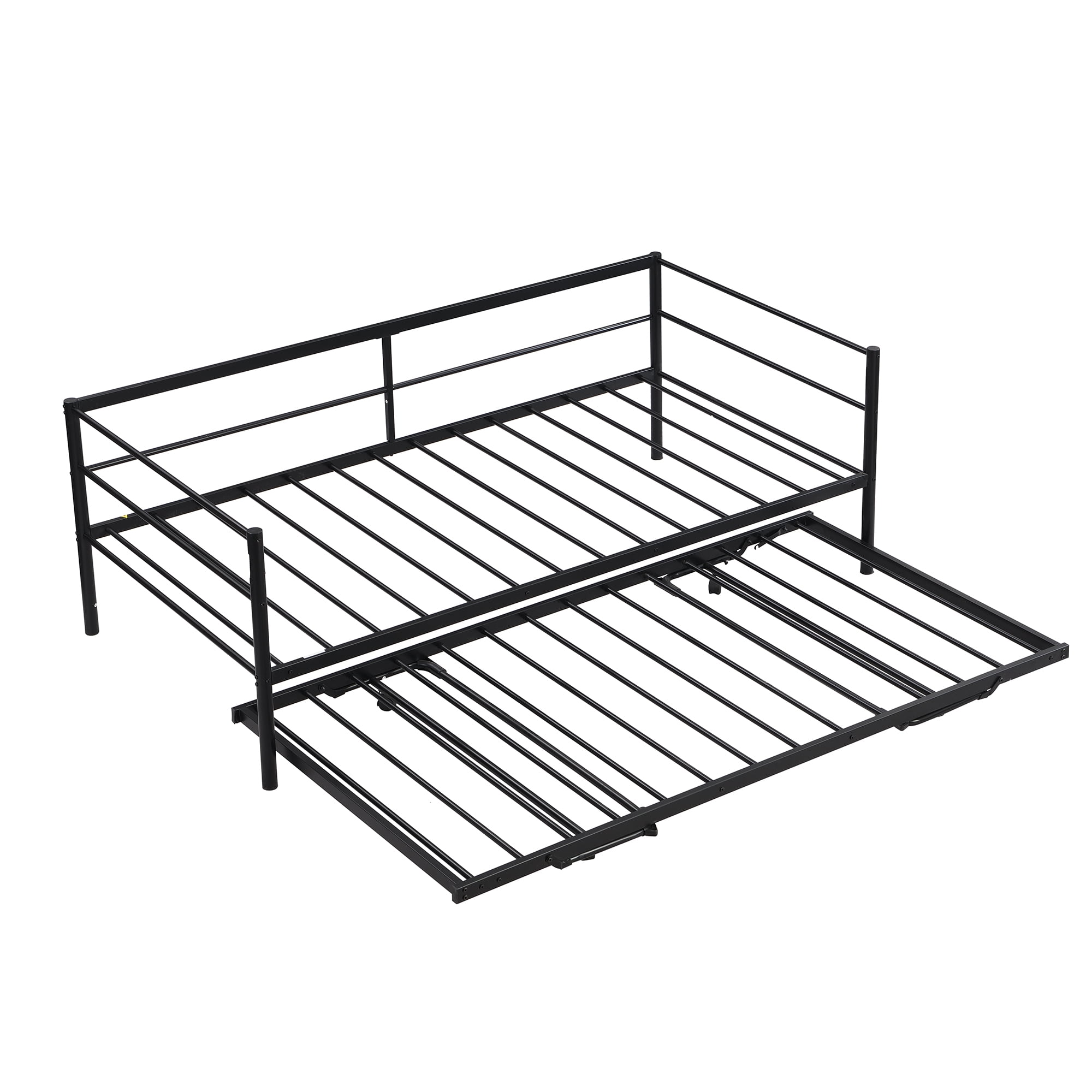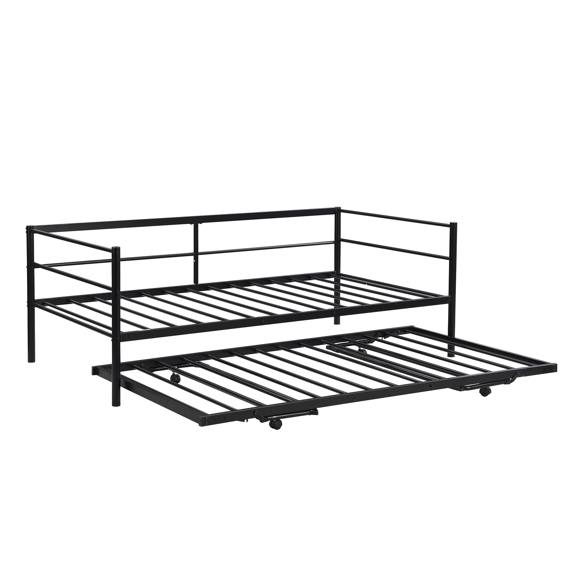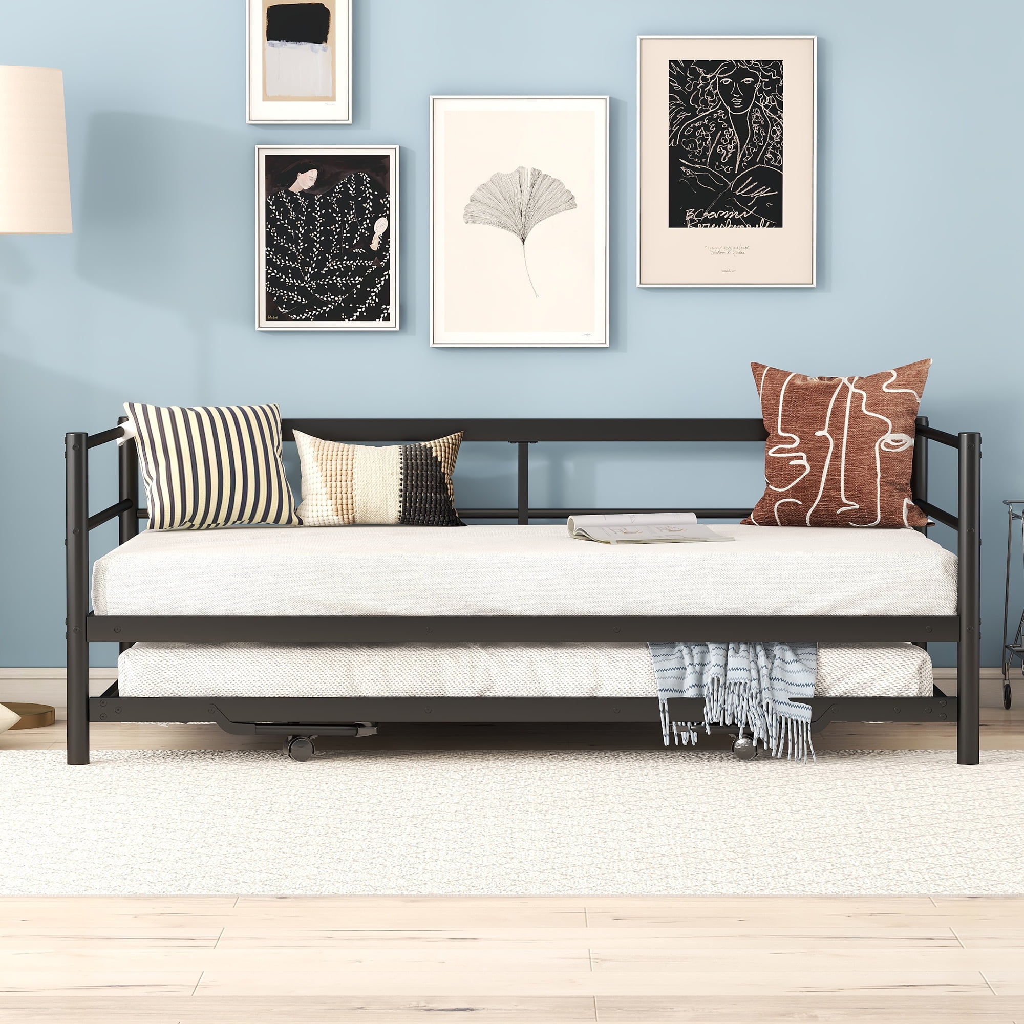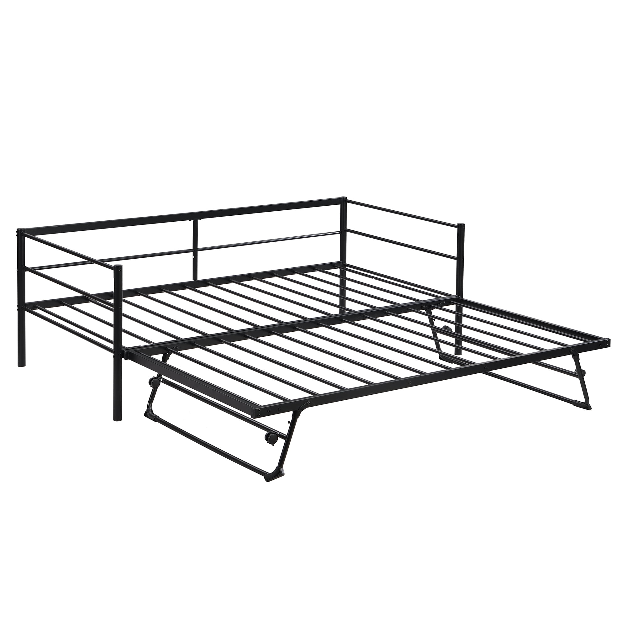 Euroco Modern Metal Twin Platform Bed,Convertible Daybed with Pop up Trundle for Extra Storage,Black