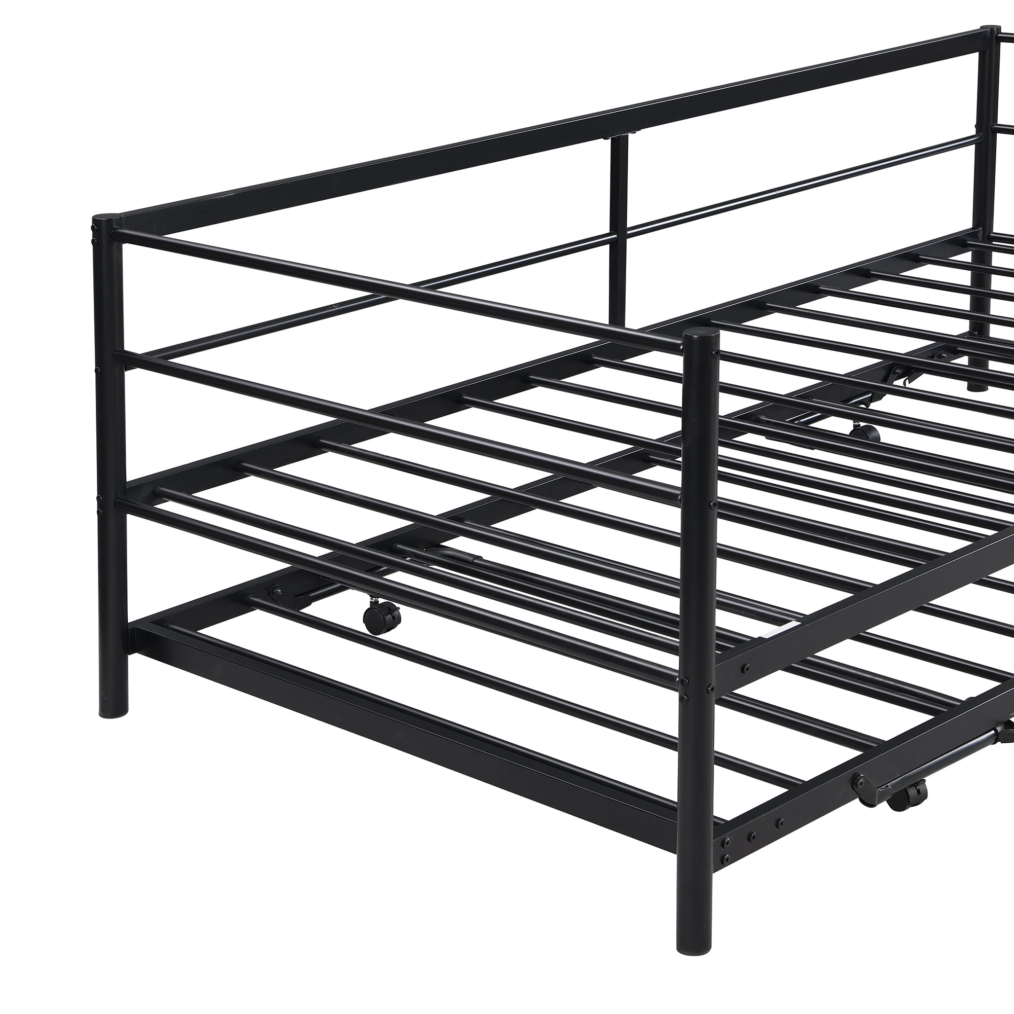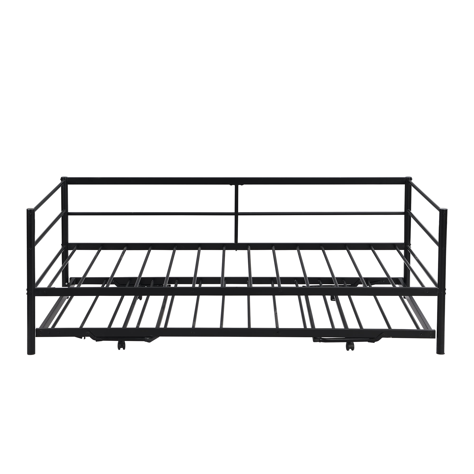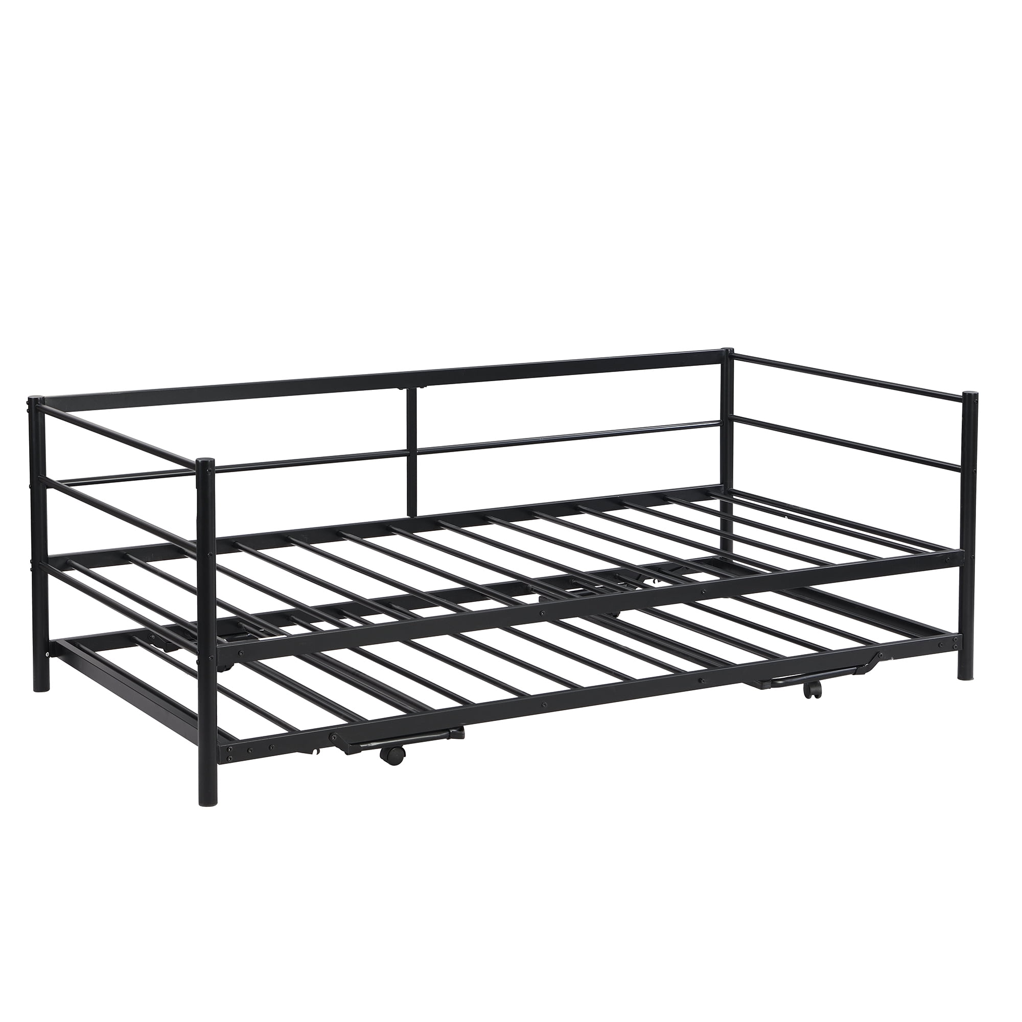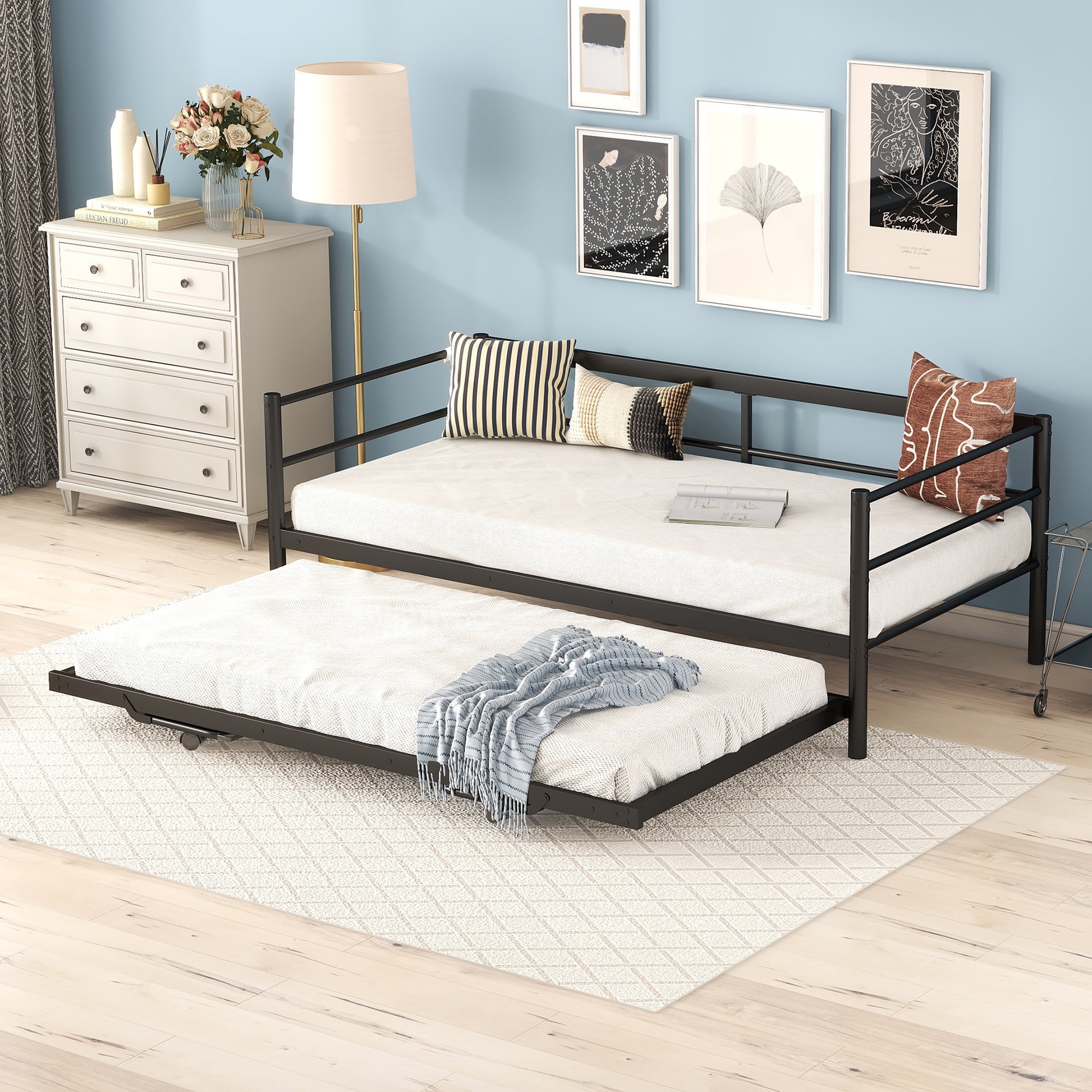Euroco Modern Metal Twin Platform Bed,Convertible Daybed with Pop up Trundle for Extra Storage,Black