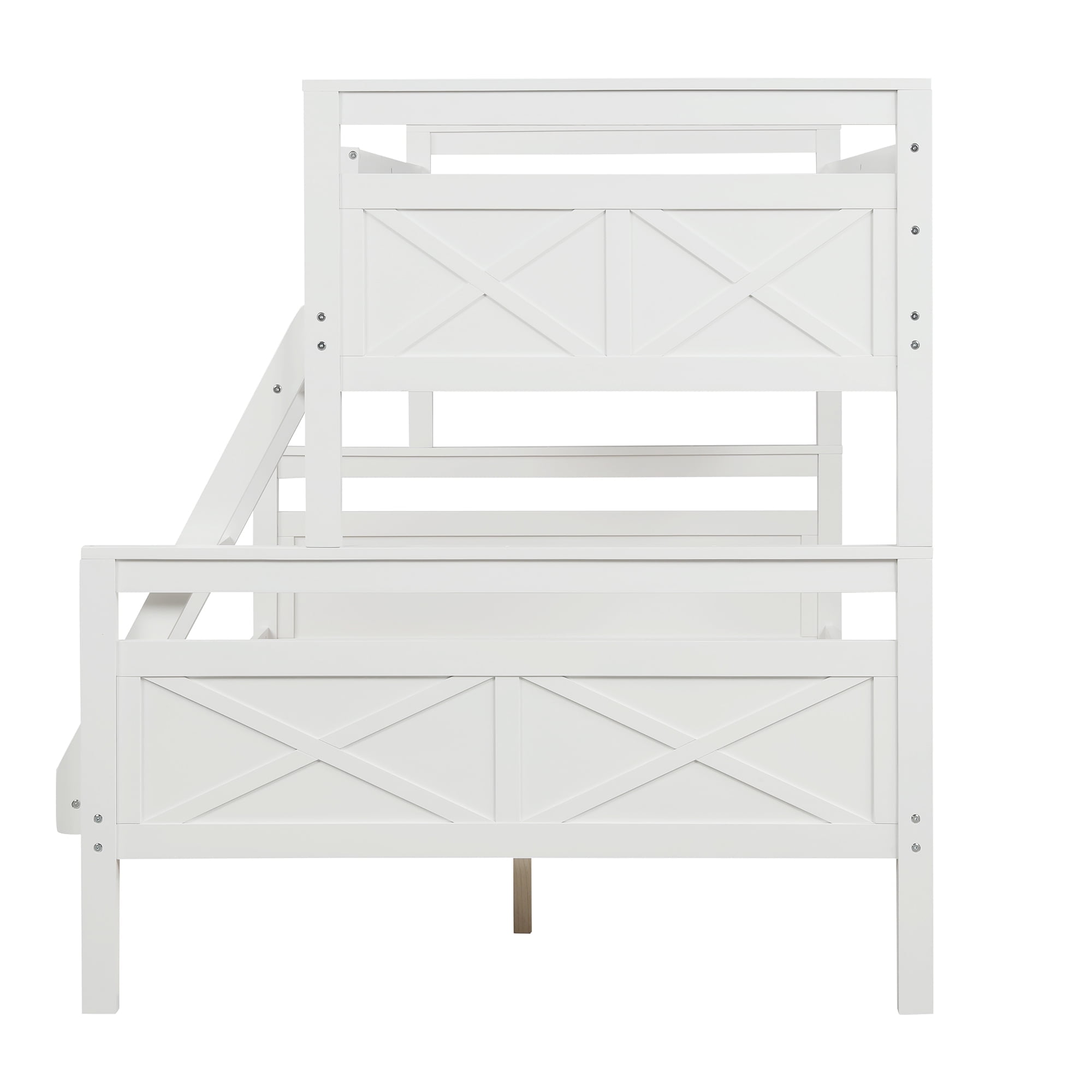 Euroco Modern Solid Wood Twin over Full Kids Bunk Bed Frame with Ladder, White