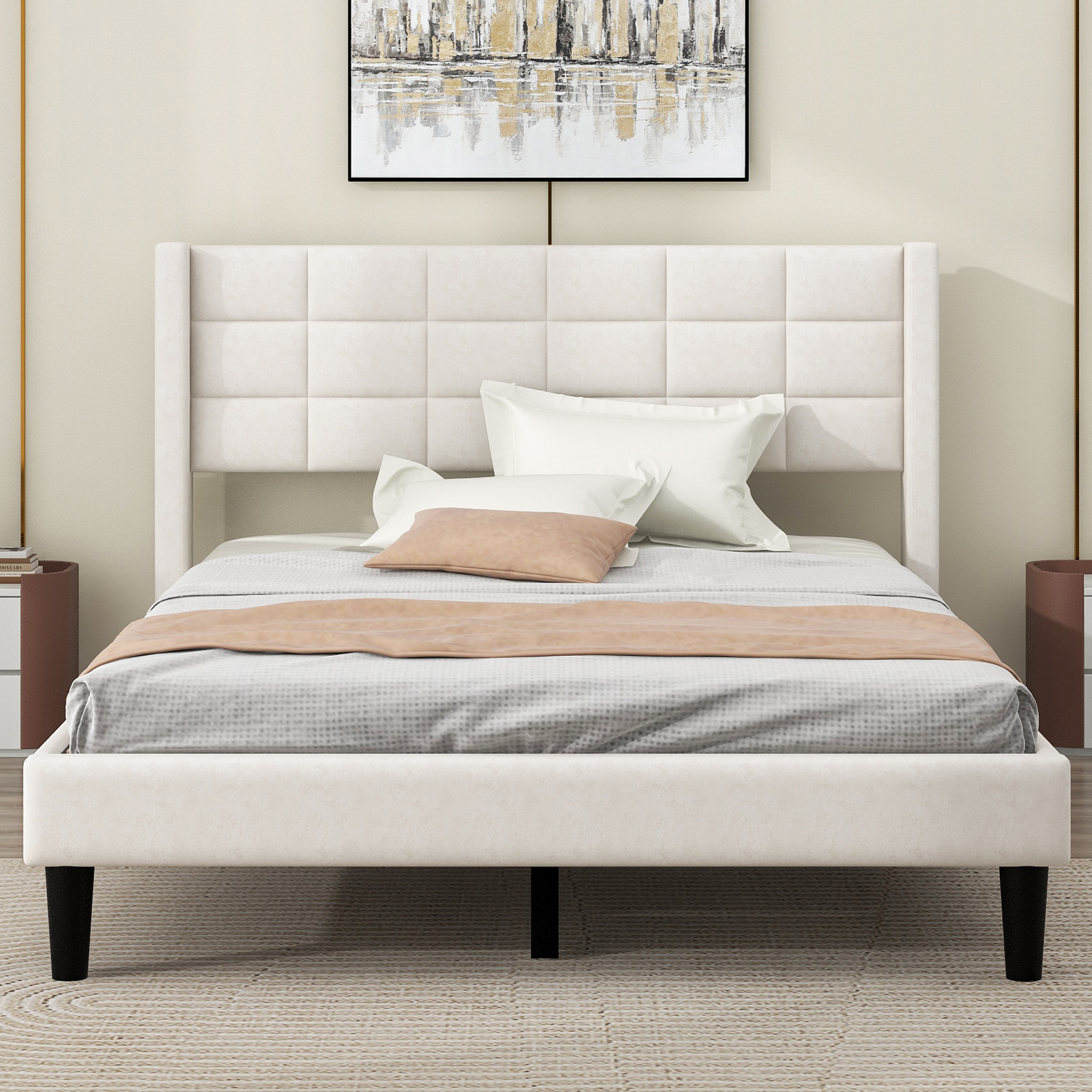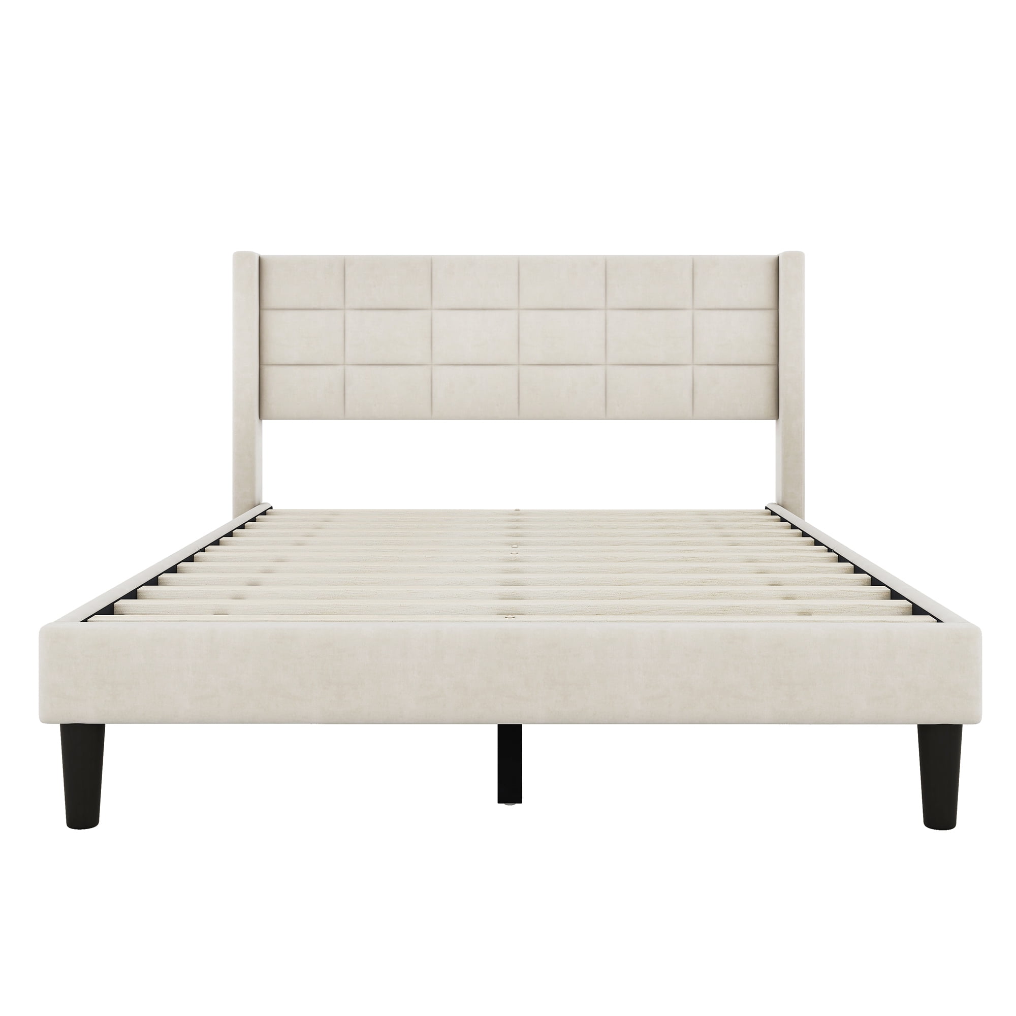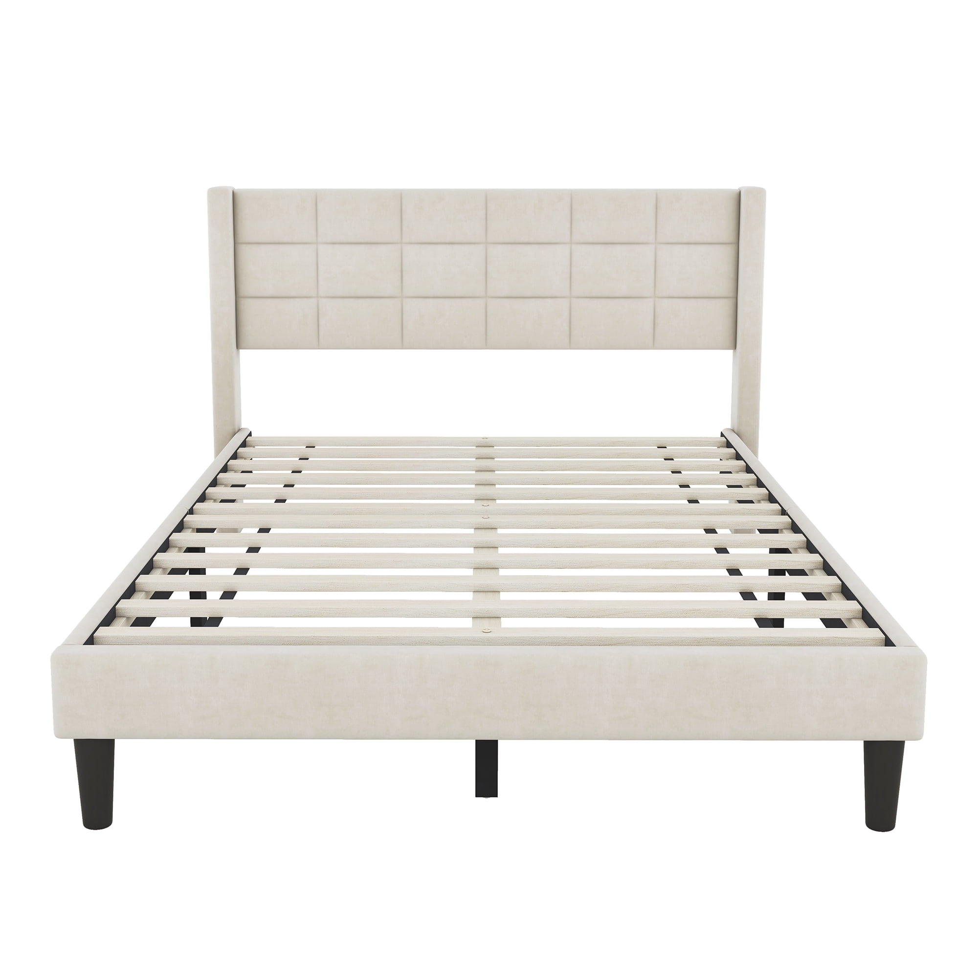 EUROCO Modern Upholstered Queen Platform Bed for Kids Teens Adults Bedroom, Beige