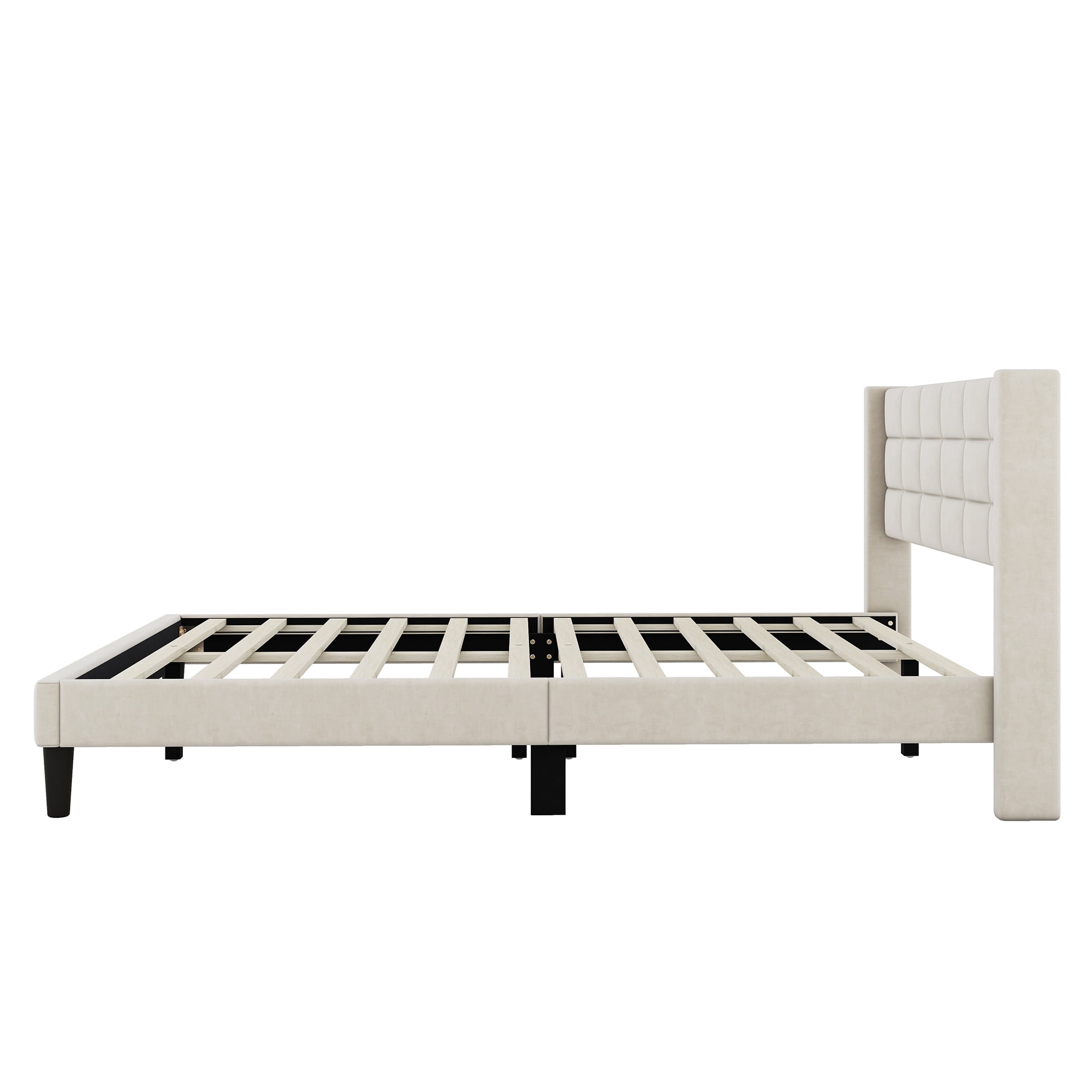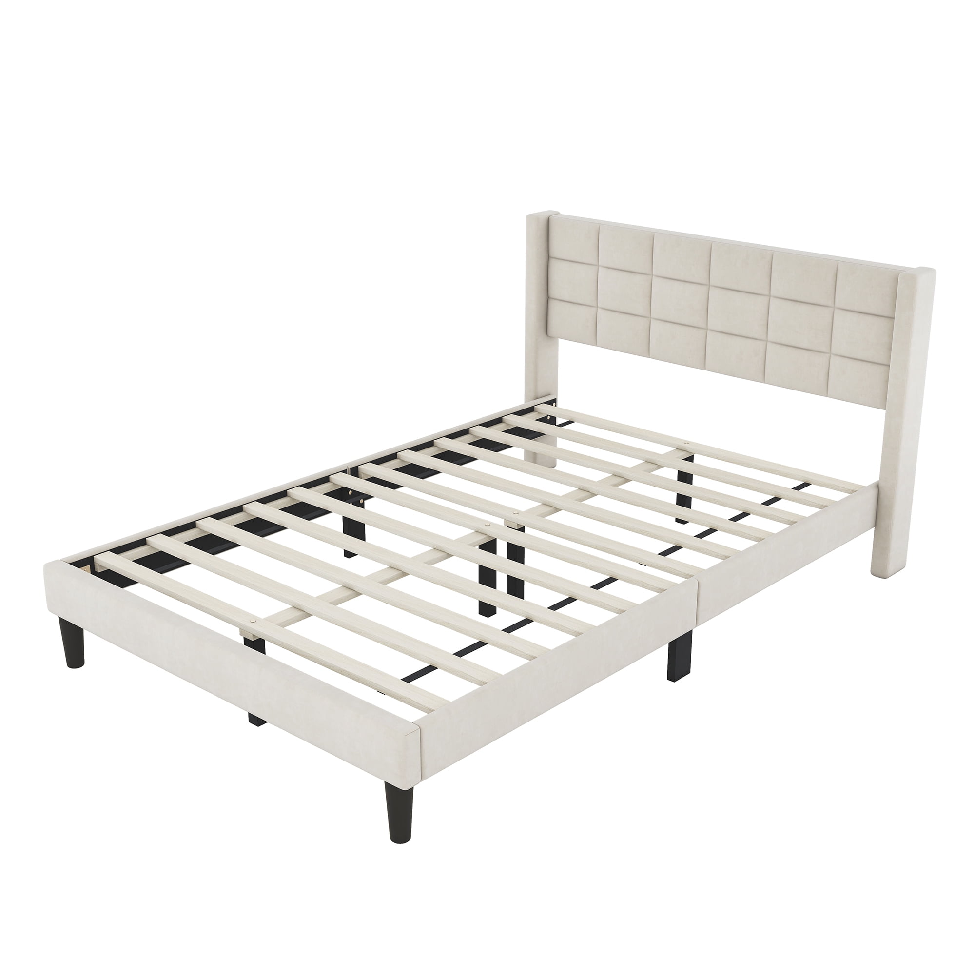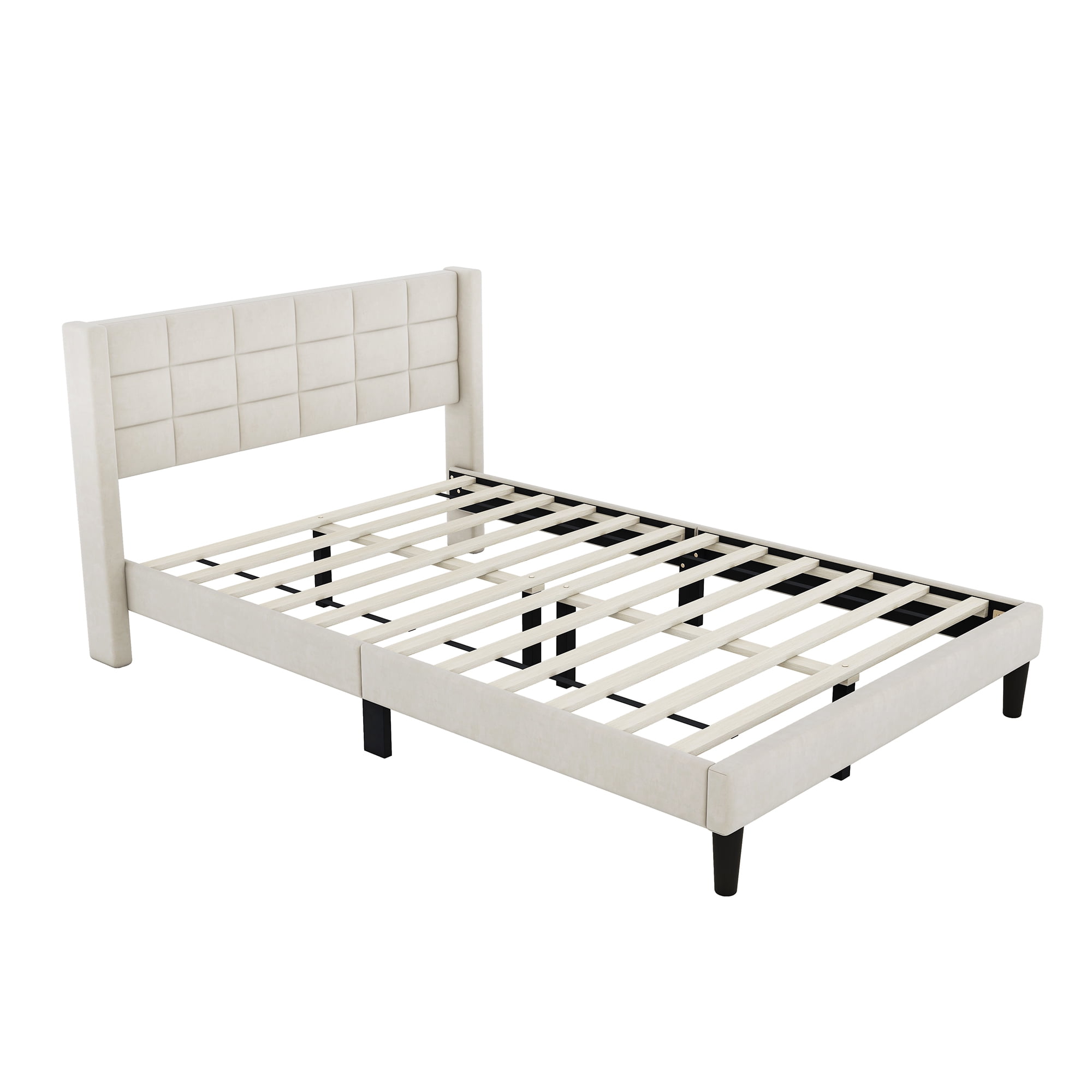 EUROCO Modern Upholstered Queen Platform Bed for Kids Teens Adults Bedroom, Beige