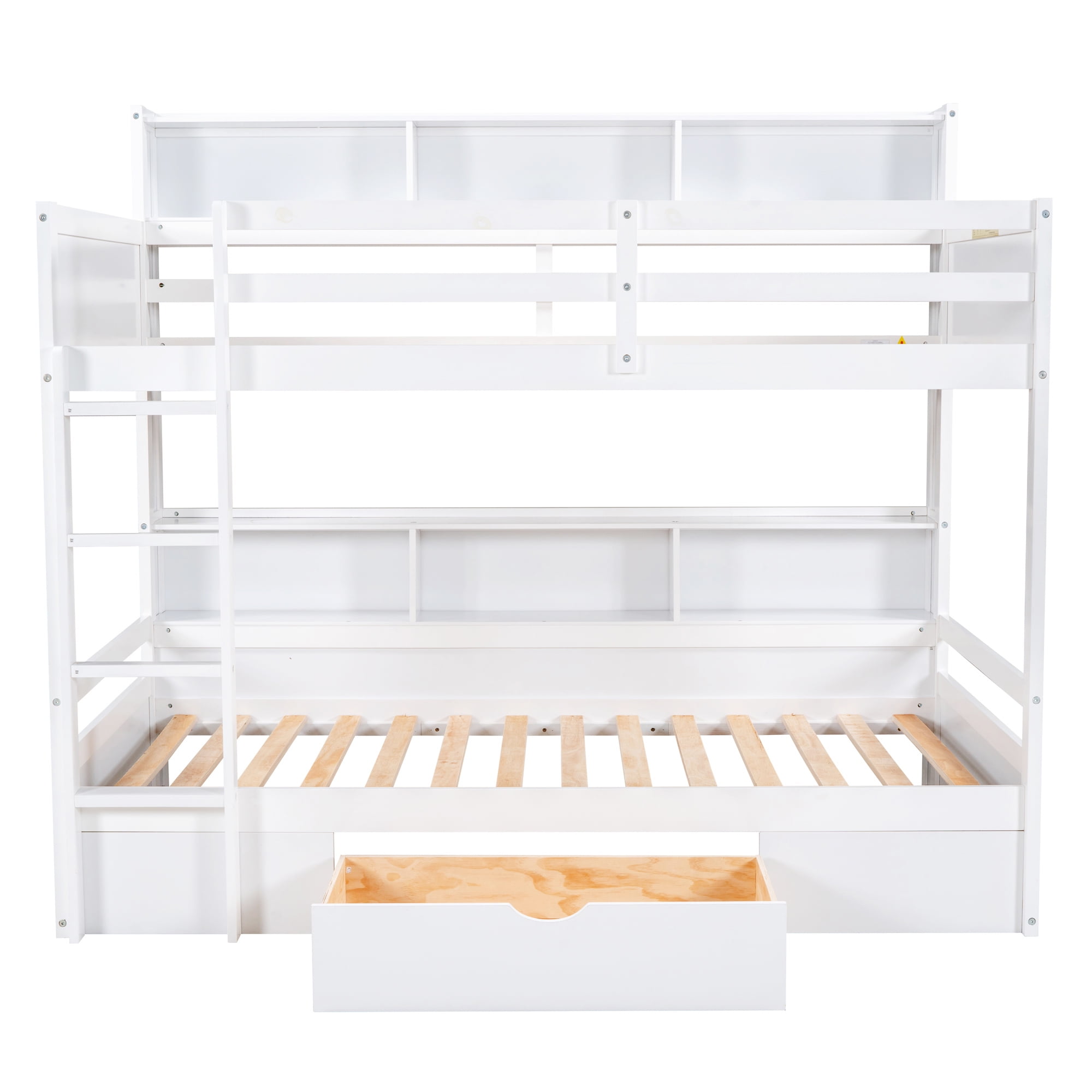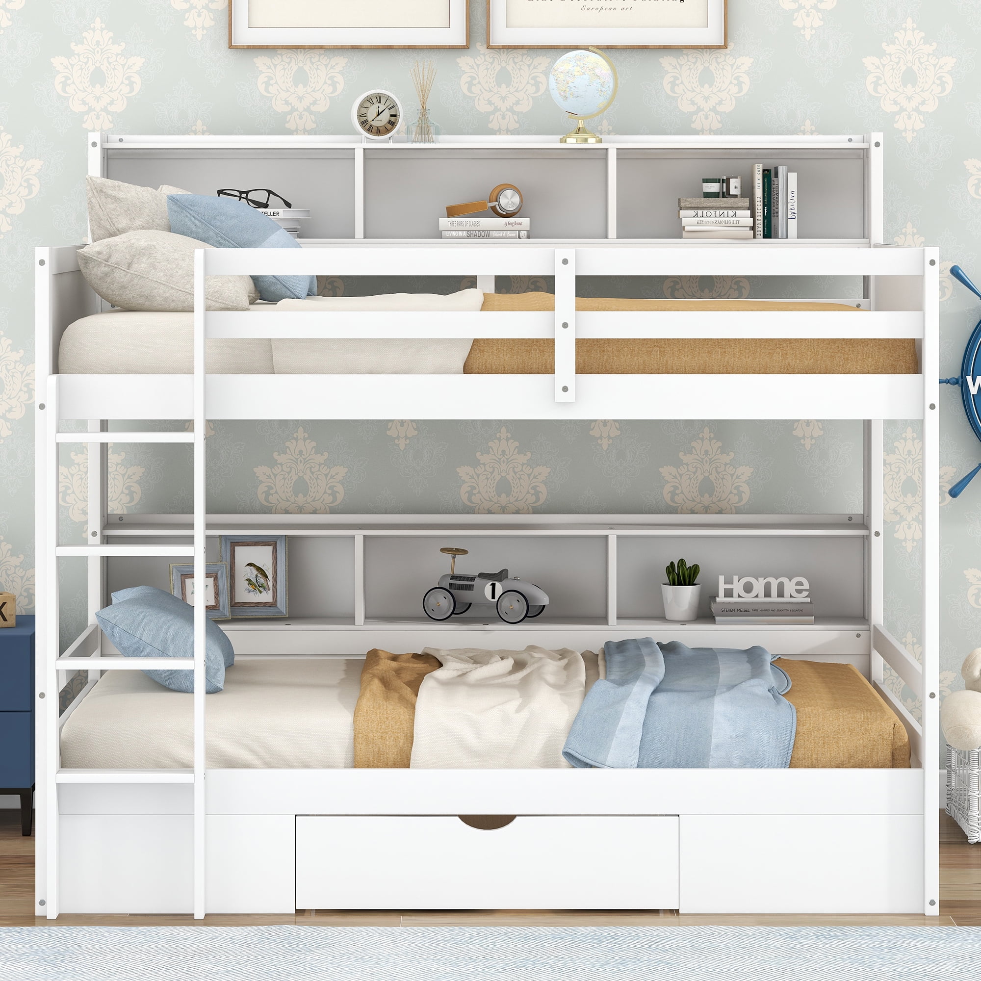Euroco Modern Wood Twin Bunk Bed with Shelves and Drawer for Kids Teens Room, White