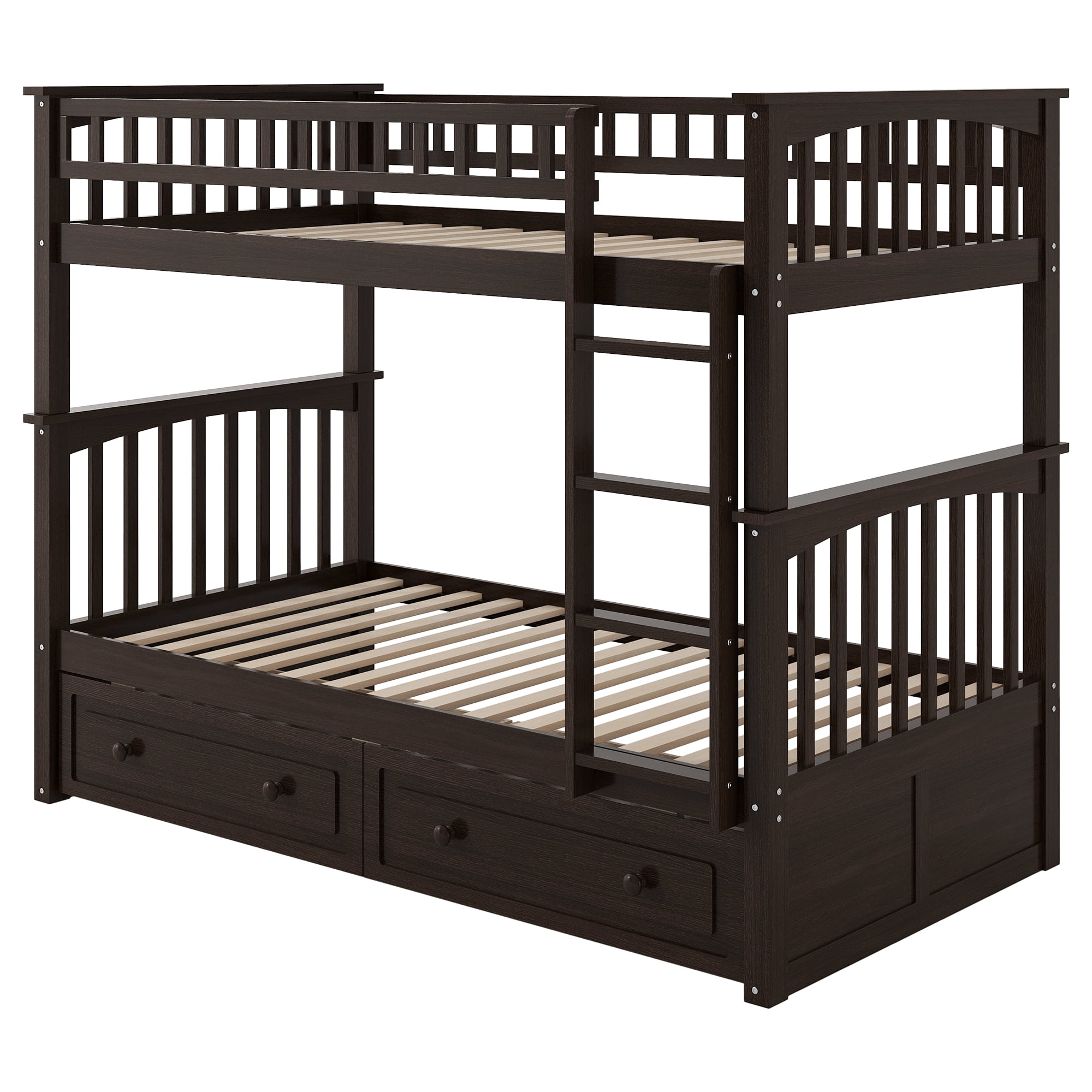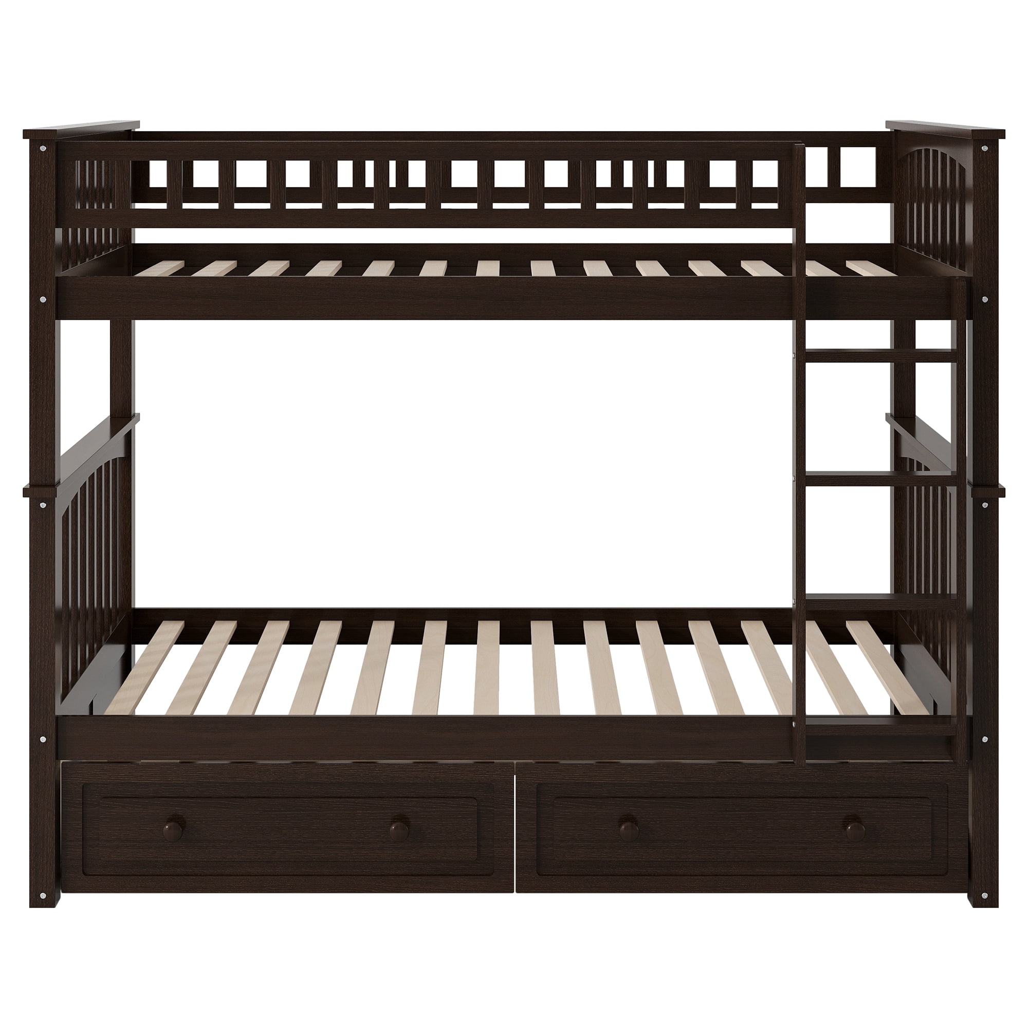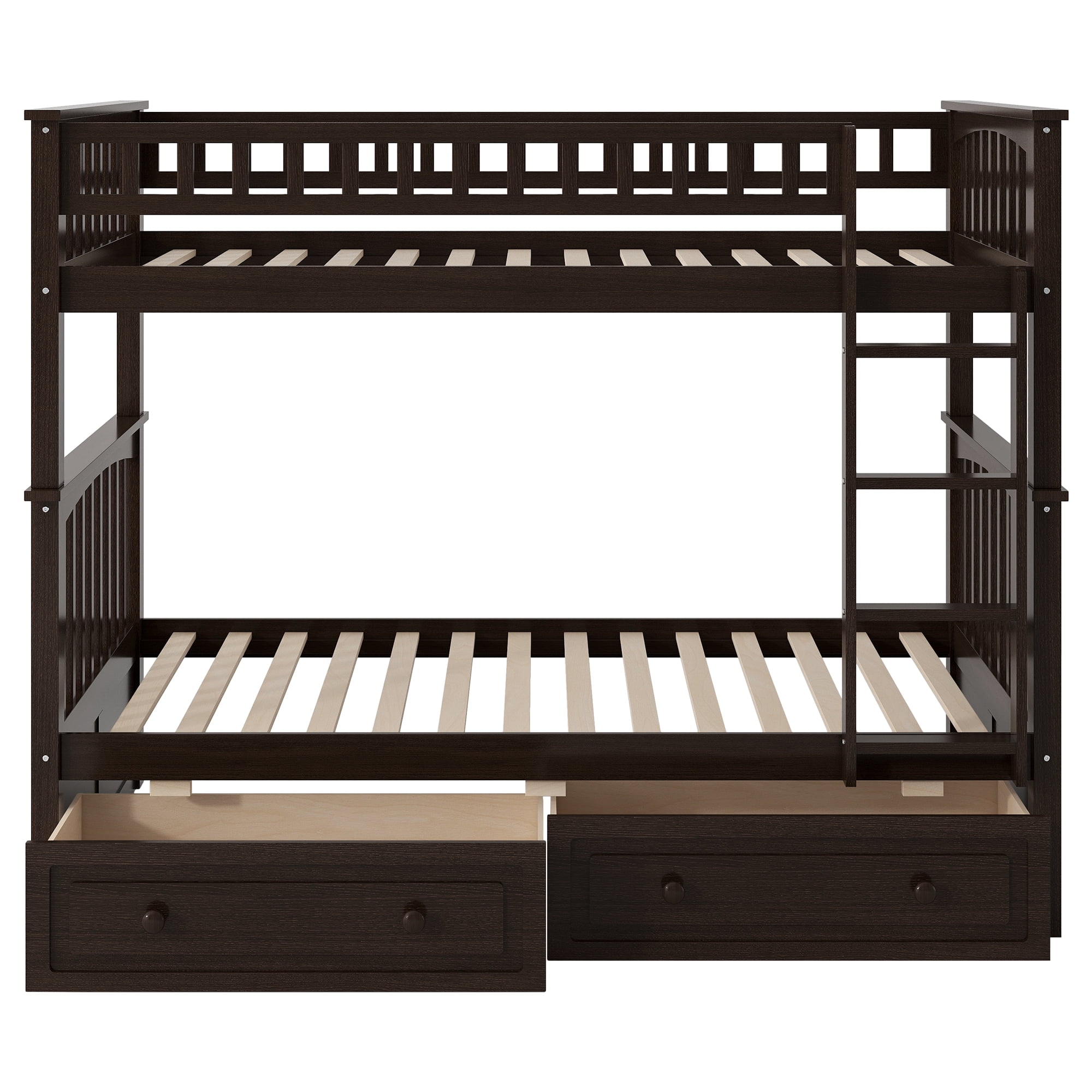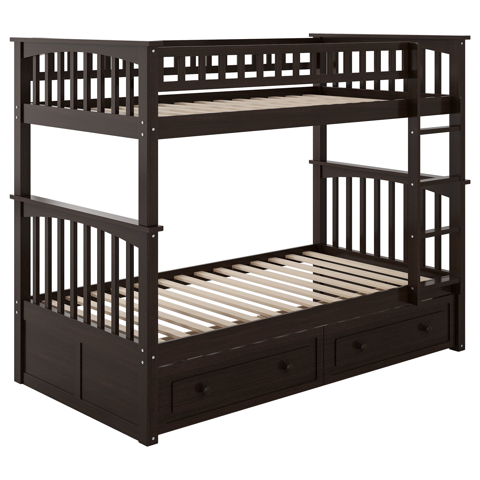 Euroco Pine Wood Convertible Twin over Twin Bunk Bed with Storage 2 Drawers, Espresso
