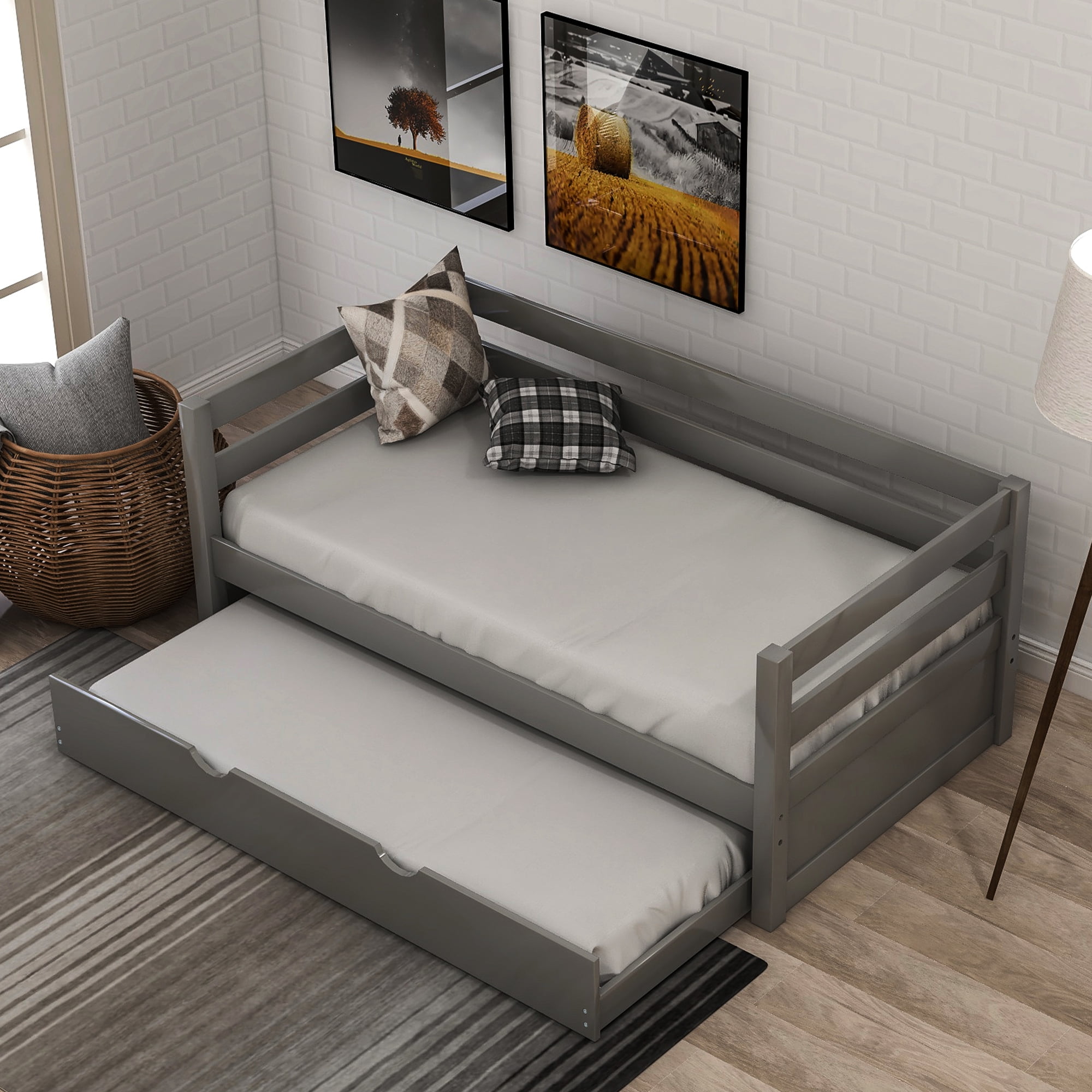 Euroco Solid Wood Daybed with Trundle, Twin, Grey