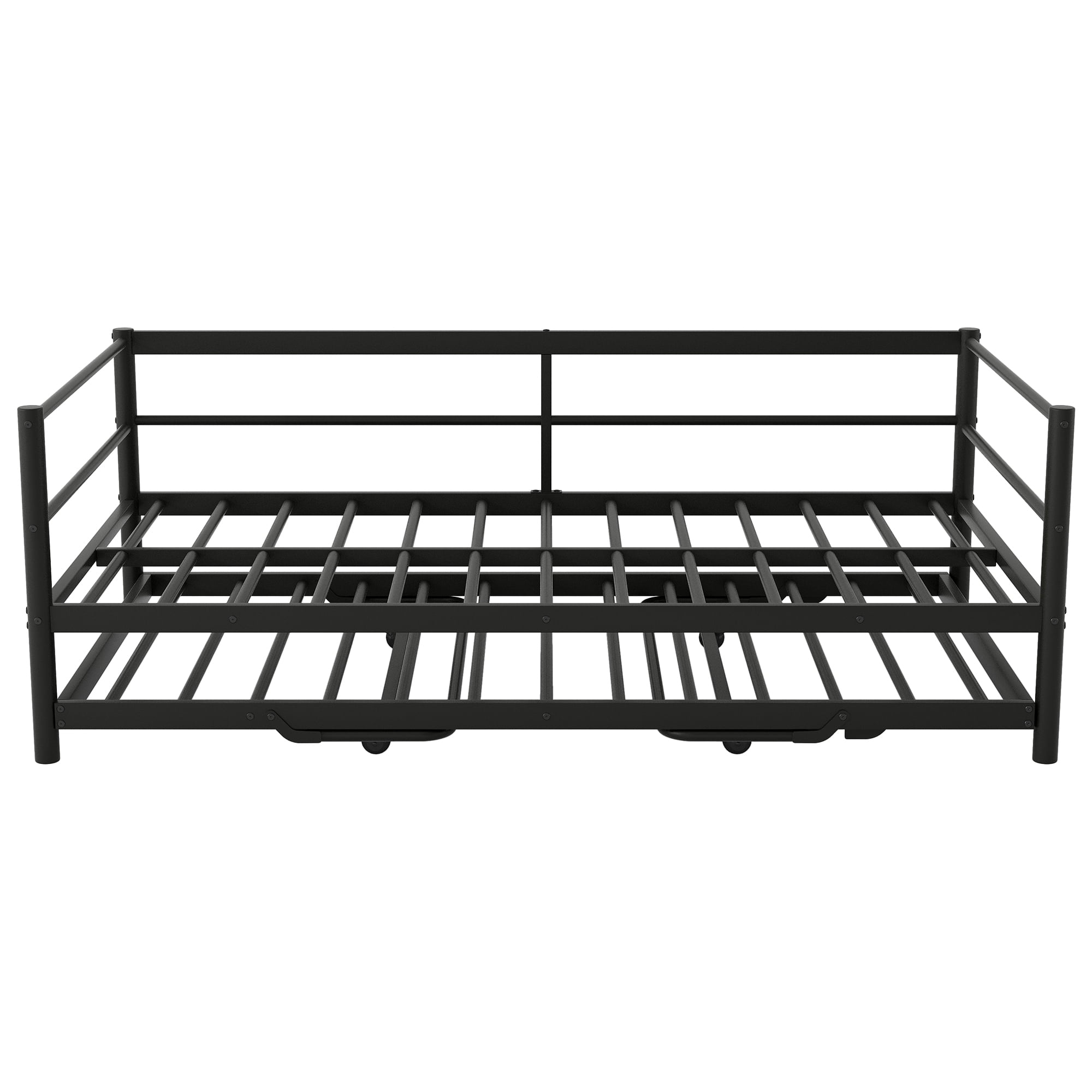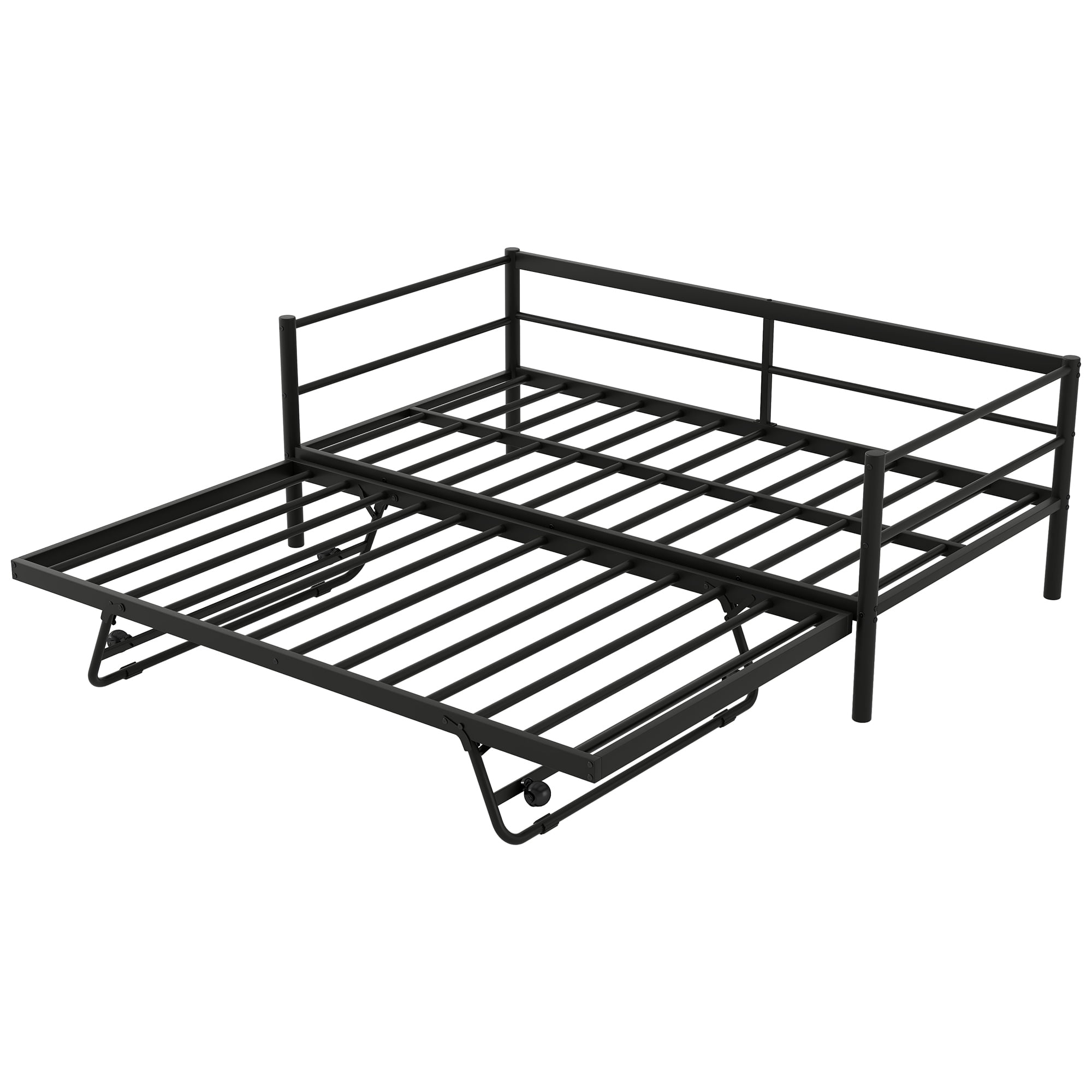 EUROCO Twin Metal Daybed with Pop-up Trundle and LED Light for Child, Solid Metal, No Box Spring Needed, Black