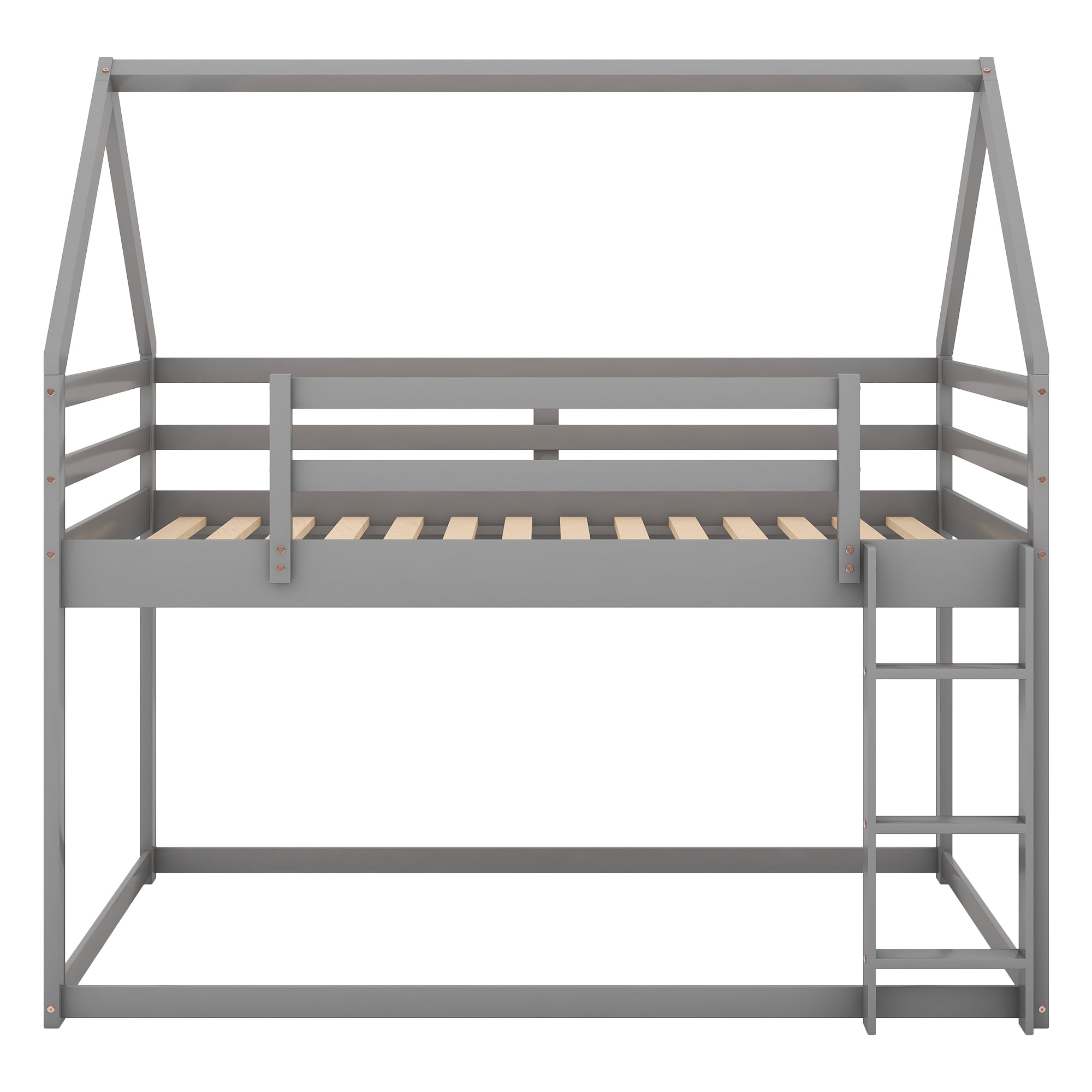 Euroco Twin over Twin House Bed, Low Bunk Bed for Kid Teens Room, Gray