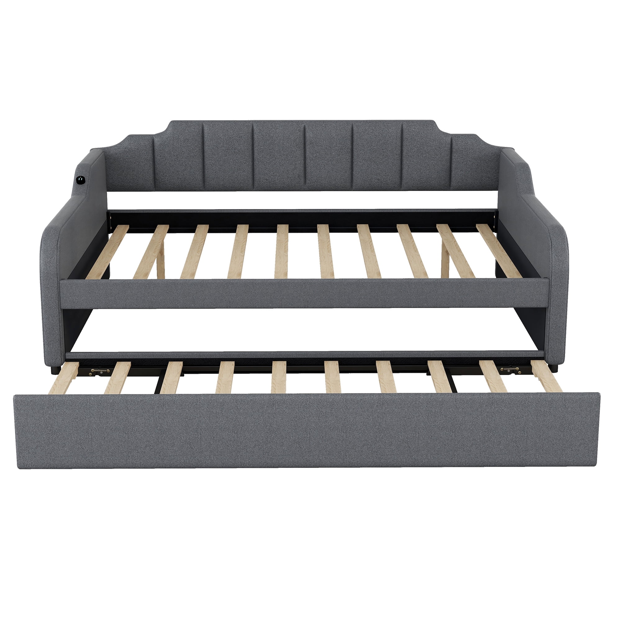 Euroco Full Size Daybed with Trundle, Upholstered with Padded Back for Kids, Gray