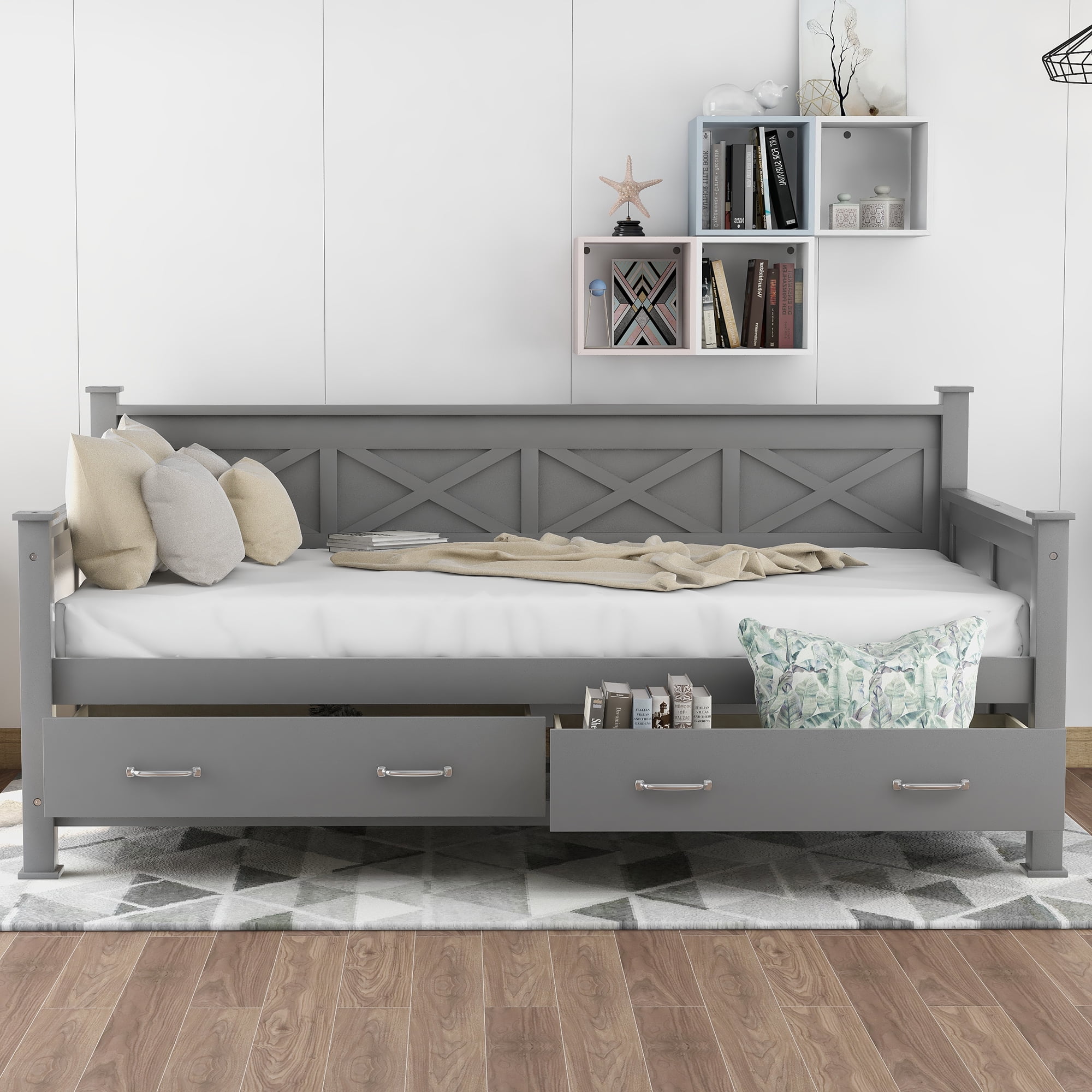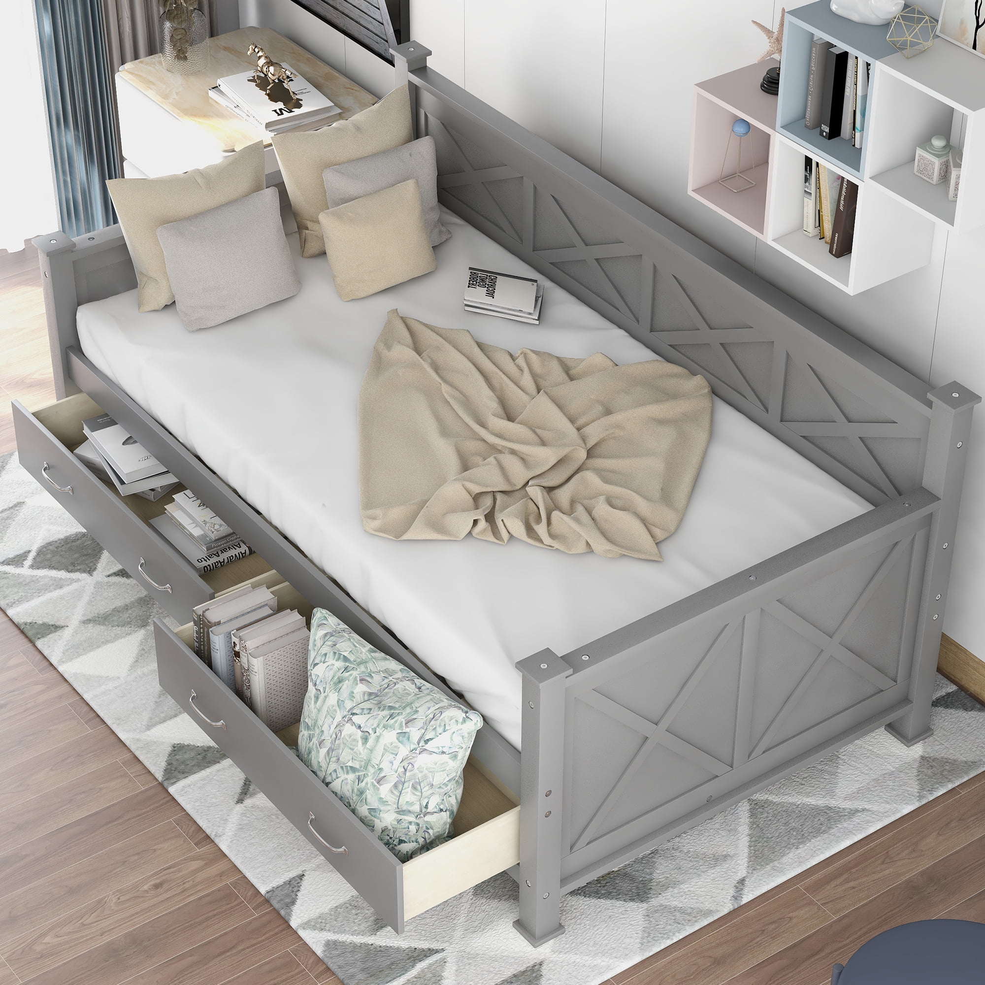 Euroco Twin Size Dayed with 2 Storage Drawers for Bedroom, Low Profile Platform Bed for Kids Teens, Gray