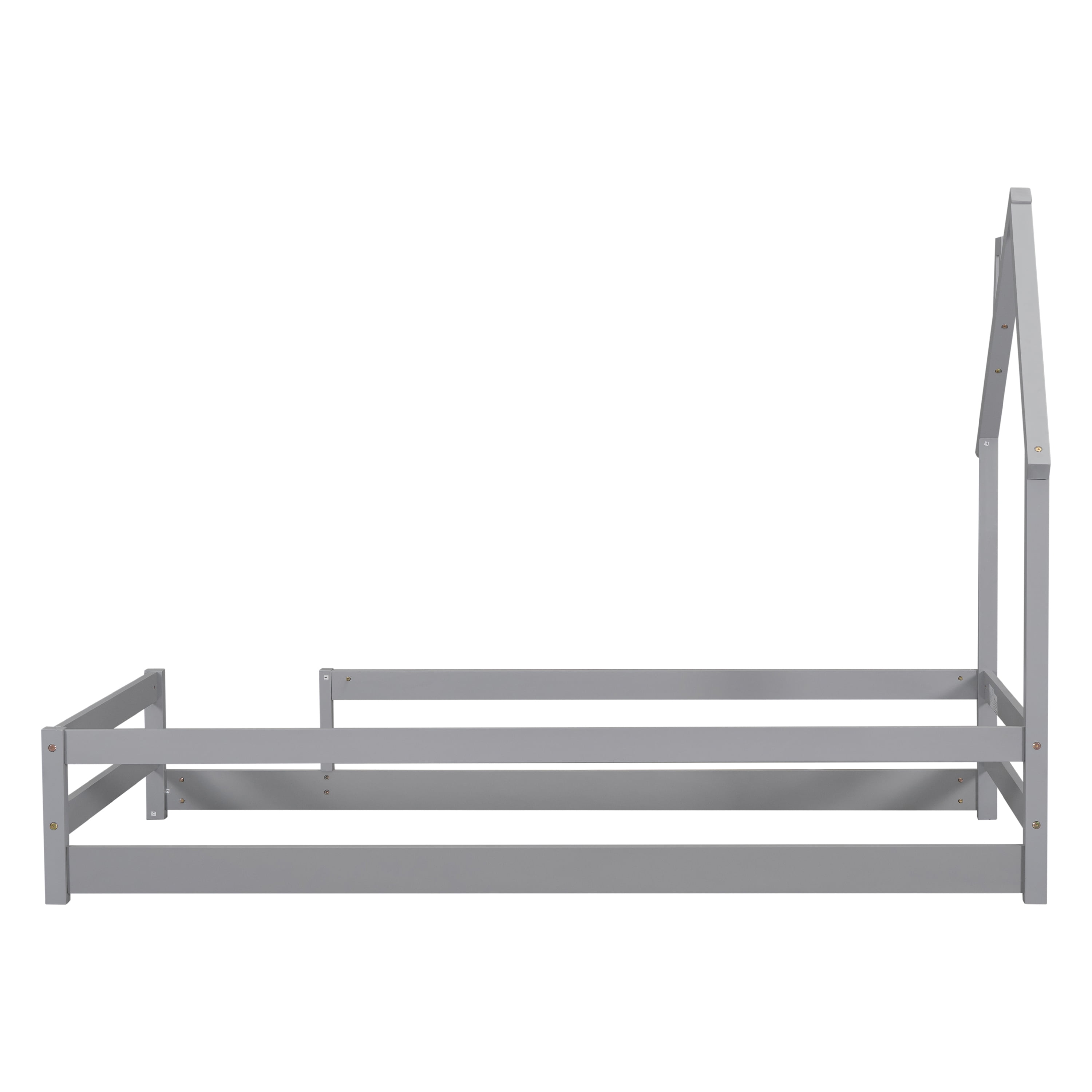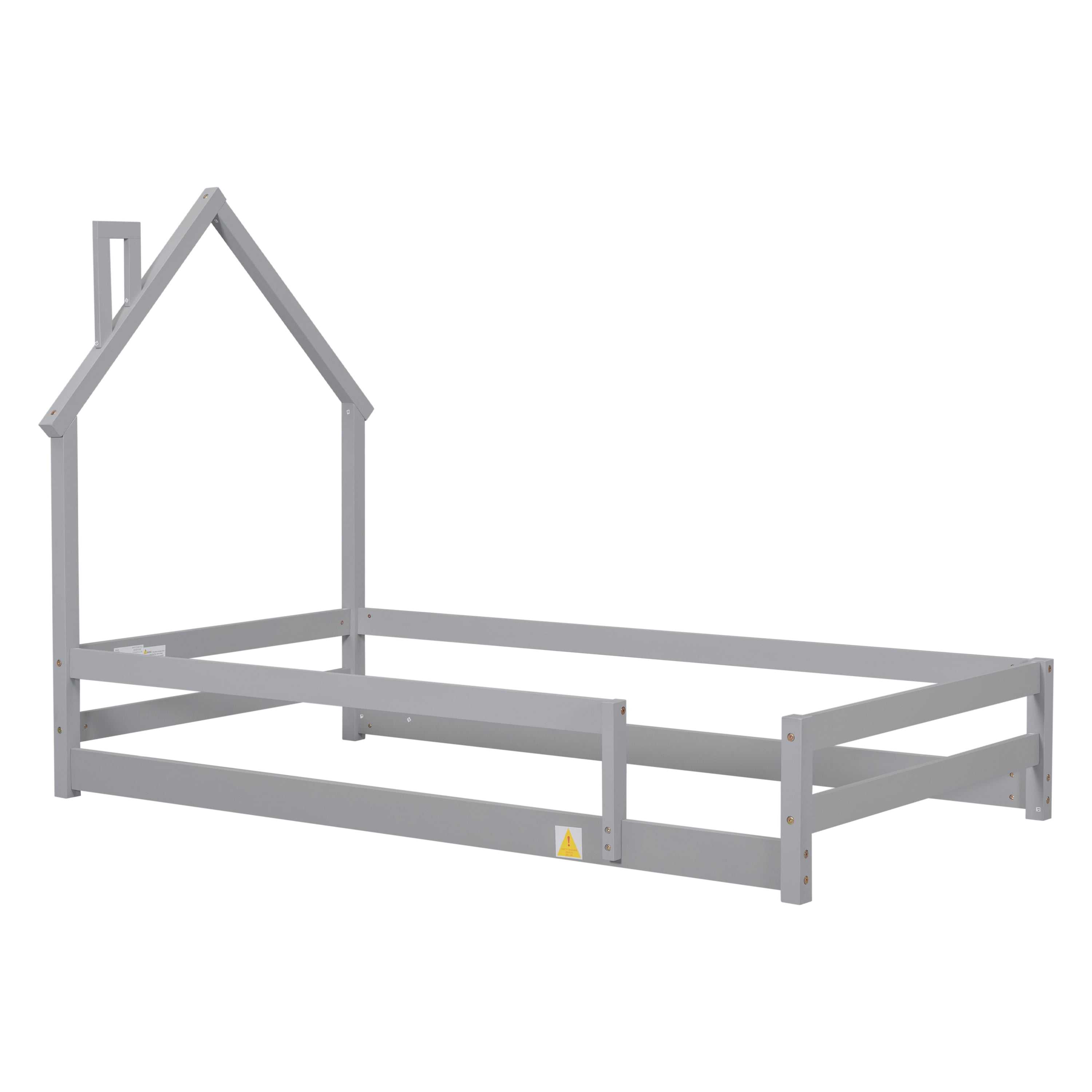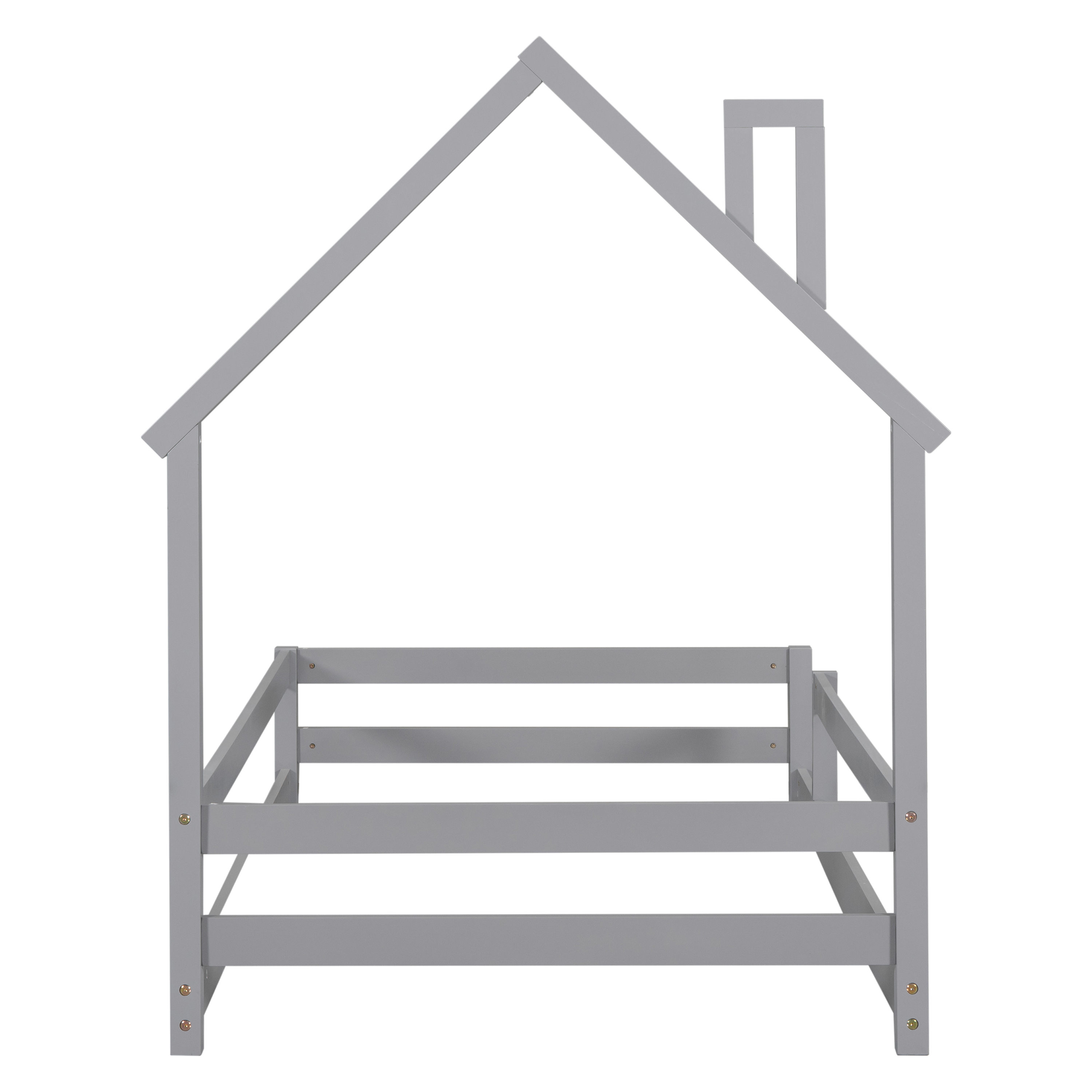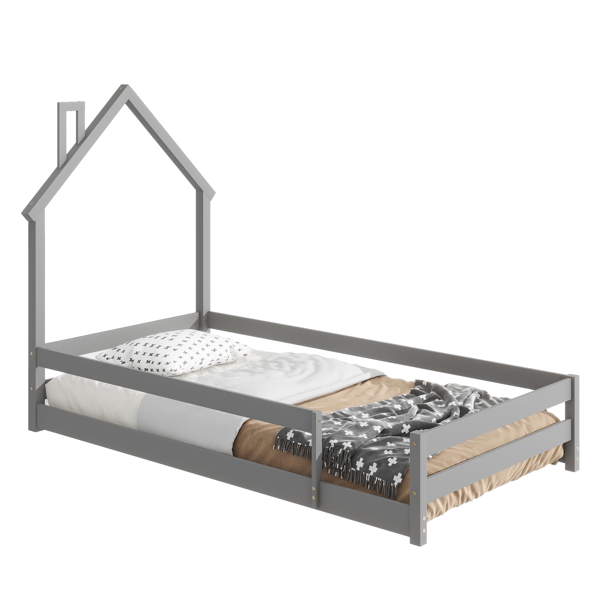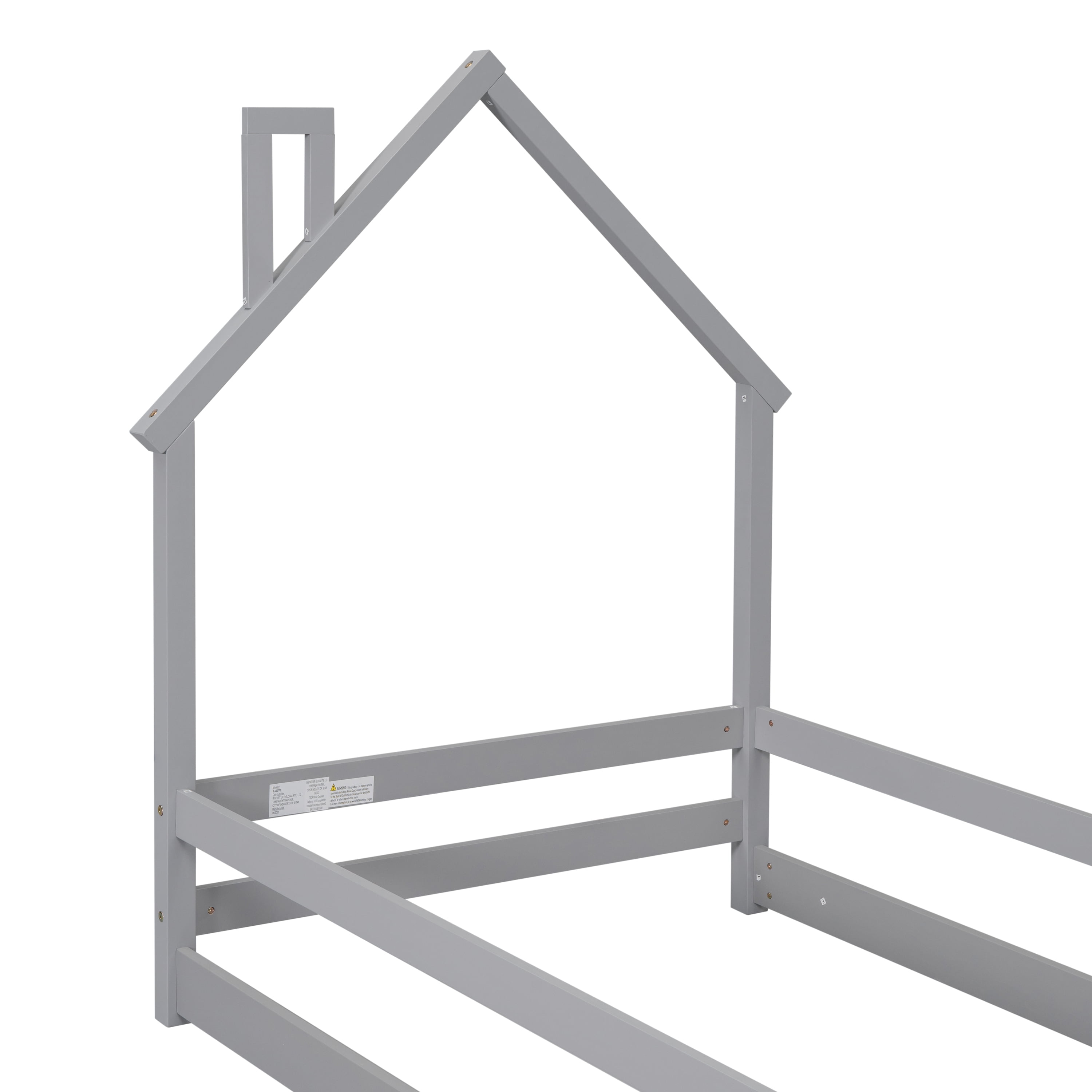 Euroco Twin Size House Bed, Low Profile Floor Bed with Chimney, Gray
