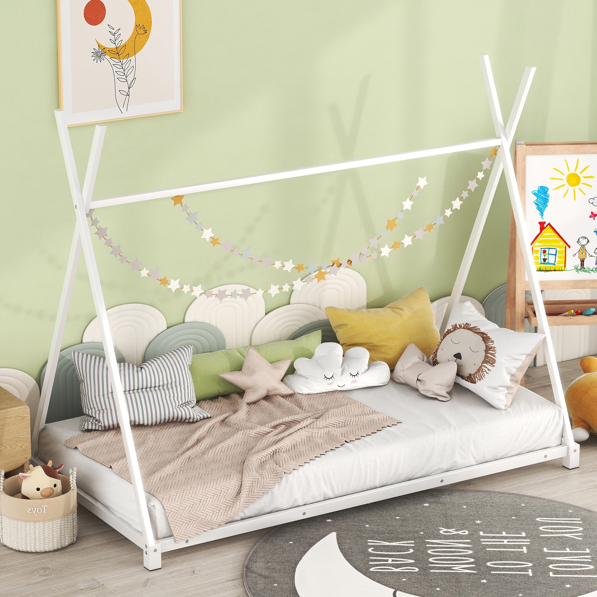 Get kids’ hearts racing with this practical, functional bed. The bed is made of high-quality metal materials, which is absolutely stable and safe, so that nothing will happen to you even when you are playing or dreaming at night. The edges and surface of the bed are rounded to prevent injuries for kids.