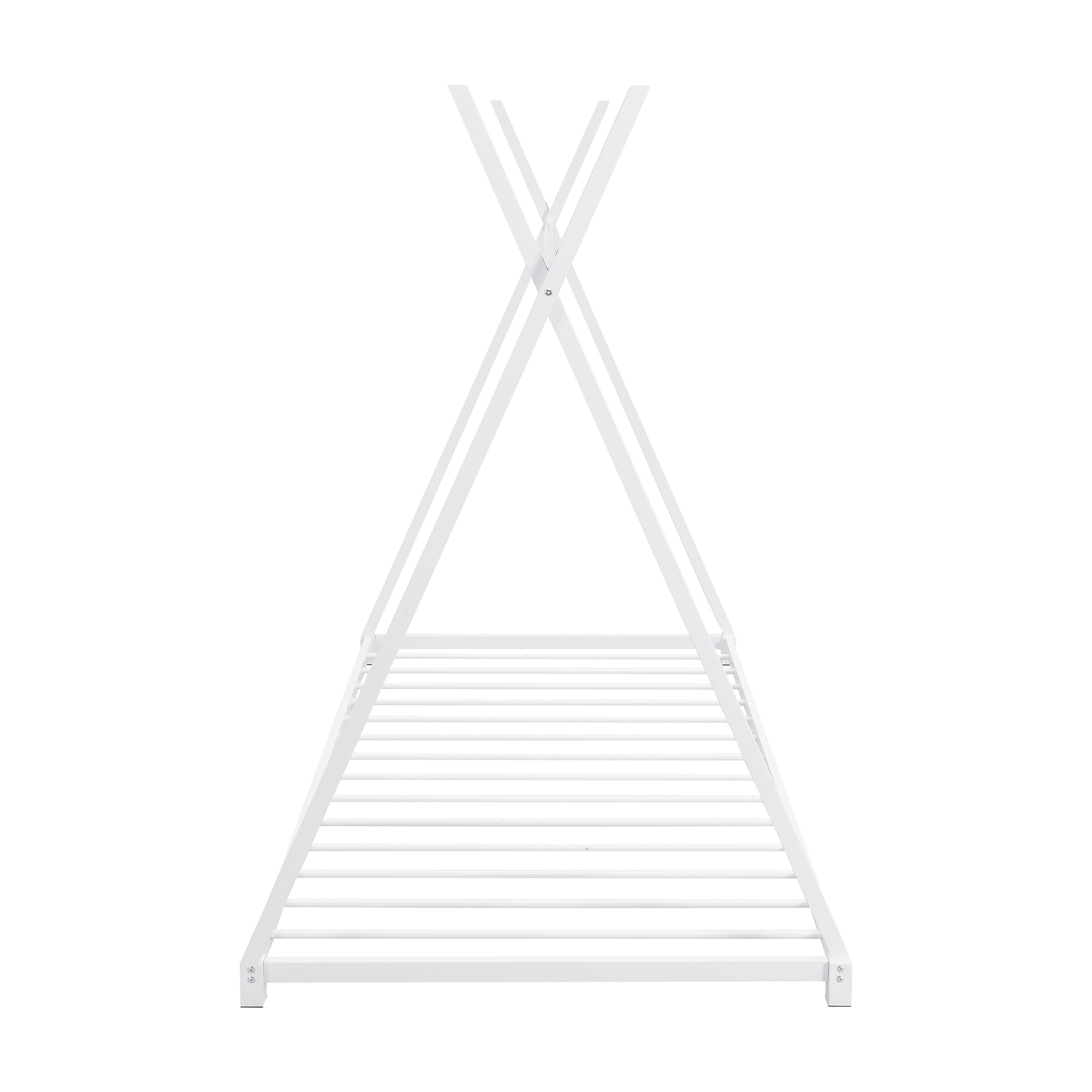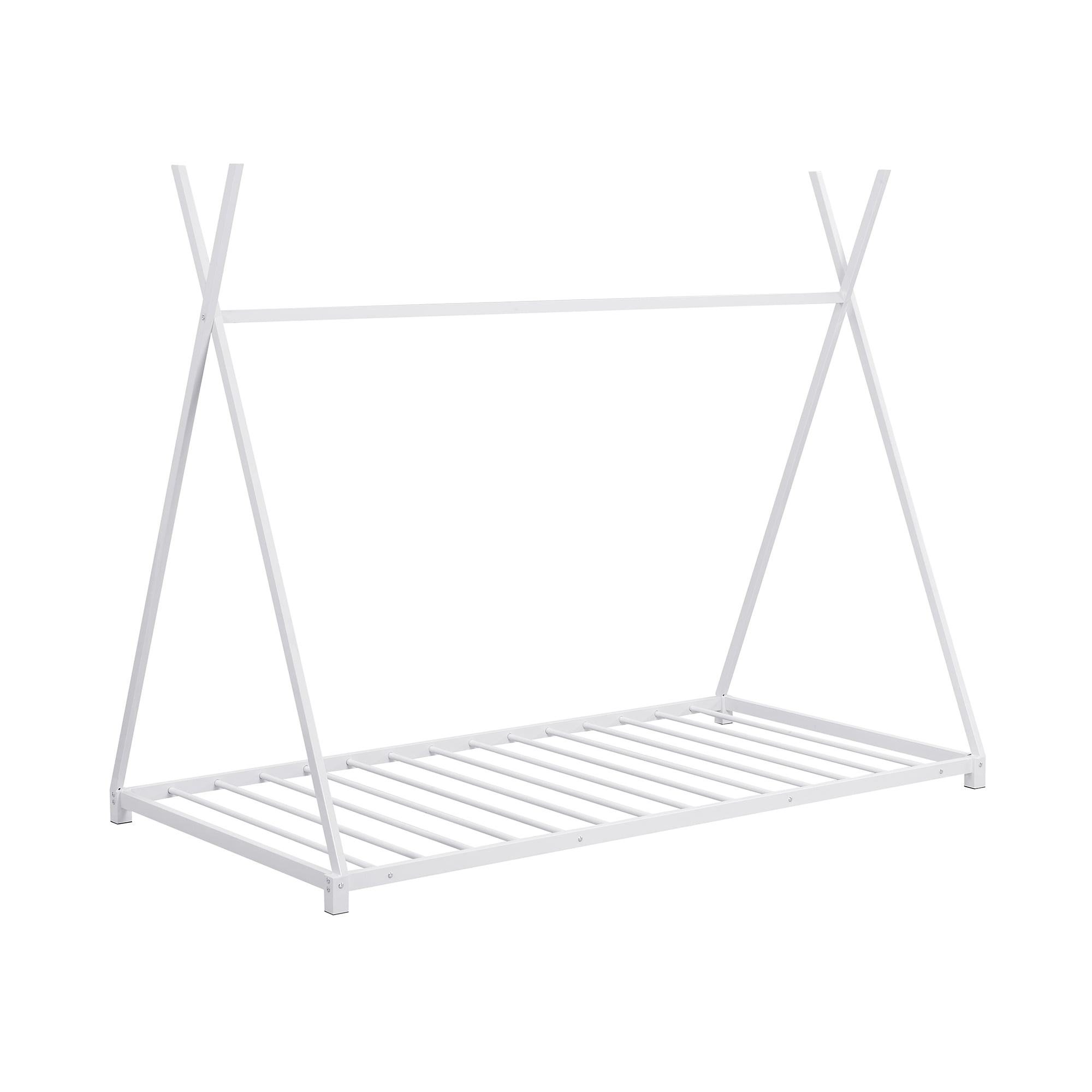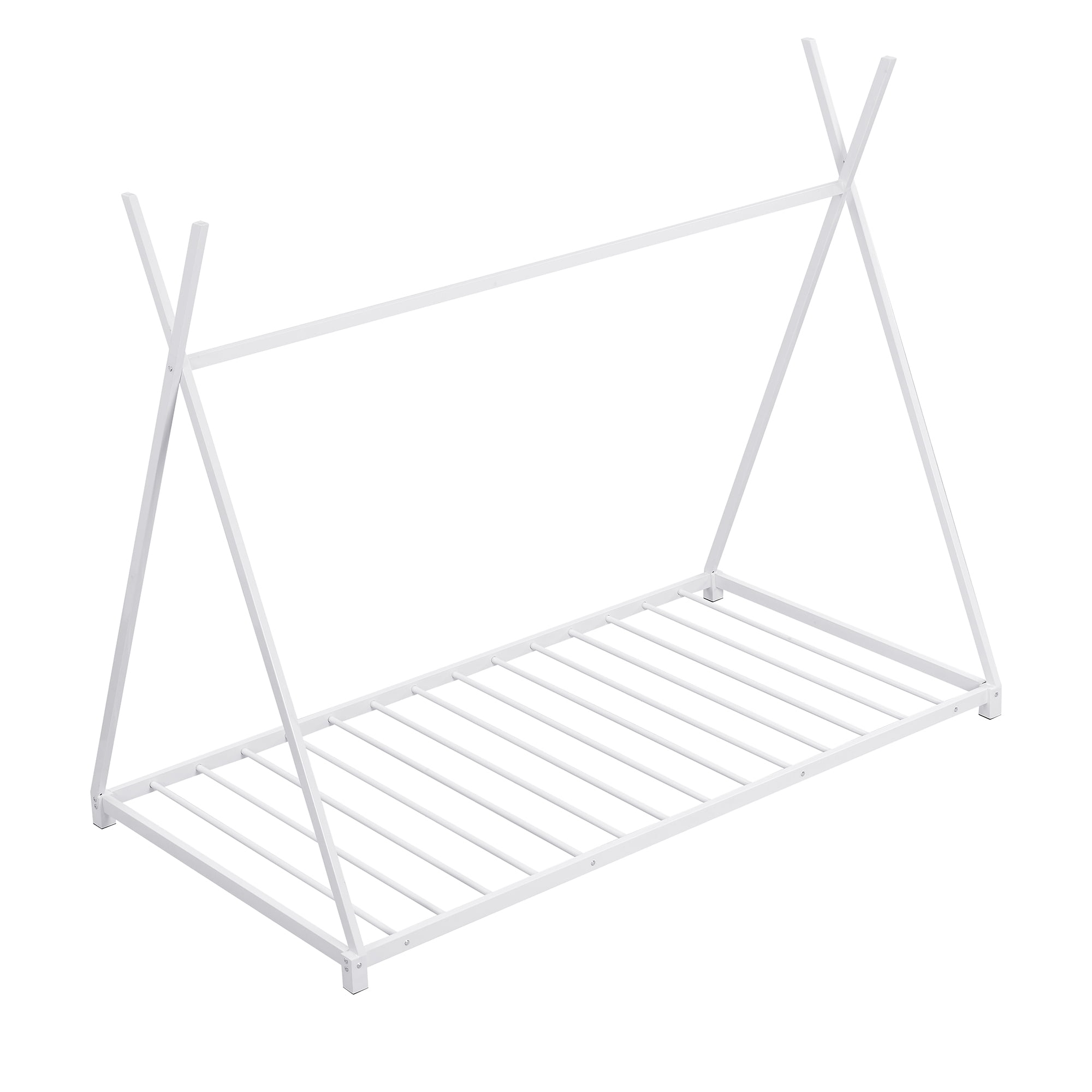 [X Shaped Design] X shaped bed design will suit for both kids and adults. You can decorate curtains and light to have your own space. [Metal Low Profile] Low profile bed frame will be easy to move. Kids and toddles can also enter the bed easily and safely. [Sturdy Construction] Constructed of solid metal, this platform bed features a sturdy high quality solid metal construction for durability and high load capacity, ensuring longevitools are provided to get your bed assembled in no time. Specification: Size: Twin Overall Product Dimension: 78”L x 41.3”W x 63”H Bed Inner Size: 75.6” x 39” Overall Product Weight: 30.5lb Bed Weight Capacity: 250lb Mattress Included: No Total Height: 63″ Assembly Required: Yes Recommend Bed Mattress Thickness: 6”