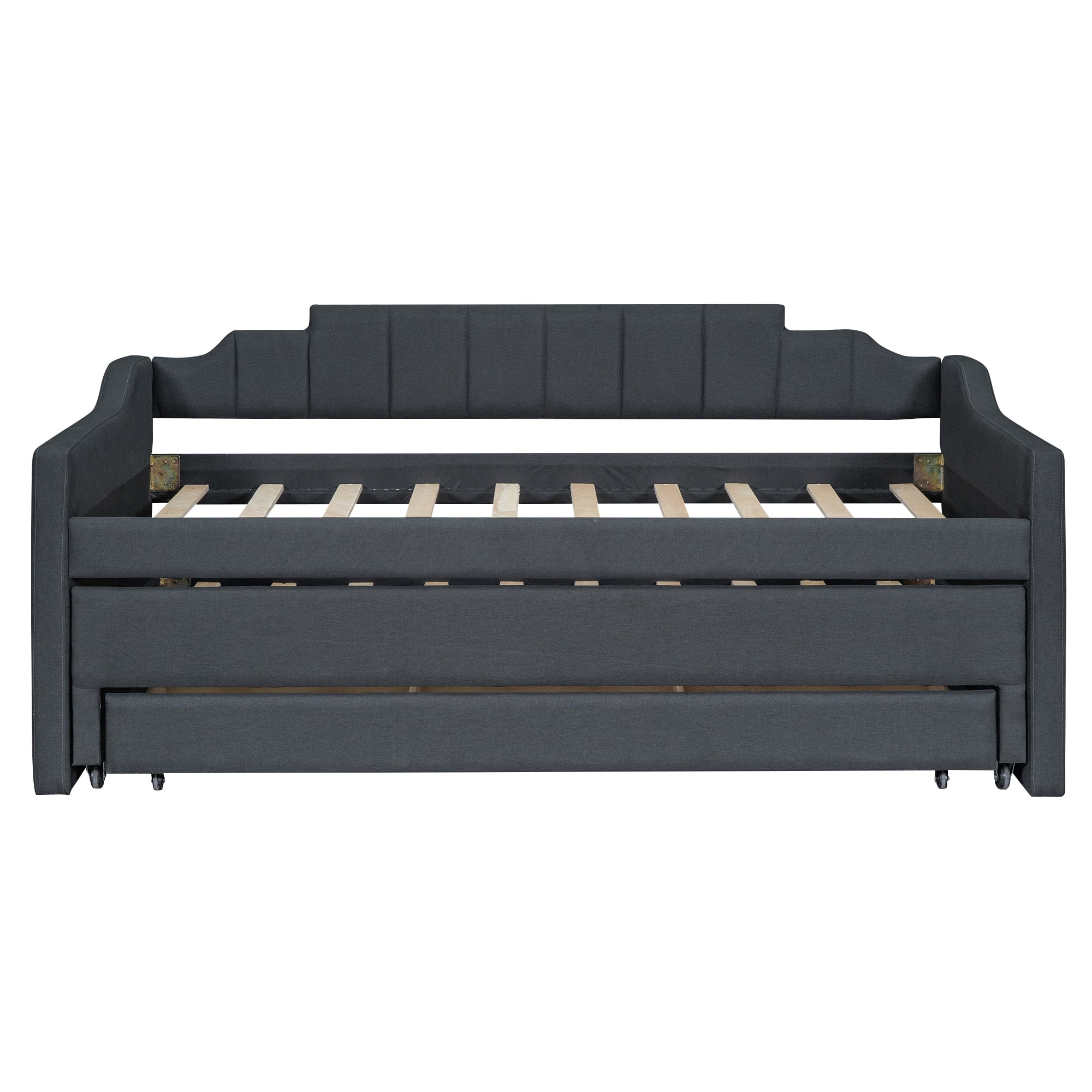 EUROCO Twin Size Upholstery Daybed, Storage Sofa Bed with Drawers and Moveable Twin Trundle Bed for Kids and Adults, No Box Spring Needed, Dark Gray