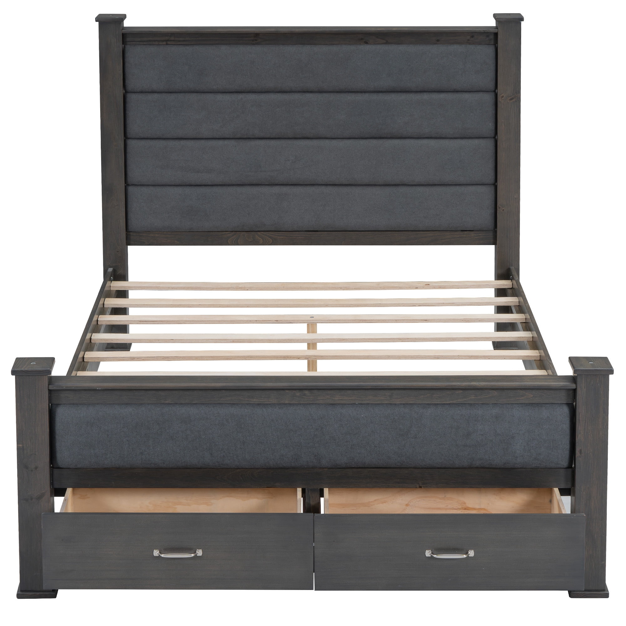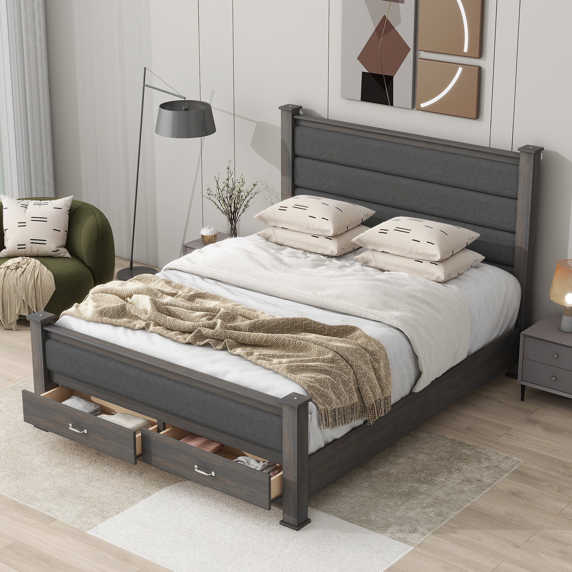 EUROCO Wood Queen Size Platform Bed with Drawers for Bedroom, Gray
