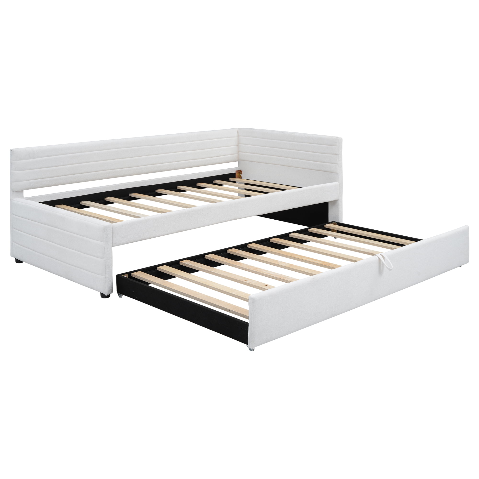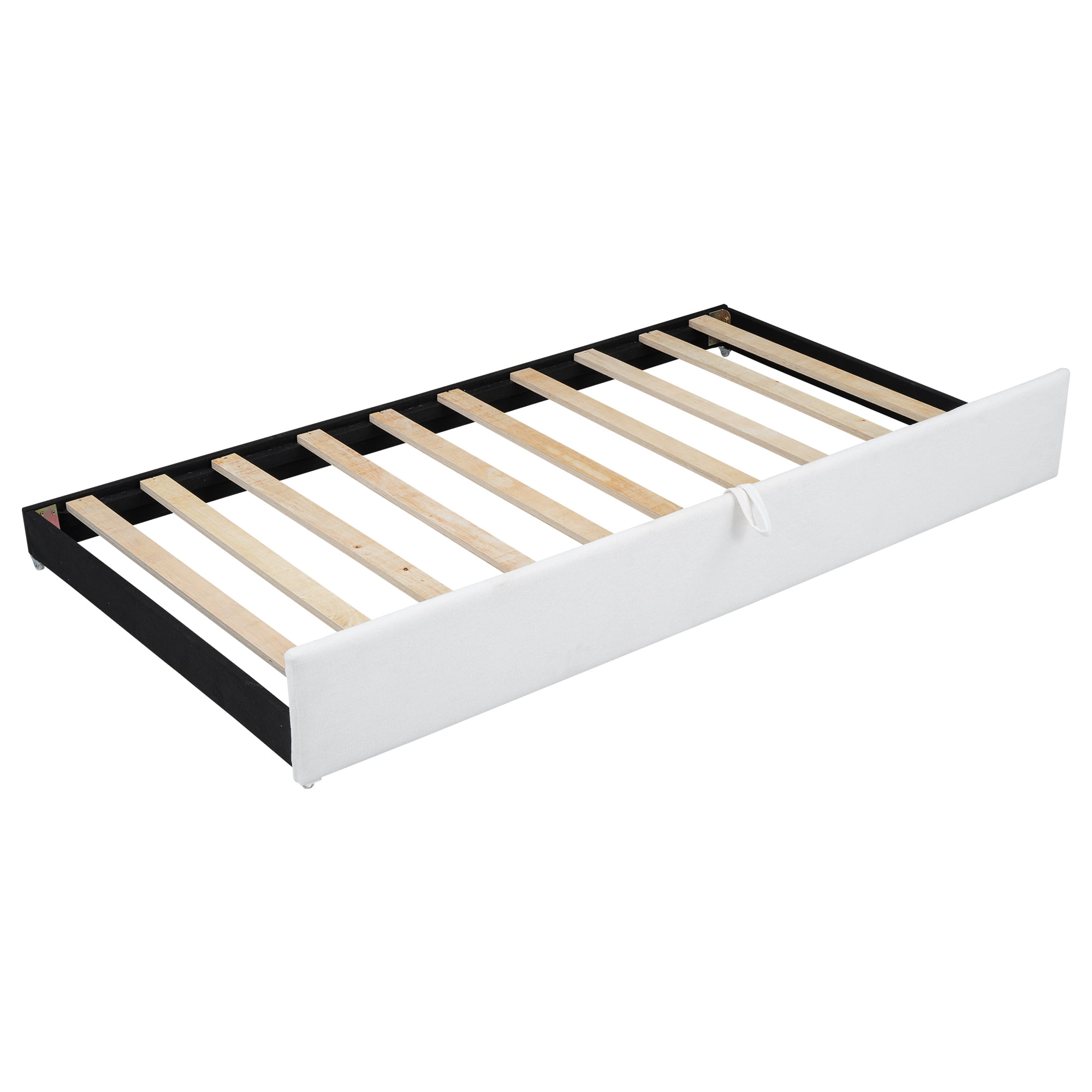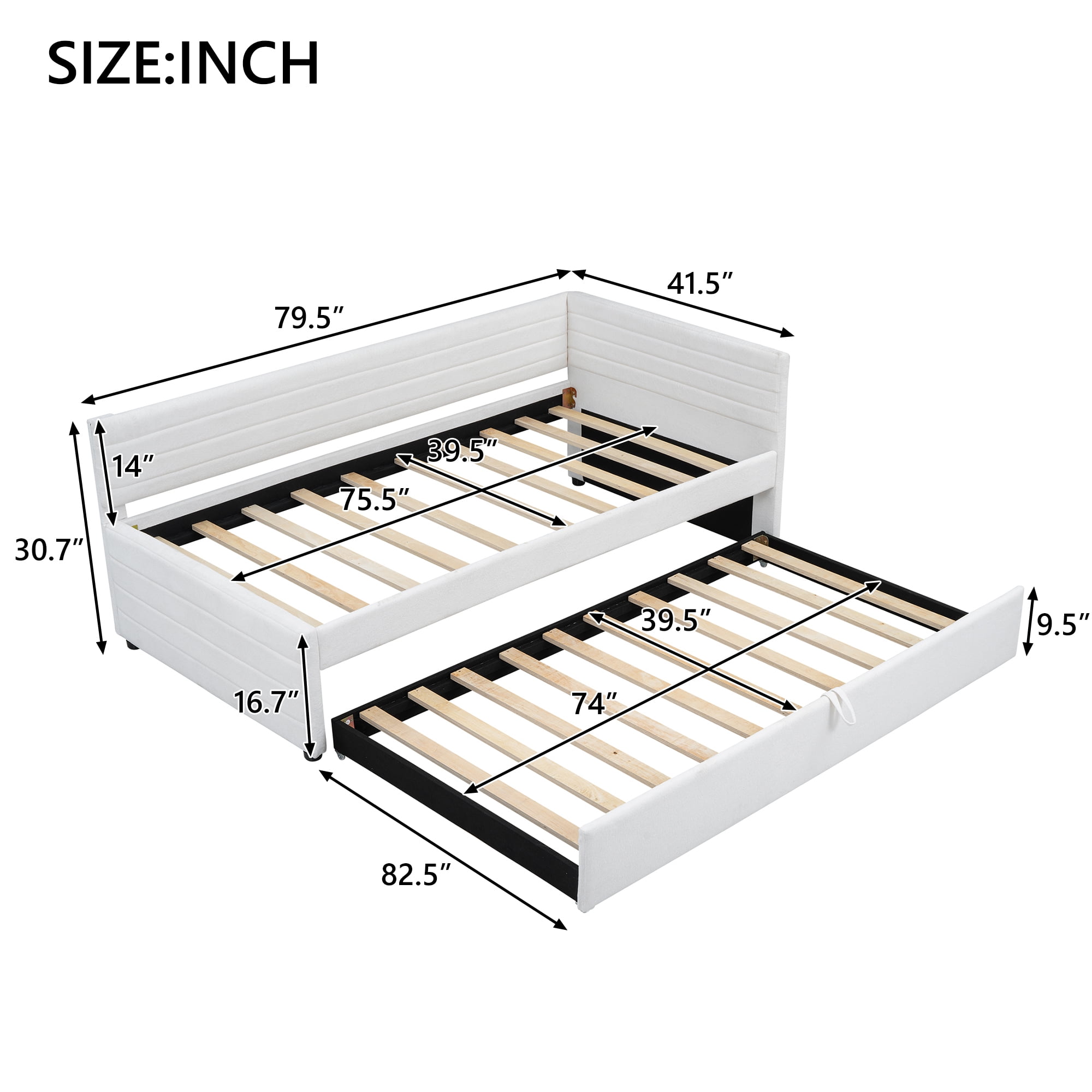 Euroco Upholstered Twin Size Daybed with Trundle for Living Room, White