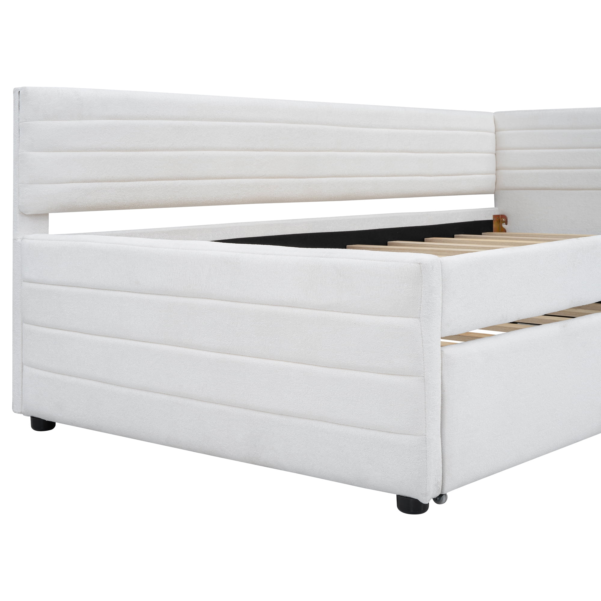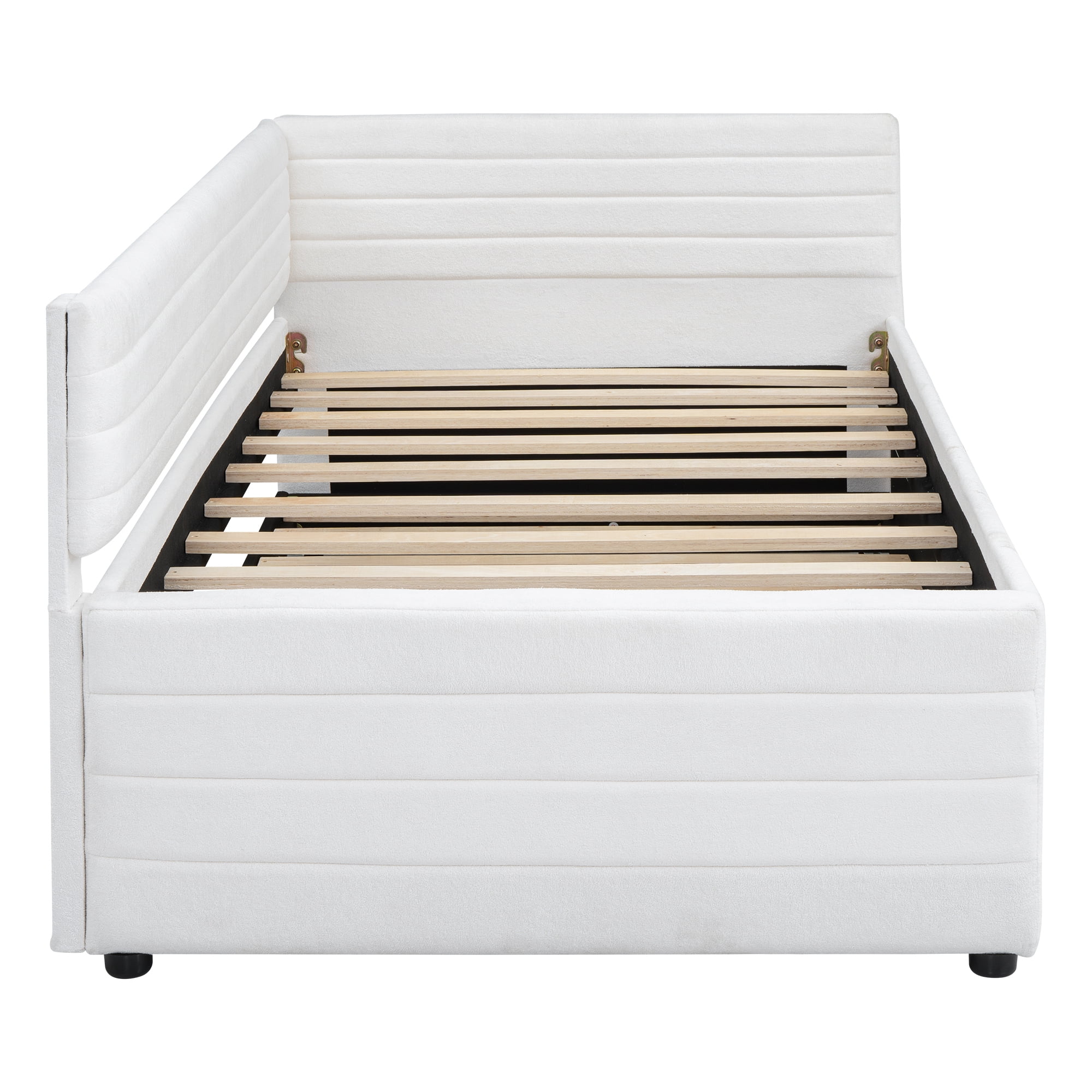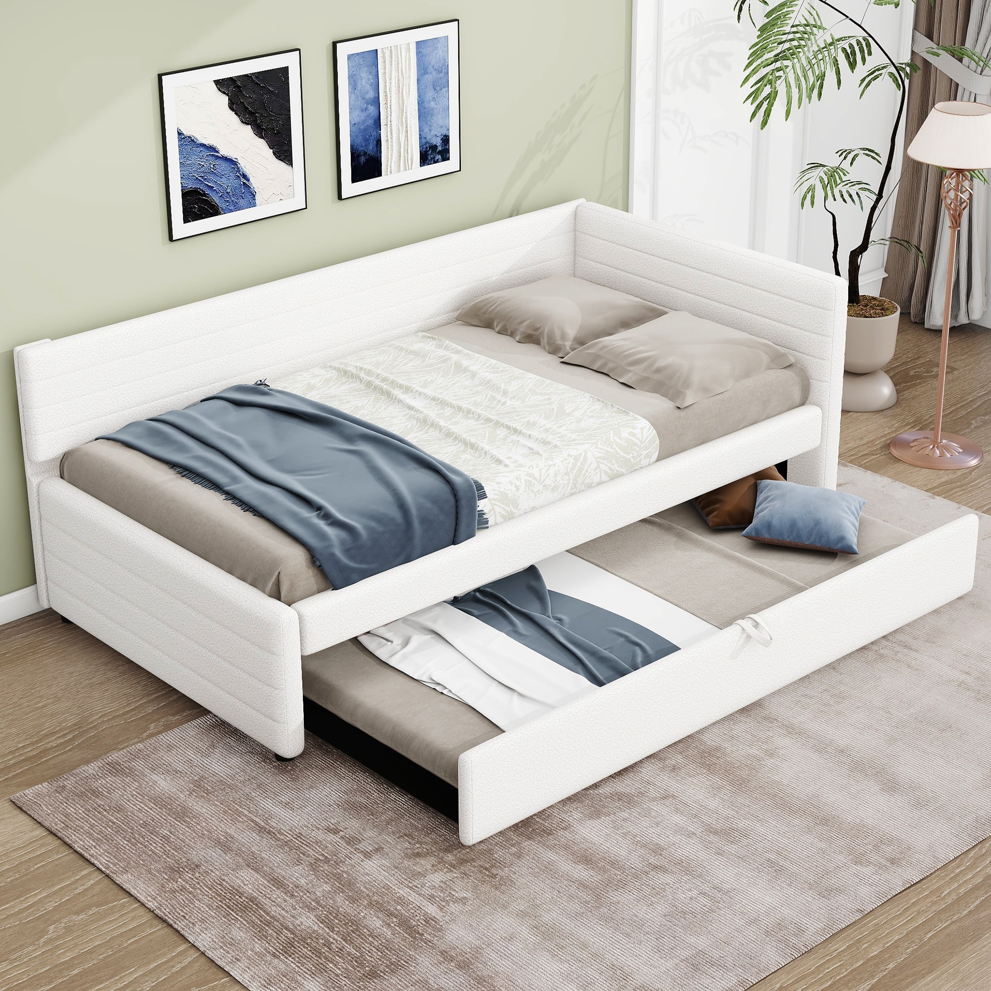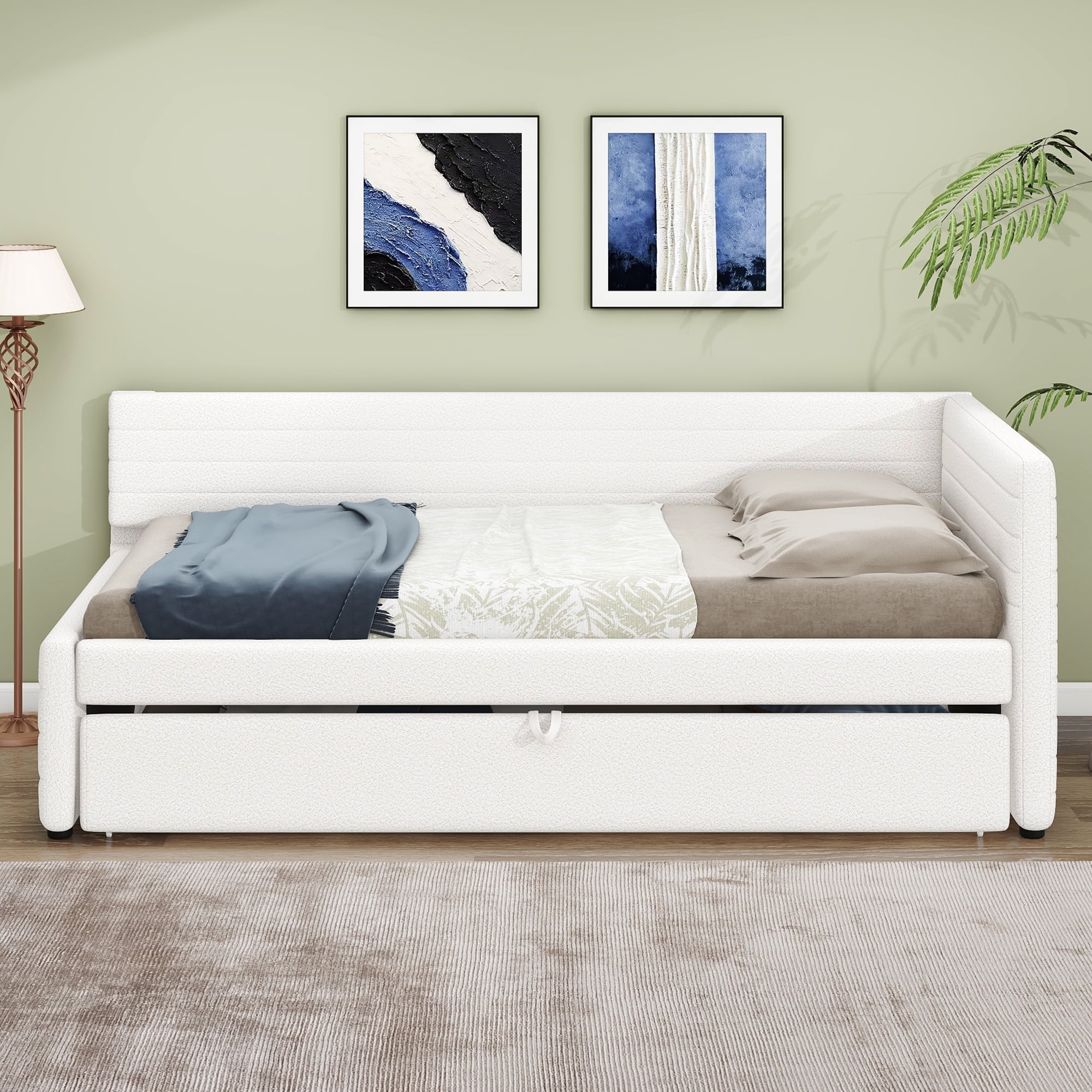Euroco Upholstered Twin Size Daybed with Trundle for Living Room, White
