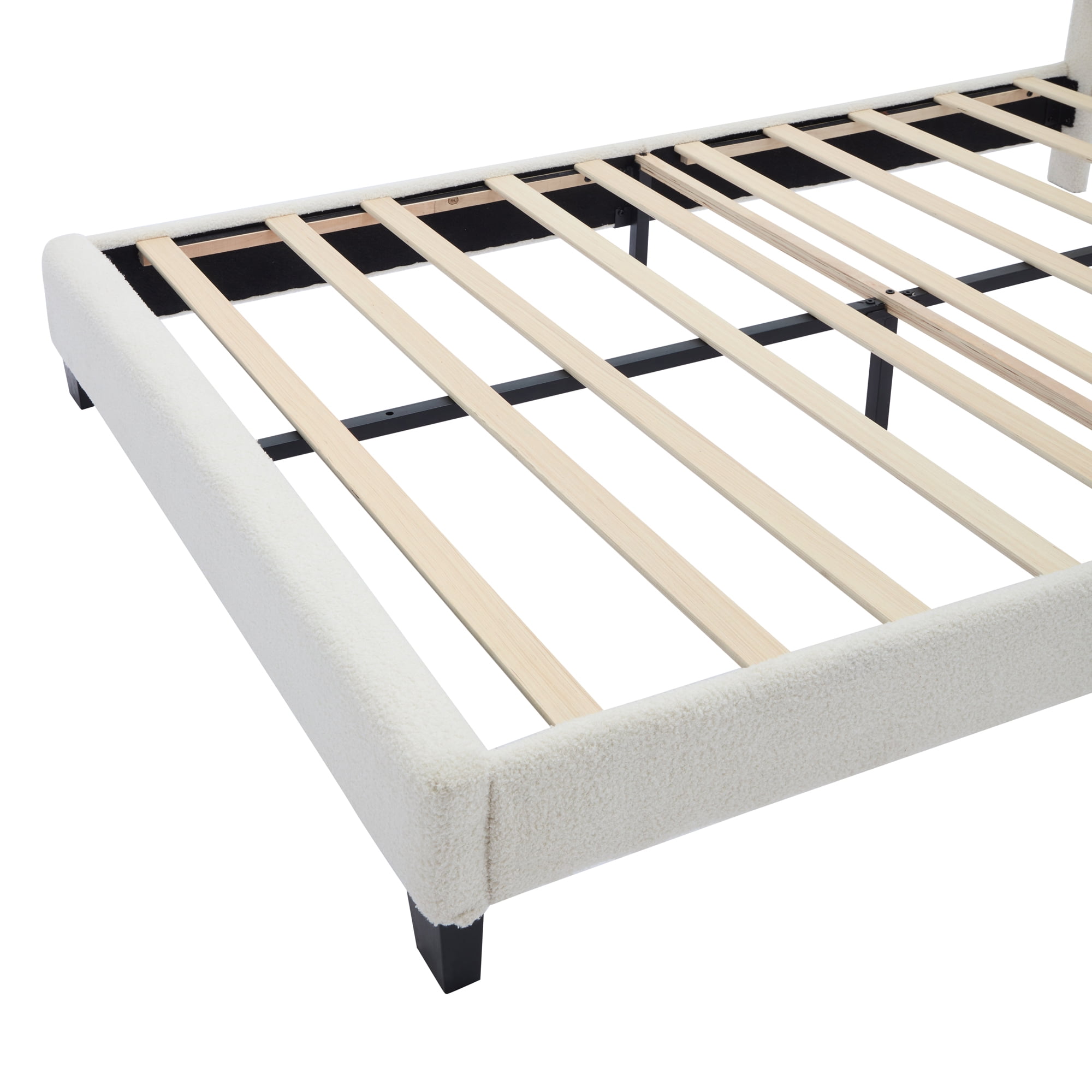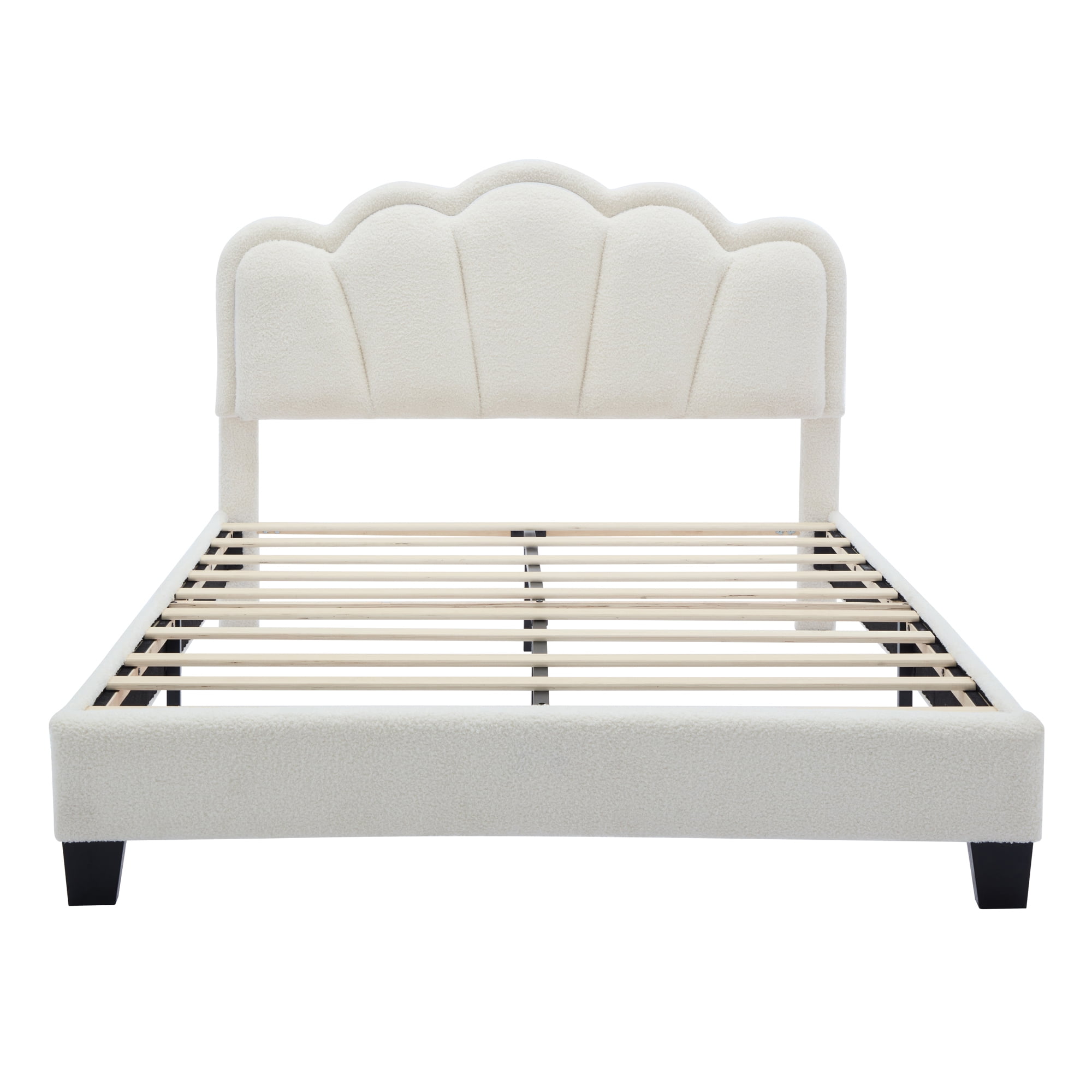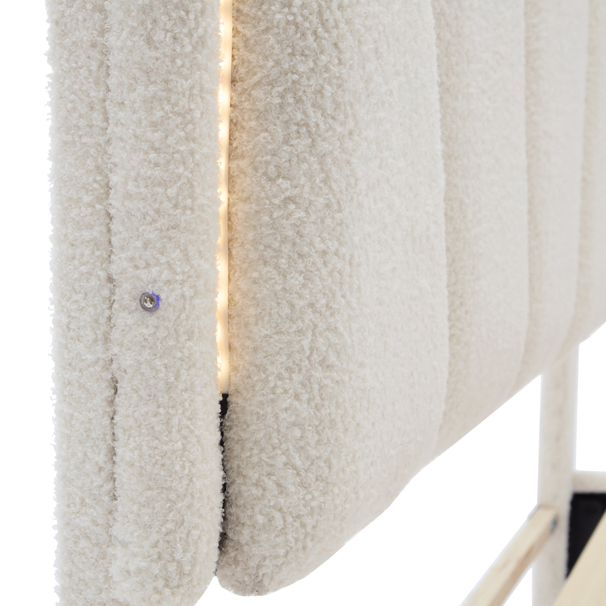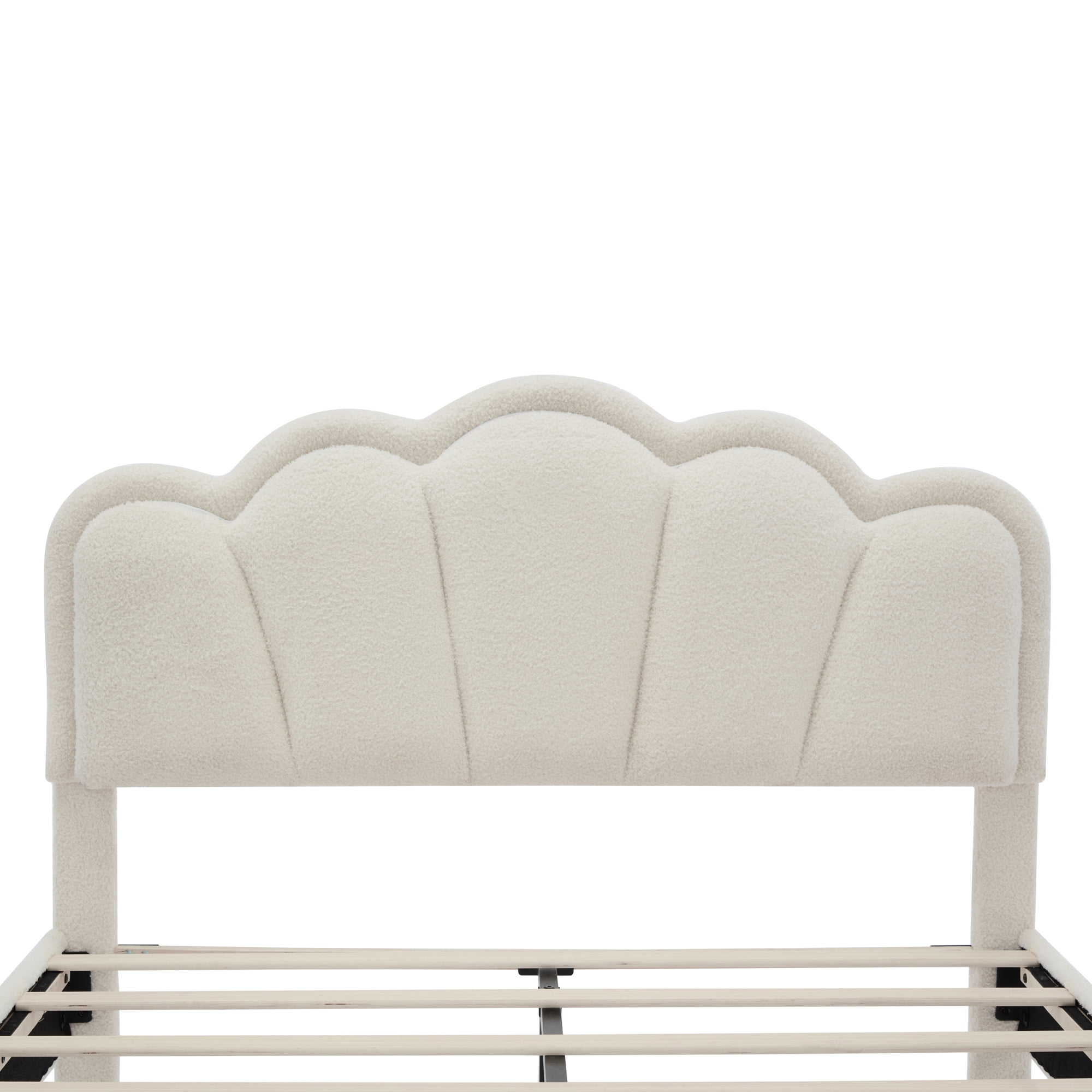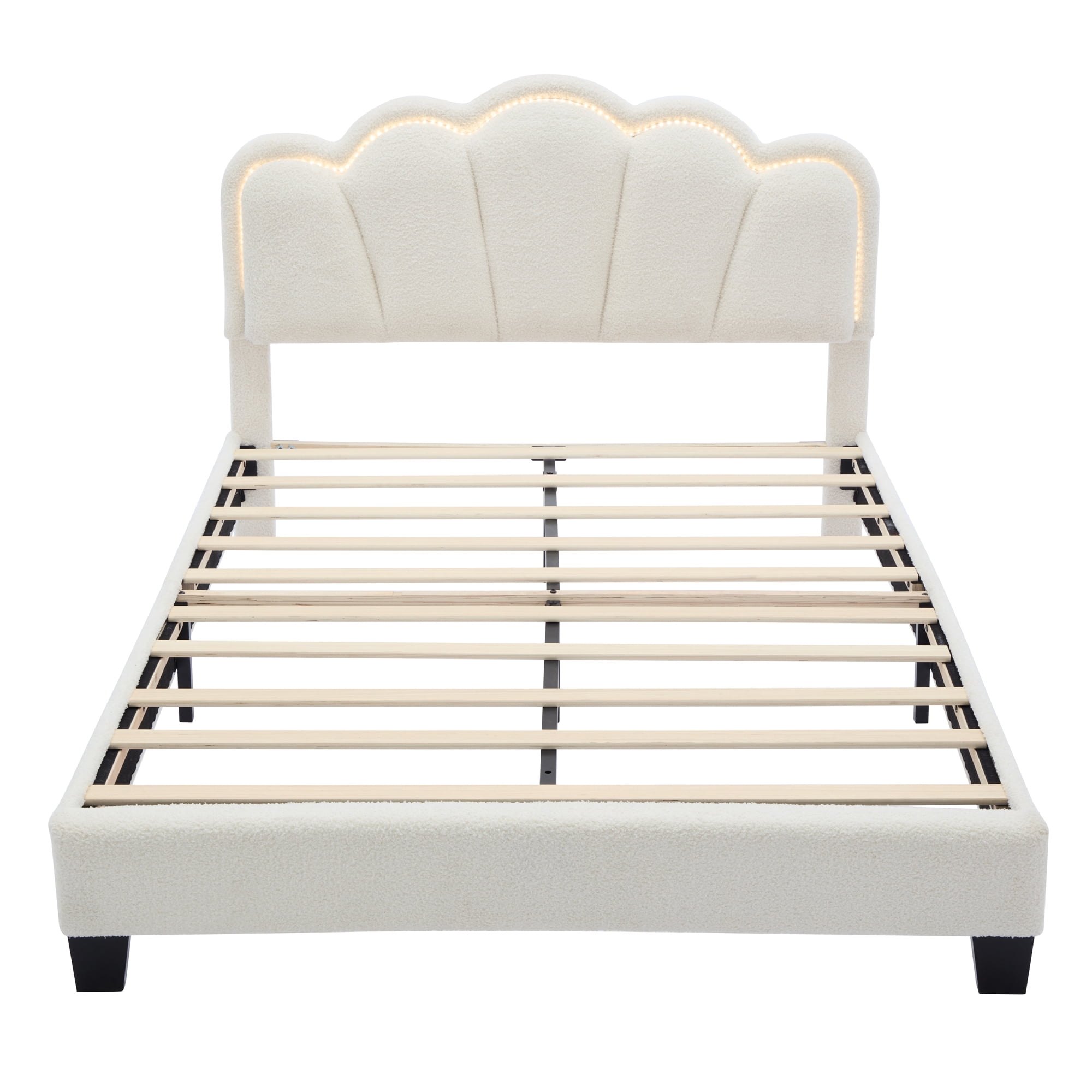Euroco Upholstery Full Size Platform Bed with Flower-Shaped Headboard and LED Light for Kids Bedroom, Beige