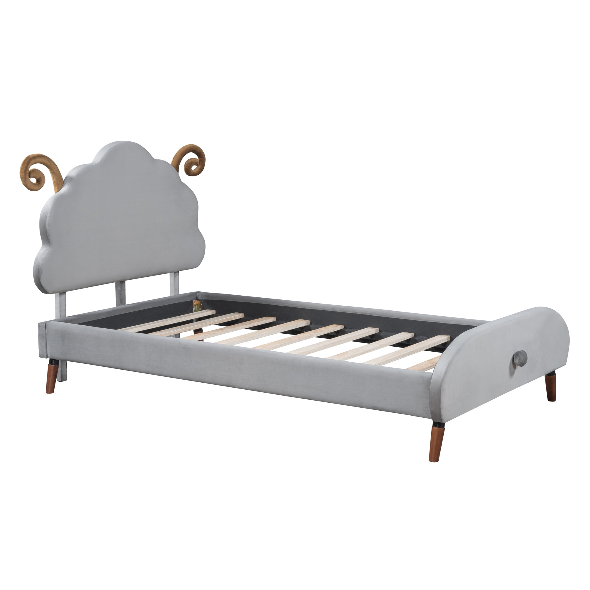 Euroco Upholstery Twin Size Platform Bed with Cartoon Sheep Shaped Headboard for Kids, Gray
