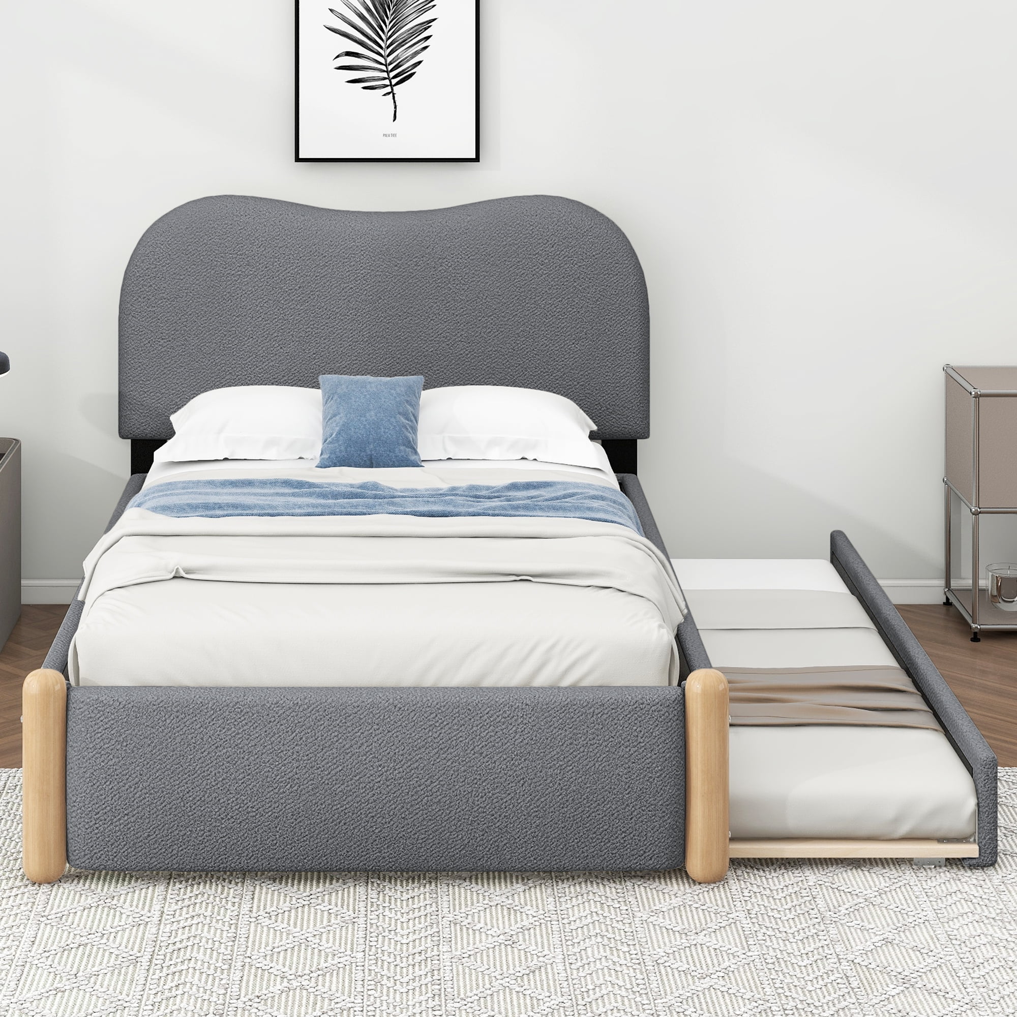 EUROCO Upholstery Twin Size Platform Bed with Twin Size Trundle, Wood Support Legs for Kids, Gray