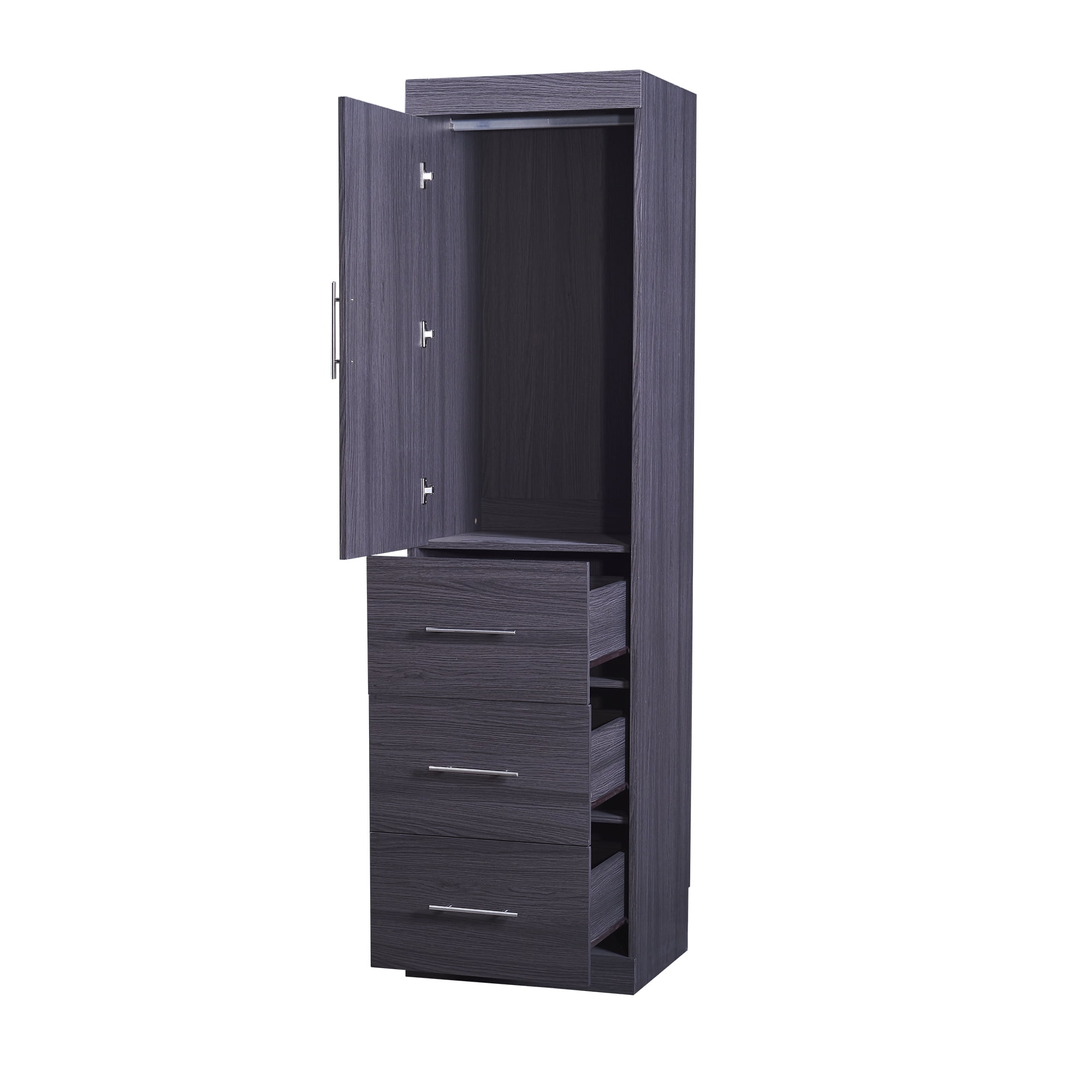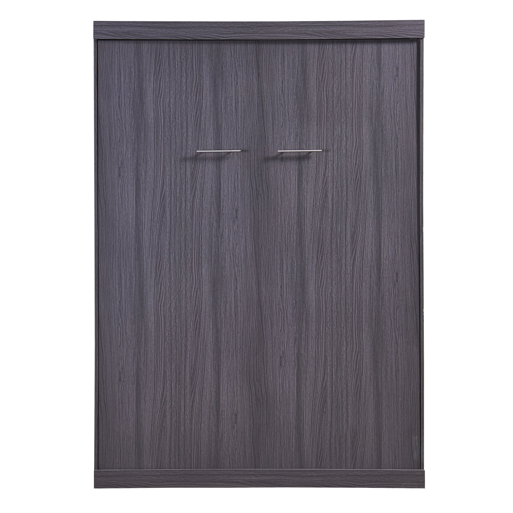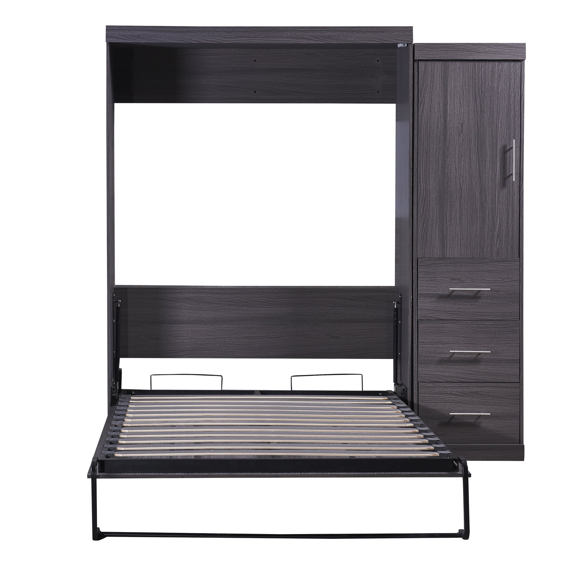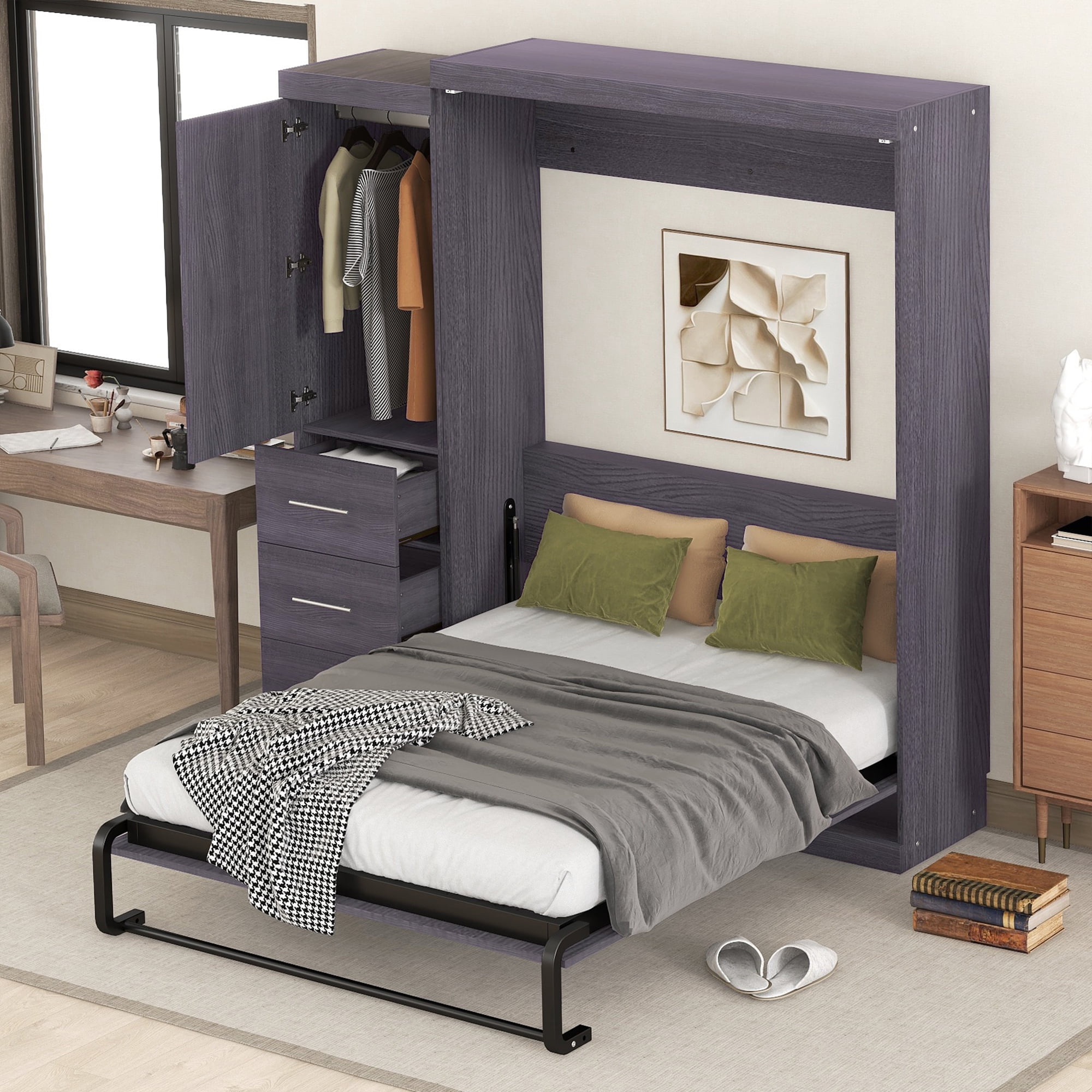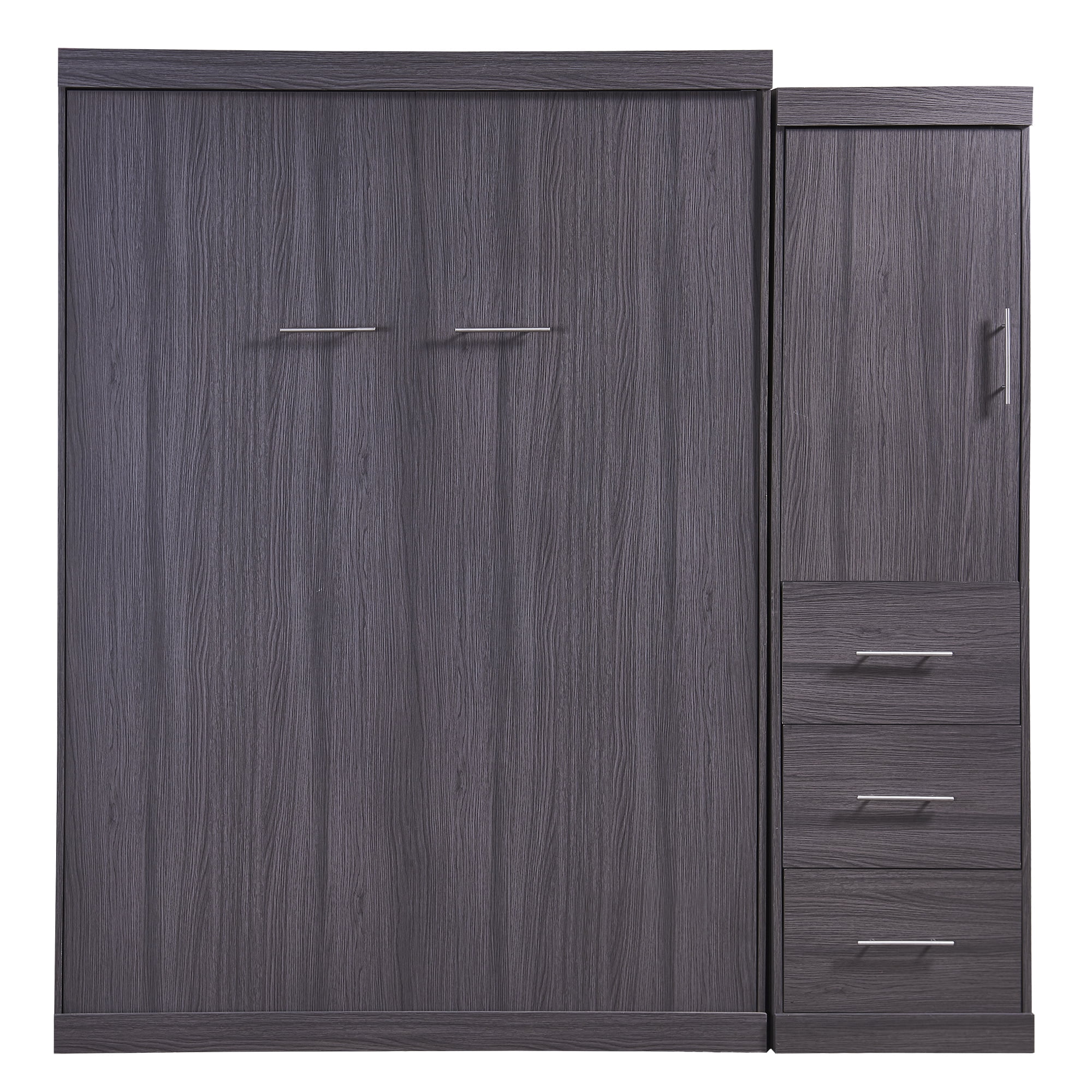 Euroco Wood Full Size Murphy Wall Bed with Wardrobe and Drawers for Living Room, Moveable Wardrobe and Drawers, Space-Saving & Easy Open and Close for Kids Teens Adults, Gray