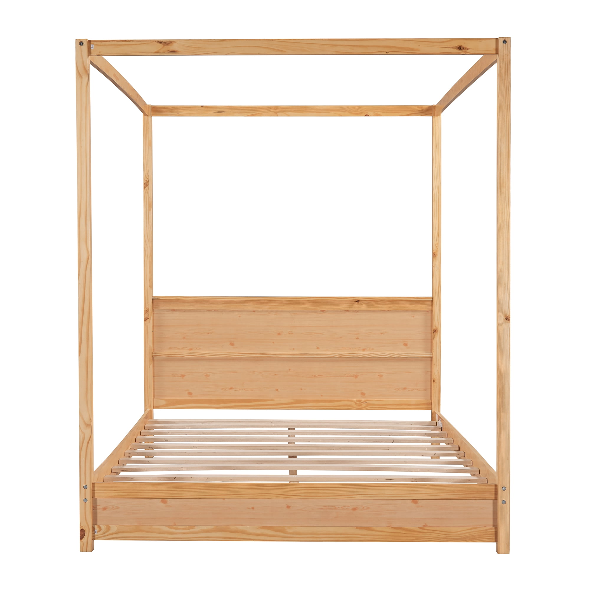 Features: [Sturdy and Durable]: This robust bed base is fully constructed of a pine wood frame that has an excellent weight-bearing capacity. The powder-coated wooden frame features scratch resistance and is not easy to oxidize, which is reliable for long-term use. [Canopy Design]: Different from other beds, this four-poster canopied bed is designed to hang curtains or other ornamentation to create an elegant and stylish living space. Drop the canopy with sheer curtains and put on your favorite pillows and bedding, a luxurious and comfortable night begins. [Beautiful and Comfortable]: This beautifully crafted, modern-industrial design features the rustic elegance and wood grain of solid wood coupled with angular wood canopy framework, striking the ultimate balance between relaxed and refined [Solid Construction]: This canopy platform bed is made from solid pine wood and MDF, which will stand the test of time to serve your family for many years. The bed is also equipped with solid headboard for you to lean on. [Easy to Assemble]: This expertly crafted piece comes with everything you need to put it together, including all hardware and simple tools to get you from box to bedroom in less time than you’d think. Specification: Size: Queen Overall Product Dimension: 83.9″L*62.8″W*74.8″H Bed Inner Size: 80.3″x 60.2″ Overall Product Weight: 87lb Bed Weight Capacity: 550lb Mattress Included: No Total Height: 90.5″ Assembly Required: Yes Recommend Upper/Lower Bed Mattress Thickness: 8”-10”
