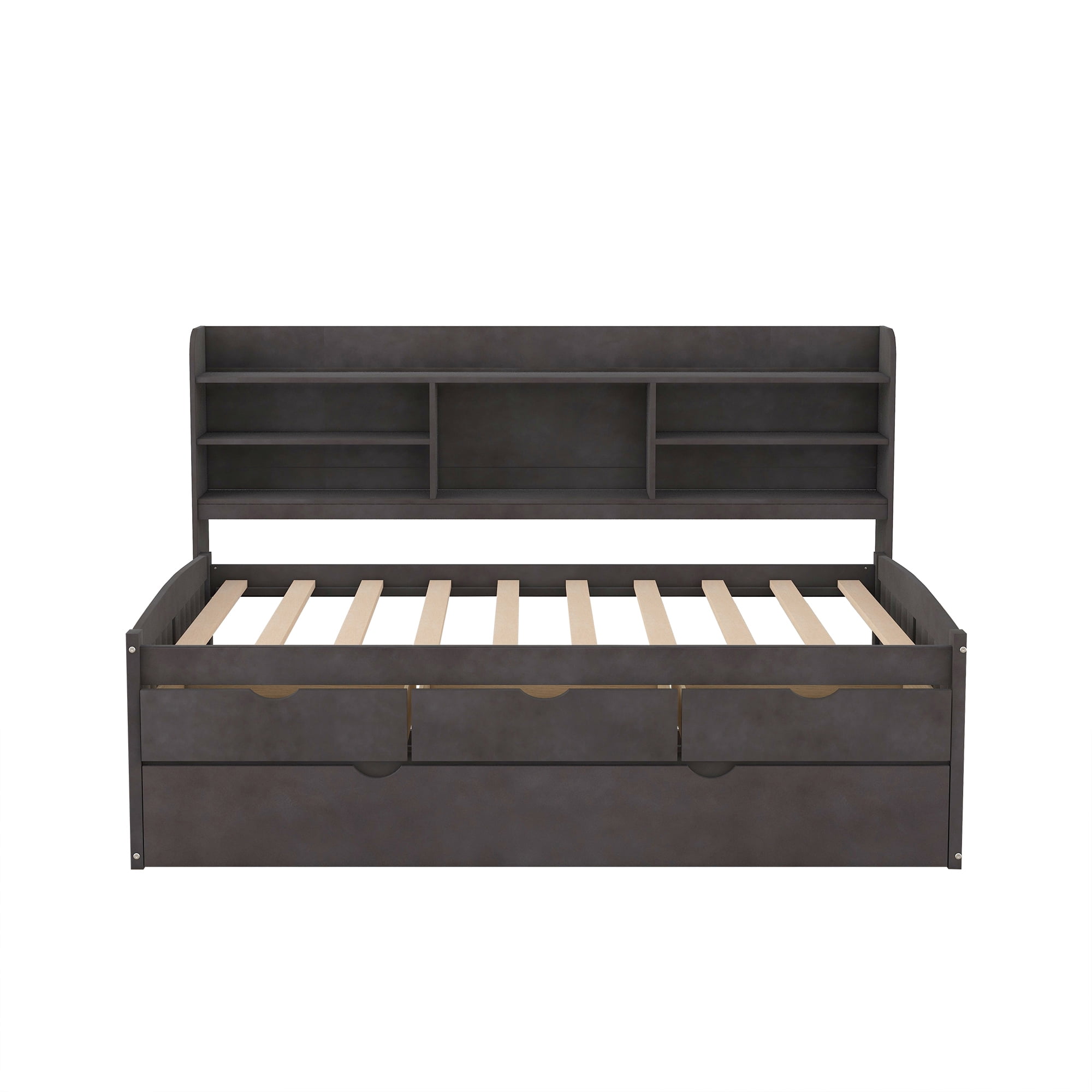 Euroco Wood Twin Size Daybed with Shelf, Wood Captain Bed with Drawers and Trundle Kids Teens, Antique Gray