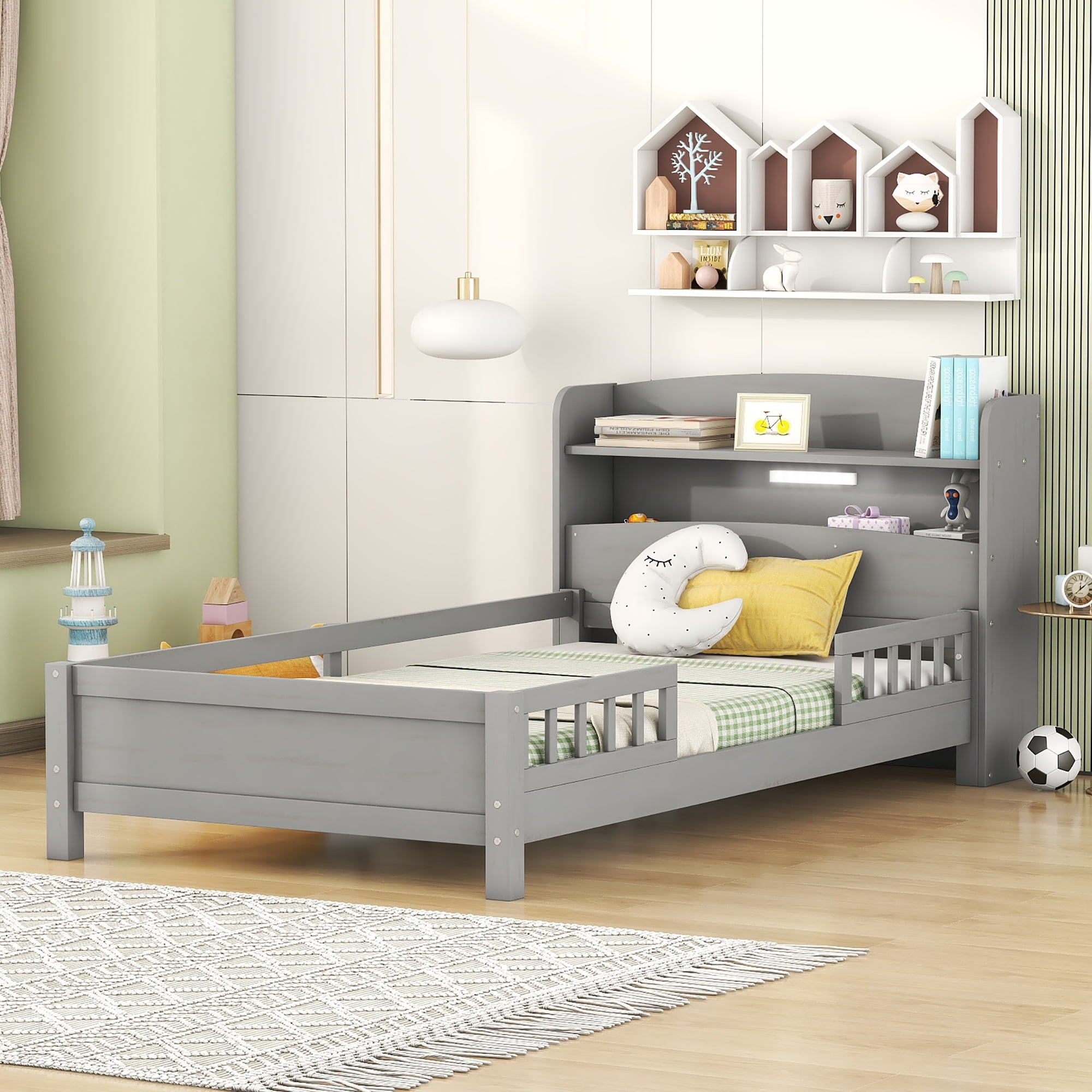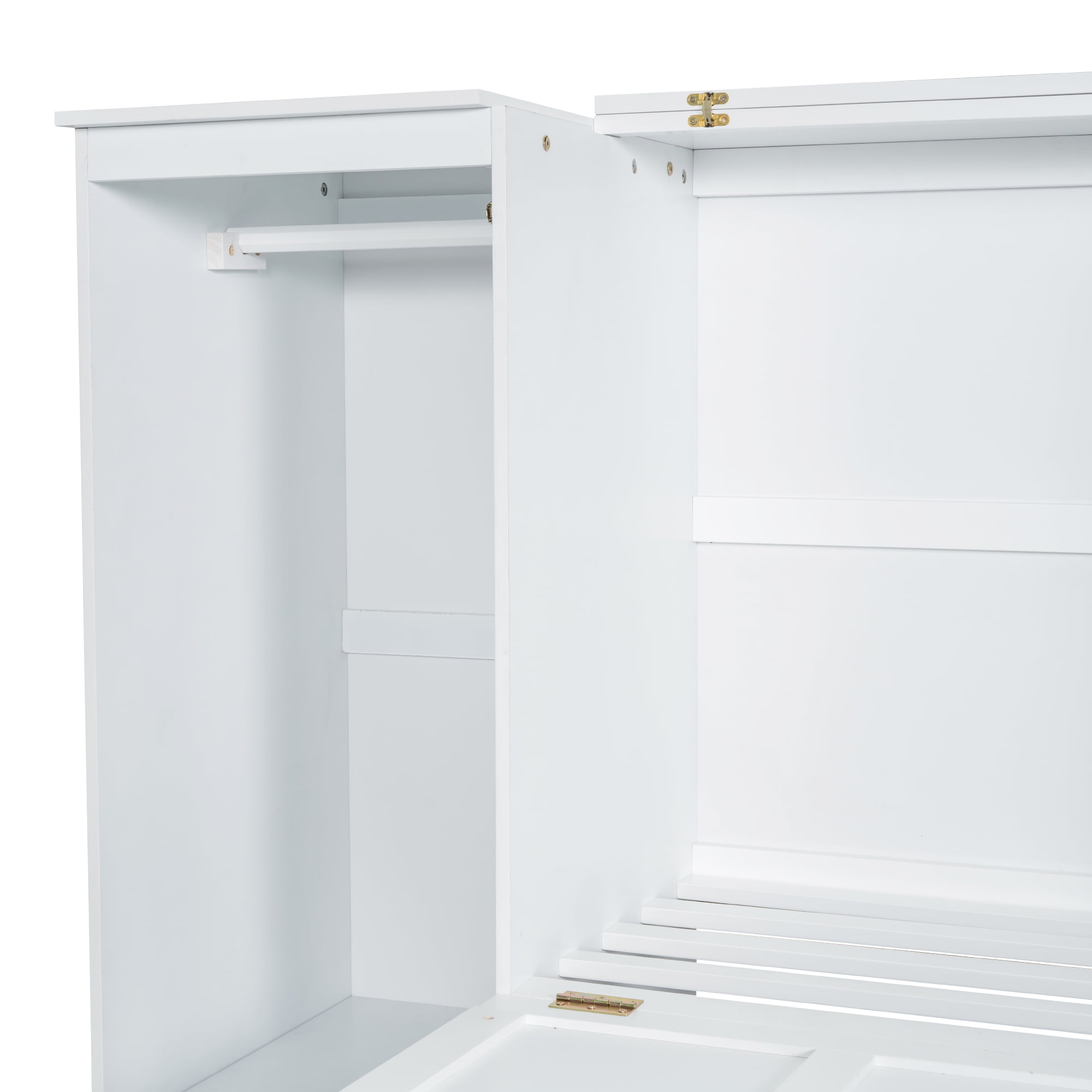 Euroco Wood Twin Size Murphy Bed with Wardrobe and Shelves for Kids Teens Living Room
