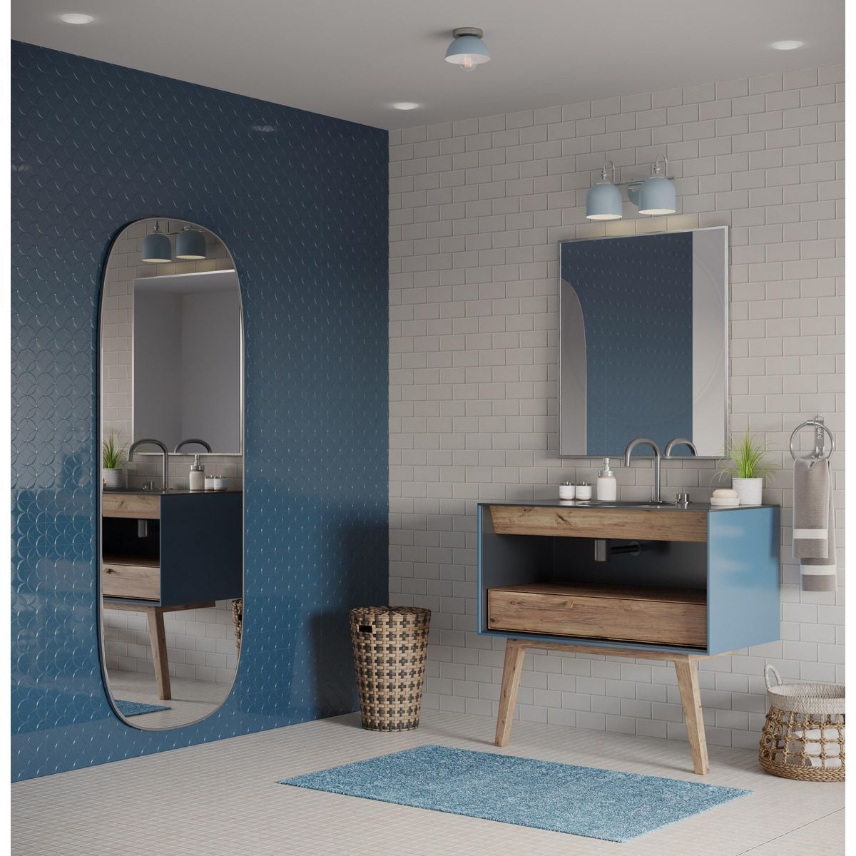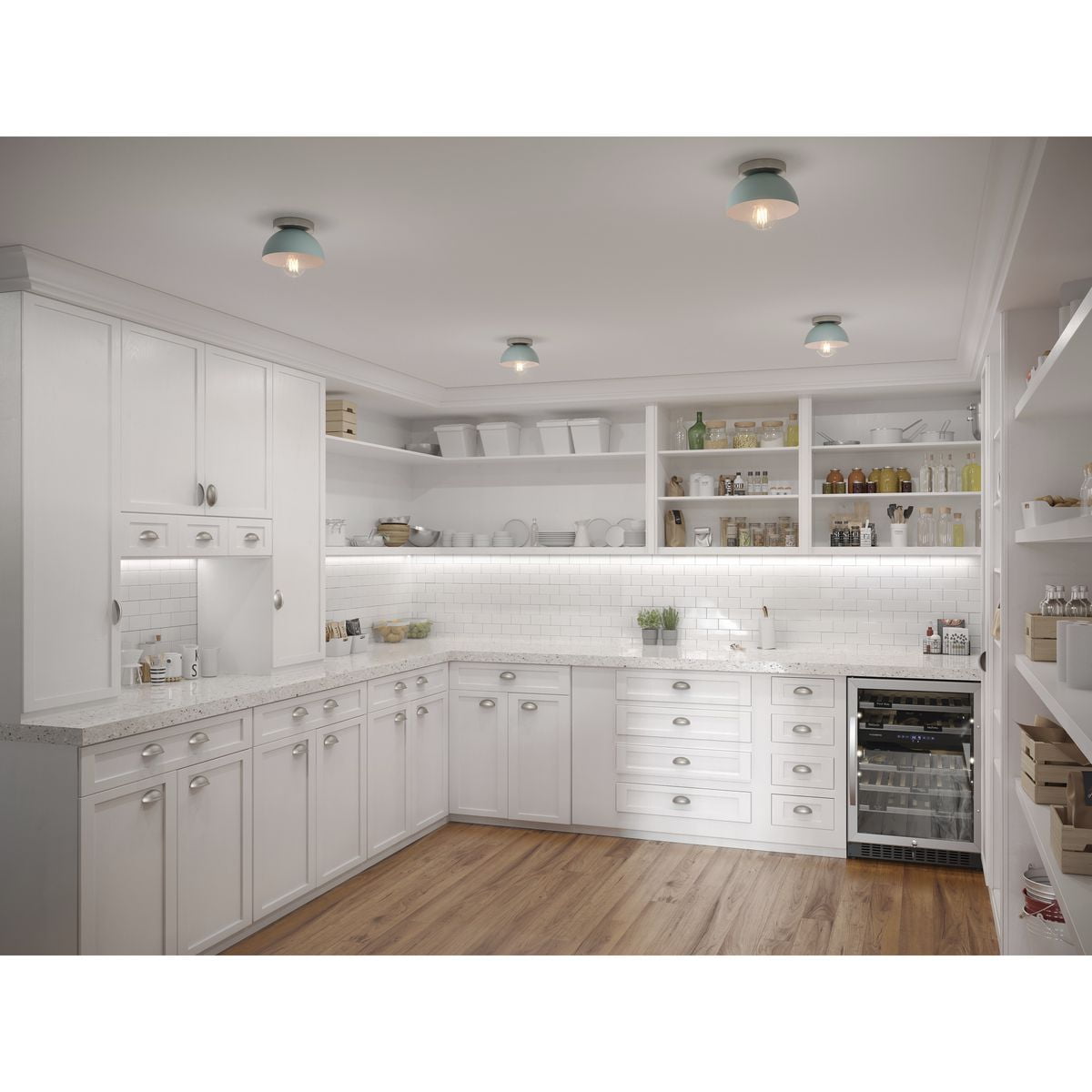 Offer nostalgic charm for today’s home with a flush mount from the Eva Collection. A coastal blue shade is complemented by beautiful brushed nickel accents for an eye-catching, two-toned color scheme. Compatible with dimmable bulbs.
