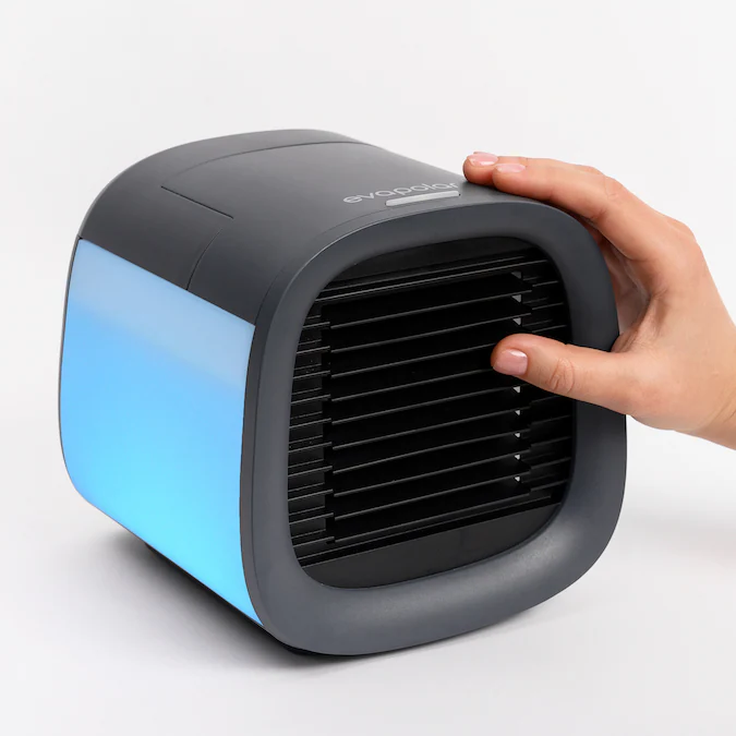 - Contrary to personal air conditioners, evaCHILL doesn’t use Freon-like liquids, the temperature drop is a result of the water evaporation process.