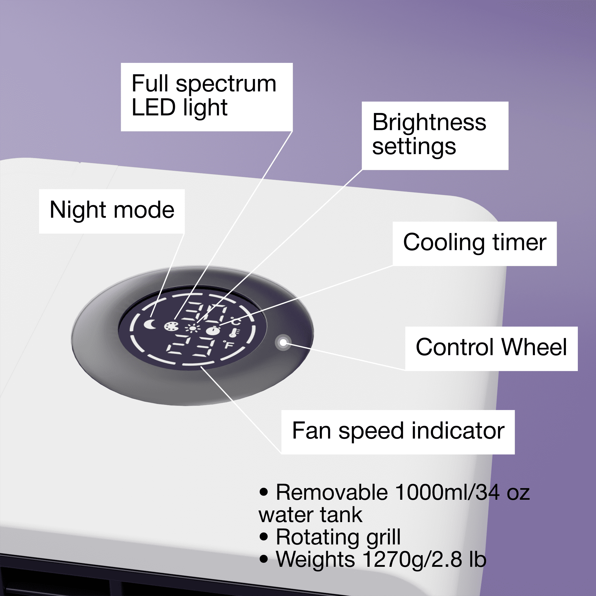 3-IN-1 COOLING – Evapolar evaLIGHT Plus cools & humidifies the air using evaporative technology, the cartridge material also catches large dust particles. evaLIGHT Plus mini air conditioner is equipped with a display, a removable water tank (34 oz capacity), sleep timer, and a luxury LED lighting. NATURAL PERSONAL COOLING – Efficiently cools your personal space using evaporative technology. Ideal solution for hot, dry climates. Feel the pleasant cool breeze within 3 – 5 feet in the direction of airflow. Contrary to other personal air conditioners, evaLIGHT plus doesn’t use Freon-like liquids, the temperature drop is a result of the water evaporation process. ENERGY-EFFICIENT & COST-SAVING – consumes only 10W (up to 100x less than an AC unit) and saves your bills. Can be used solo as well as in tandem with an AC, reducing energy consumption and preventing air dryness. 100% SAFE FOR BREATHING – Evapolar functionality is based on natural evaporative cooling powered by our patented Evabreeze technology that cools and humidifies the air in a most efficient, innovative, and eco-friendly way. Our material is made from long-lasting basalt fibers, which means no odor, no mold, no bacteria, and 100% safe for breathing. *Please, note: the natural color of evaBREEZE bazalt-based cartridge material may differ from white to dark green. Small amount of basalt dust inside the device is okay. PORTABLE – EvaLIGHT Plus evaporative air cooler are portable and whisper-quiet (up to 45bB), and can also be powered via USB from power banks, laptops and a car power outlet with a capacity of at least 2A 5V. No installation needed so you can move with comfort and feel the ocean breeze wherever you go, whether you are traveling, working, studying or just chilling at home.