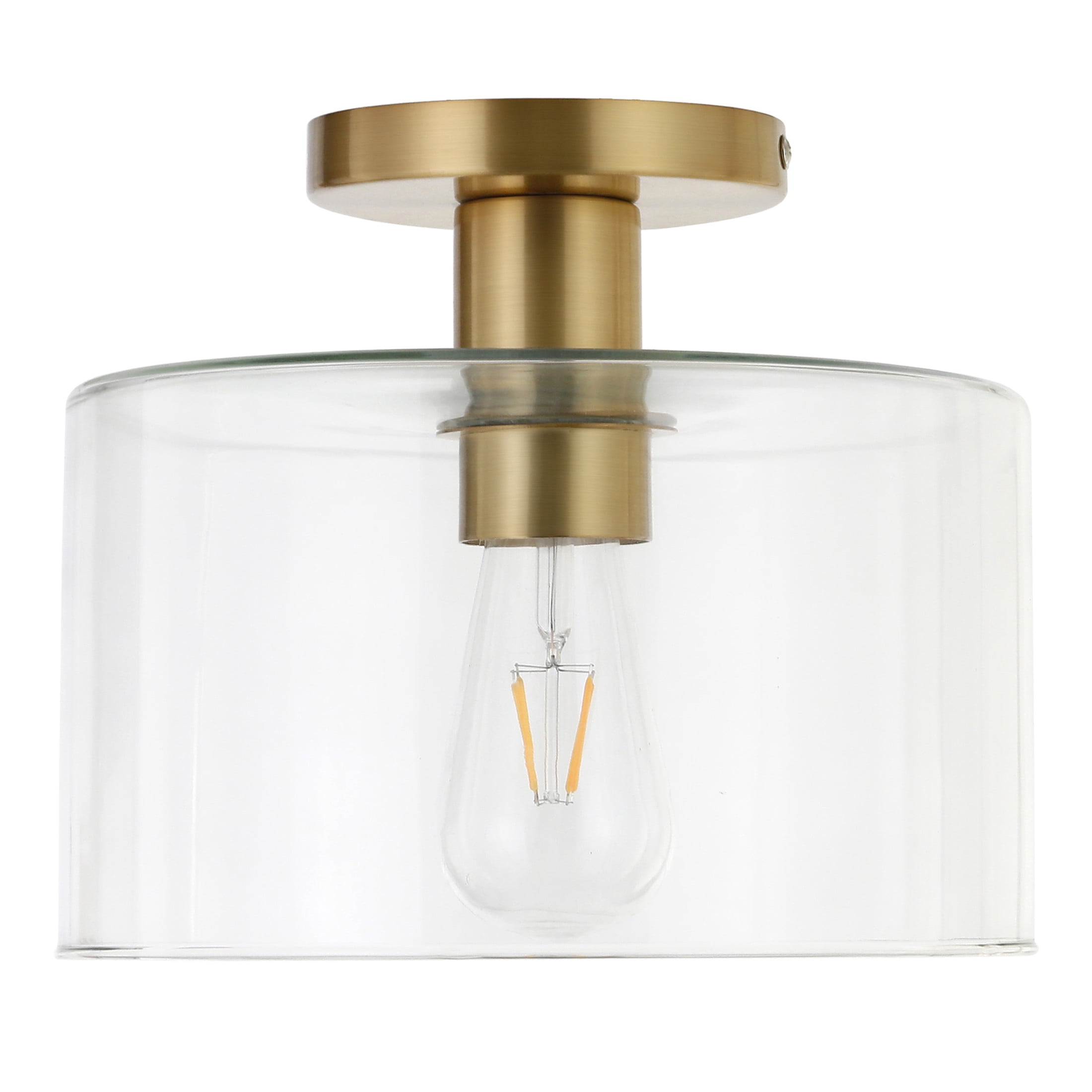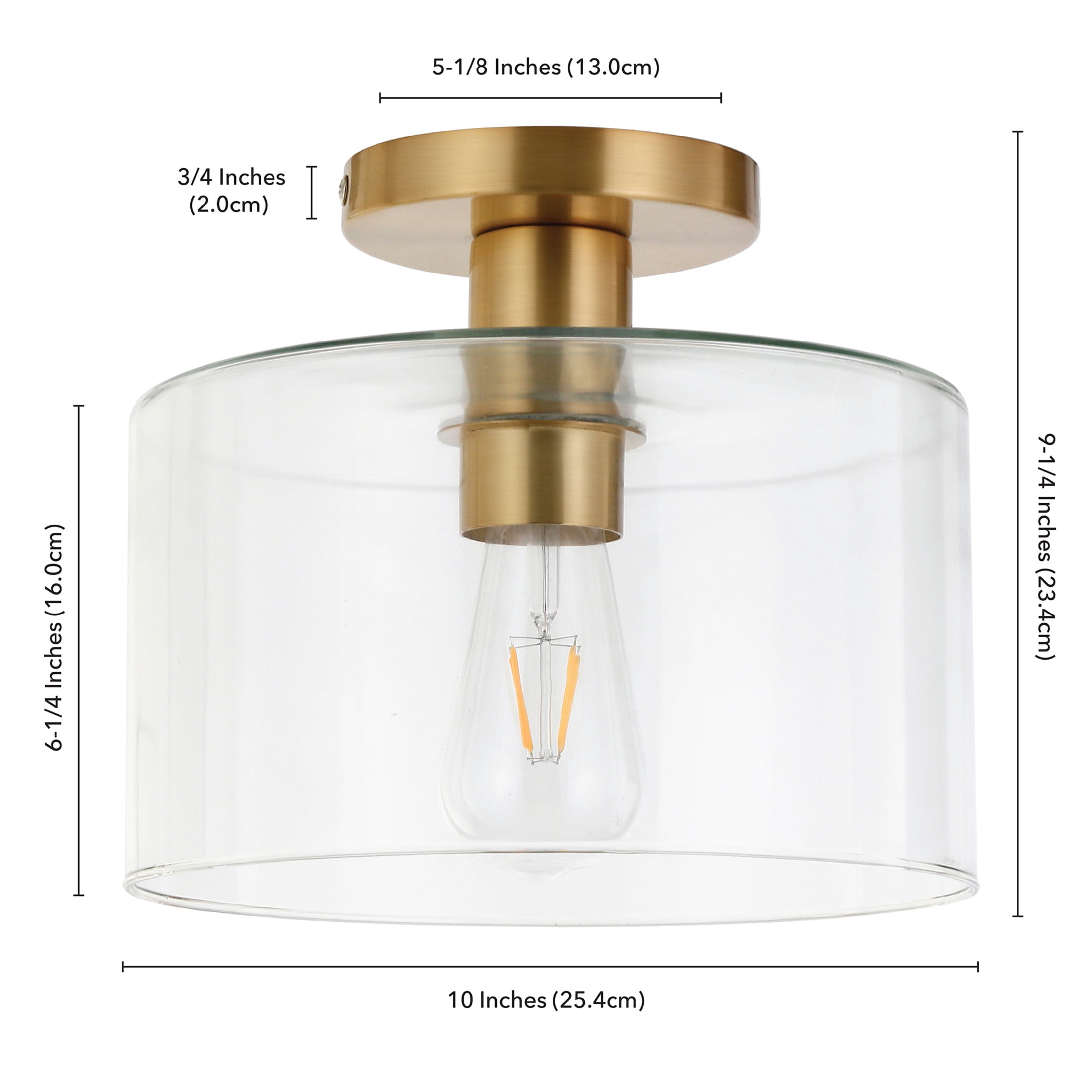 Evelyn&Zoe 10″ Brass Finish Metal/Glass Semi Flush Mount