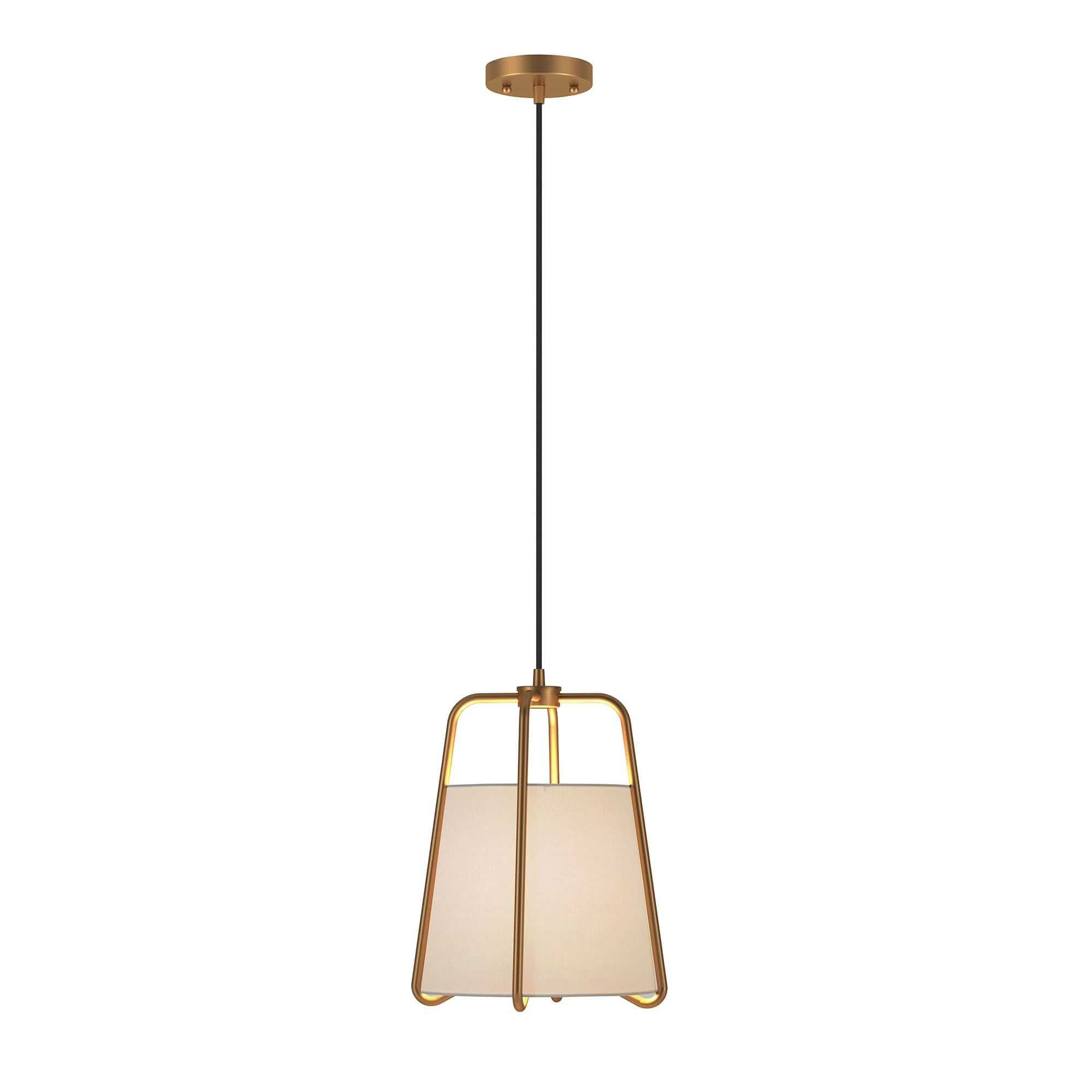 This white fabric contemporary fixture, with an adjustable height, would complement the modern design of your living room, dining room, bedroom or foyer. The shade’s warm glow contrasts with the stark simplicity of its outer brass, blackened bronze or nickel metal frame. The white linen fabric shade brings a contemporary feel to any room. Features: The brass frame perfectly encases the white linen shade. It is paired with a elongated French Drum shade. The shade is in a crisp chiffon color and is made of 100% linen with polystyrene lining for durability. Includes 8 ft., black weave, adjustable length cord. Premium materials have been used in the making of this product Specifications: Product Weight: 3.30 lbs Target Audience: Adult (18 Years and Up) Assembly details: Adult Assembly Required, Tools Not Provided Frame Material: Metal