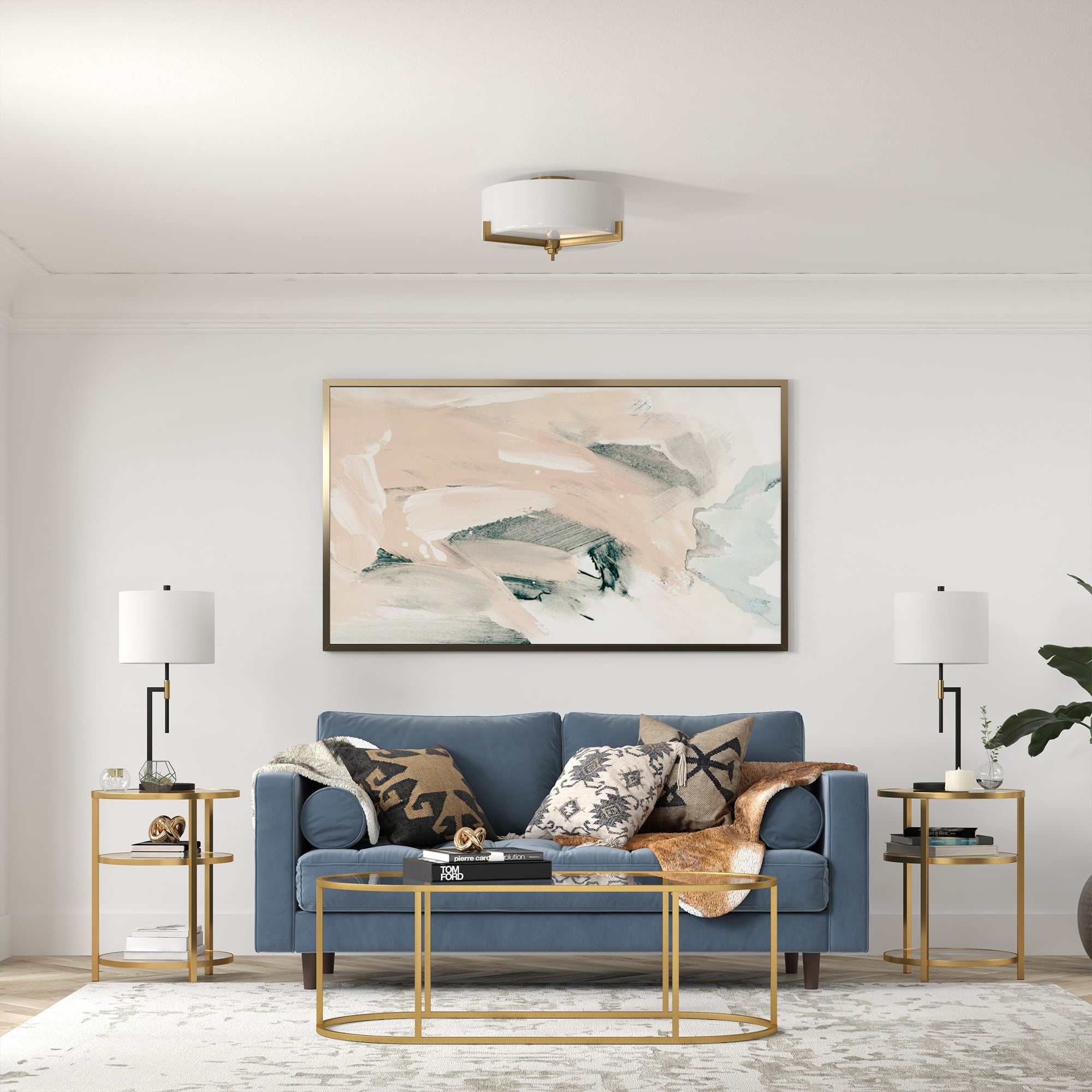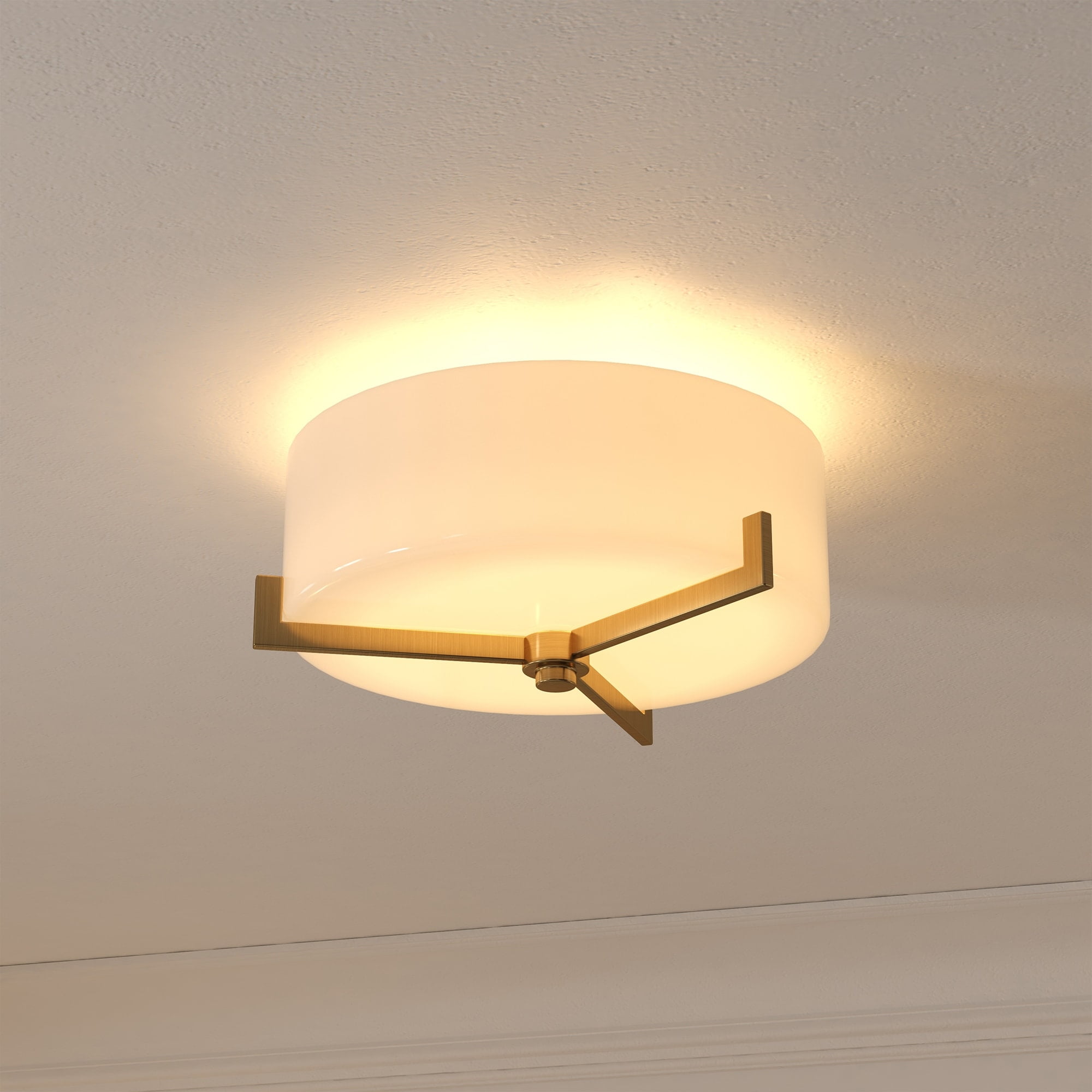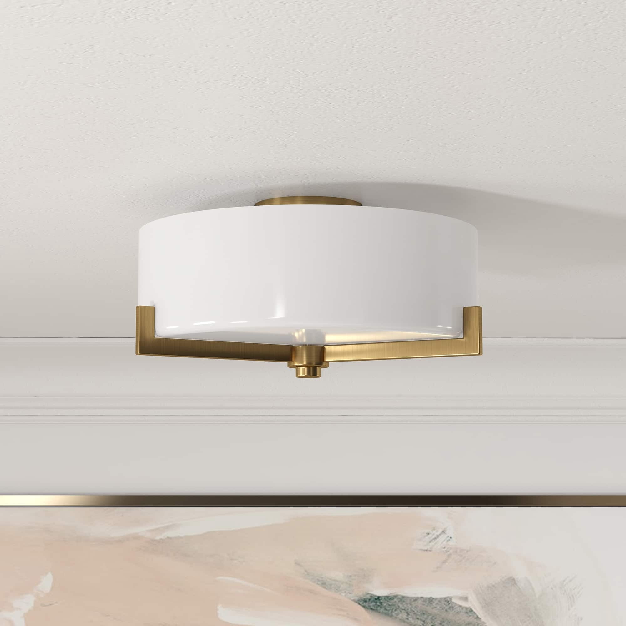 With a style inspired by the industrial revolution but appropriate for a coastal beach house, this 2-light semi flush mount ceiling light brings true mood lighting to your space. The classic glass drum shade and streamlined hardware gives this fixture a retro feel that complements many decor styles. The on-trend mixed-materials look provides a perfect complement to nearly any design inspiration. Features: Modern transitional design for your entryway, foyer, or kitchen. Handcrafted blackened bronze finish is applied to the metal base. Paired with a white drum glass shade. Rated for two 60W incandescent bulbs; 9W LED bulbs, 13W fluorescent (CFL) bulbs, or 9W self-ballasted LED bulbs. E26-base bulbs. Bulbs not included. Mounting hardware included. Features easy assembly. Specifications: Product Dimensions: 17.5″W x 17.5″D x 8.25″H Product Weight: 8.16 lbs