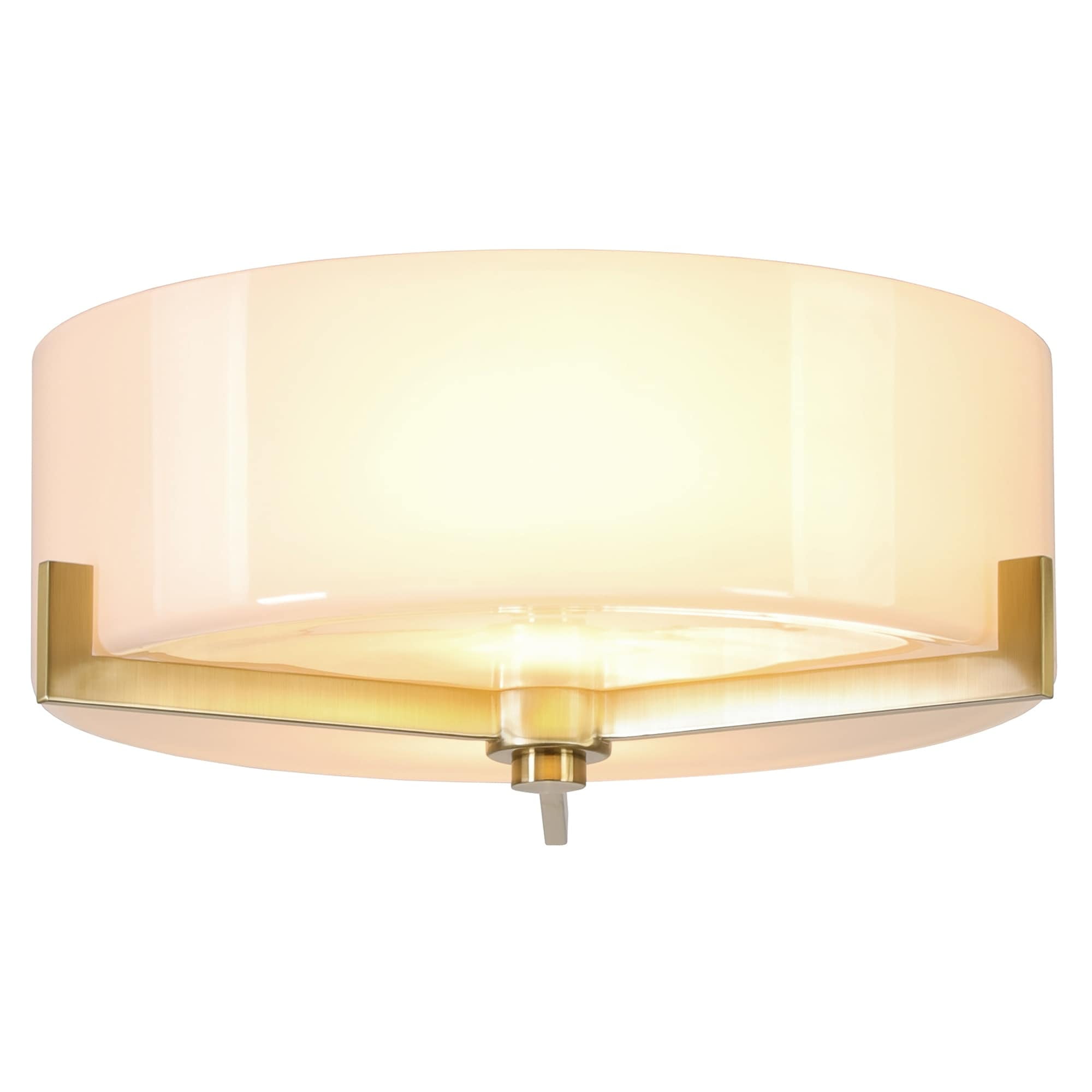 Modern transitional design for your entryway, foyer, or kitchen. Handcrafted blackened bronze finish is applied to the metal base. Paired with a white drum glass shade. Rated for two 60W incandescent bulbs; 9W LED bulbs, 13W fluorescent (CFL) bulbs, or 9W self-ballasted LED bulbs. E26-base bulbs. Bulbs not included. Mounting hardware included. Features easy assembly.
