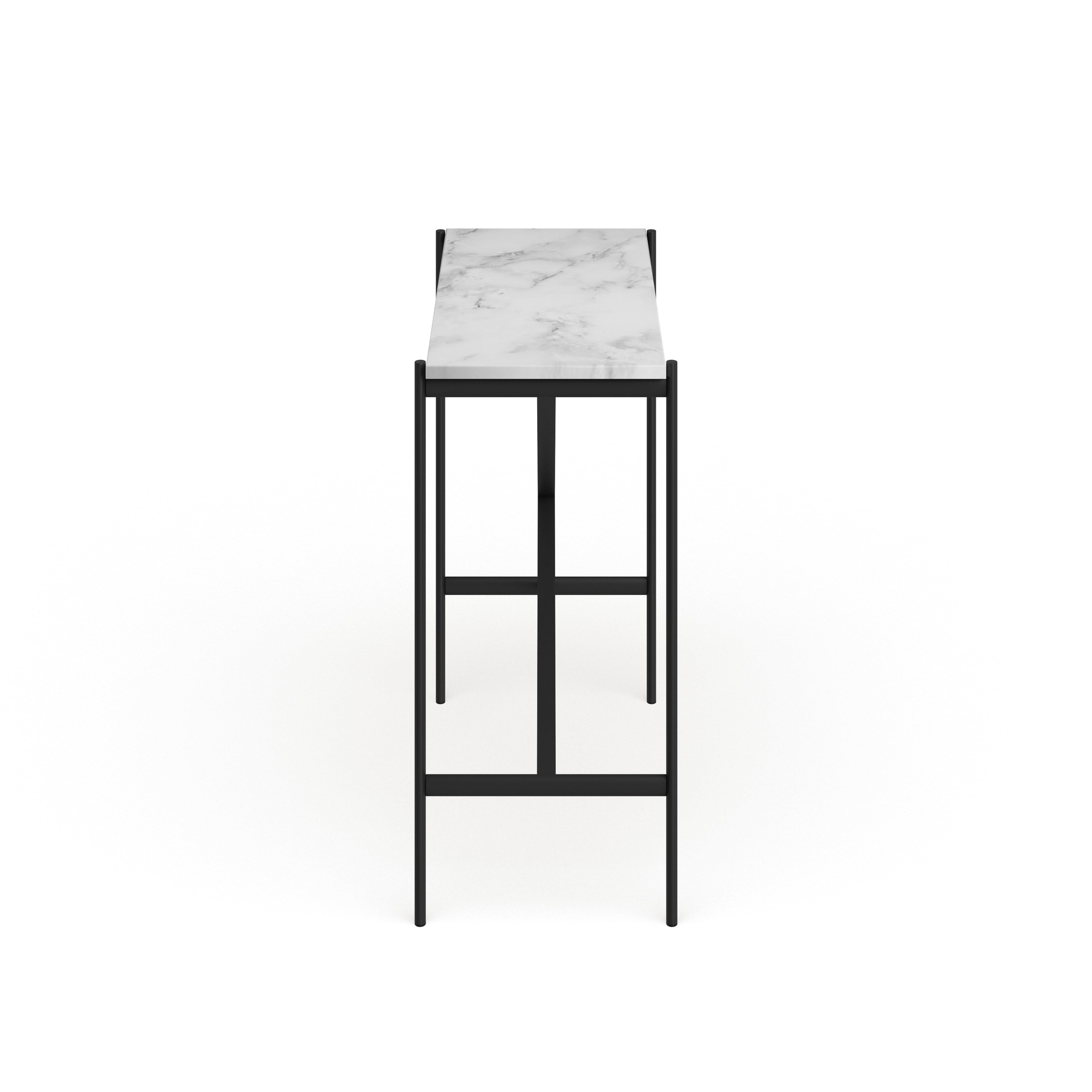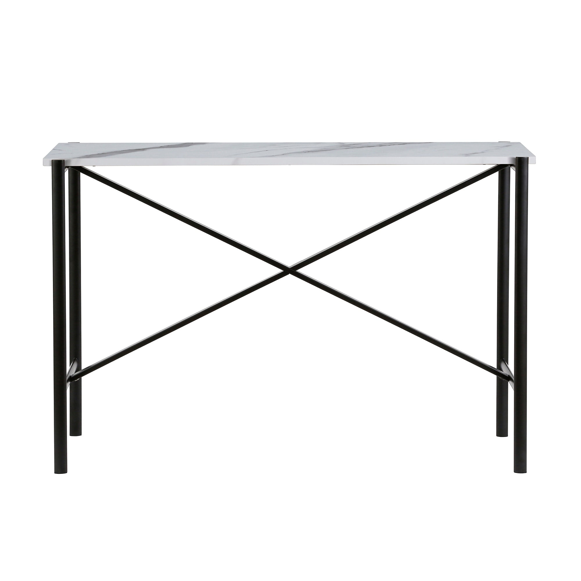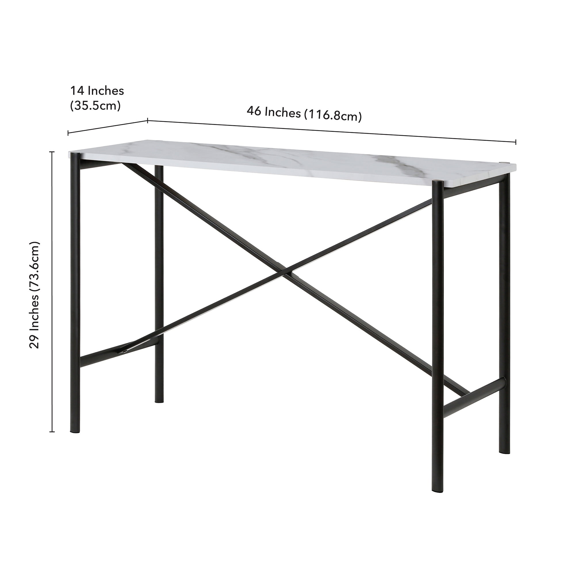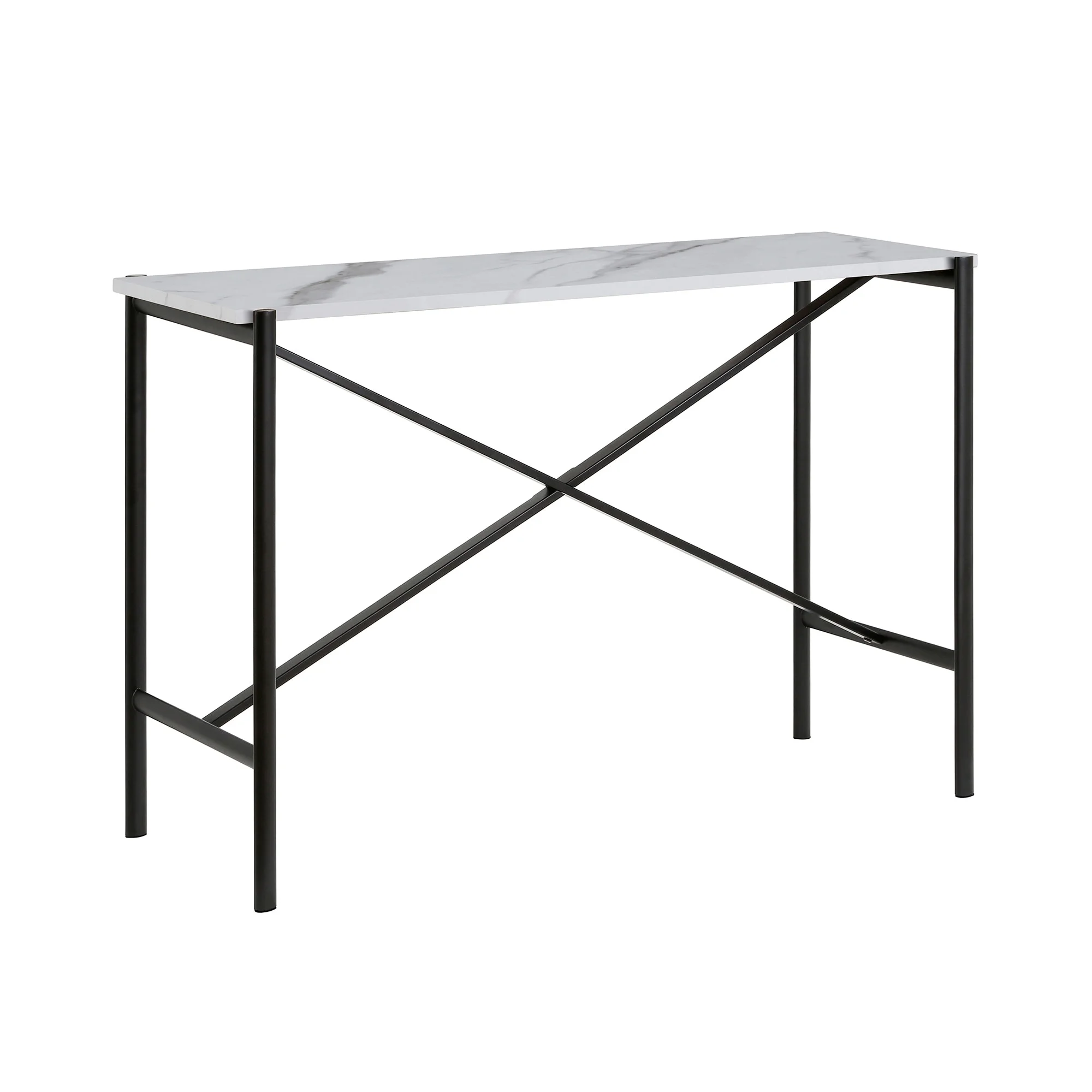 Geometric design takes this industrial modern console table to the next level. A seamless blend of mixed materials gives this entryway table an industrial style that’ll make your space looks warm and inviting. Easy to assemble and easy to style, the faux marble top and blackened bronze hardware make it the perfect addition to your living room or bedroom ensemble. Features: Hand crafted black matte finish applied to the metal frame. Faux Marble top Easy assembly Weight capacity can support up to 50 LBS. Premium materials have been used making this accent table. The base is made from steel while the table top is made from faux marble. Specifications: Product Weight: 24.2 lbs Target Audience: Adult (18 Years and Up) Assembly details: Adult Assembly Required, Tools Not Provided Frame Material: Metal