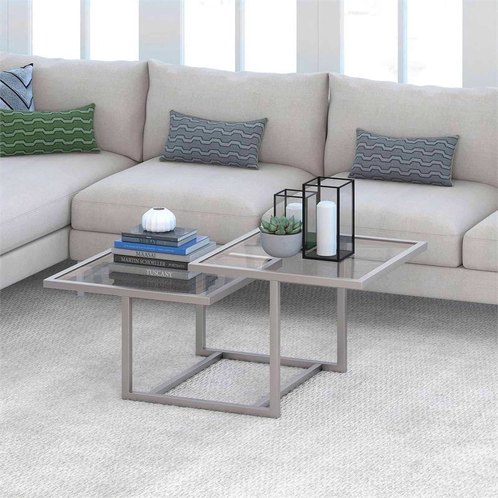 Evelyn&Zoe Amalie 43″ Wide Square Coffee Table, Nickel