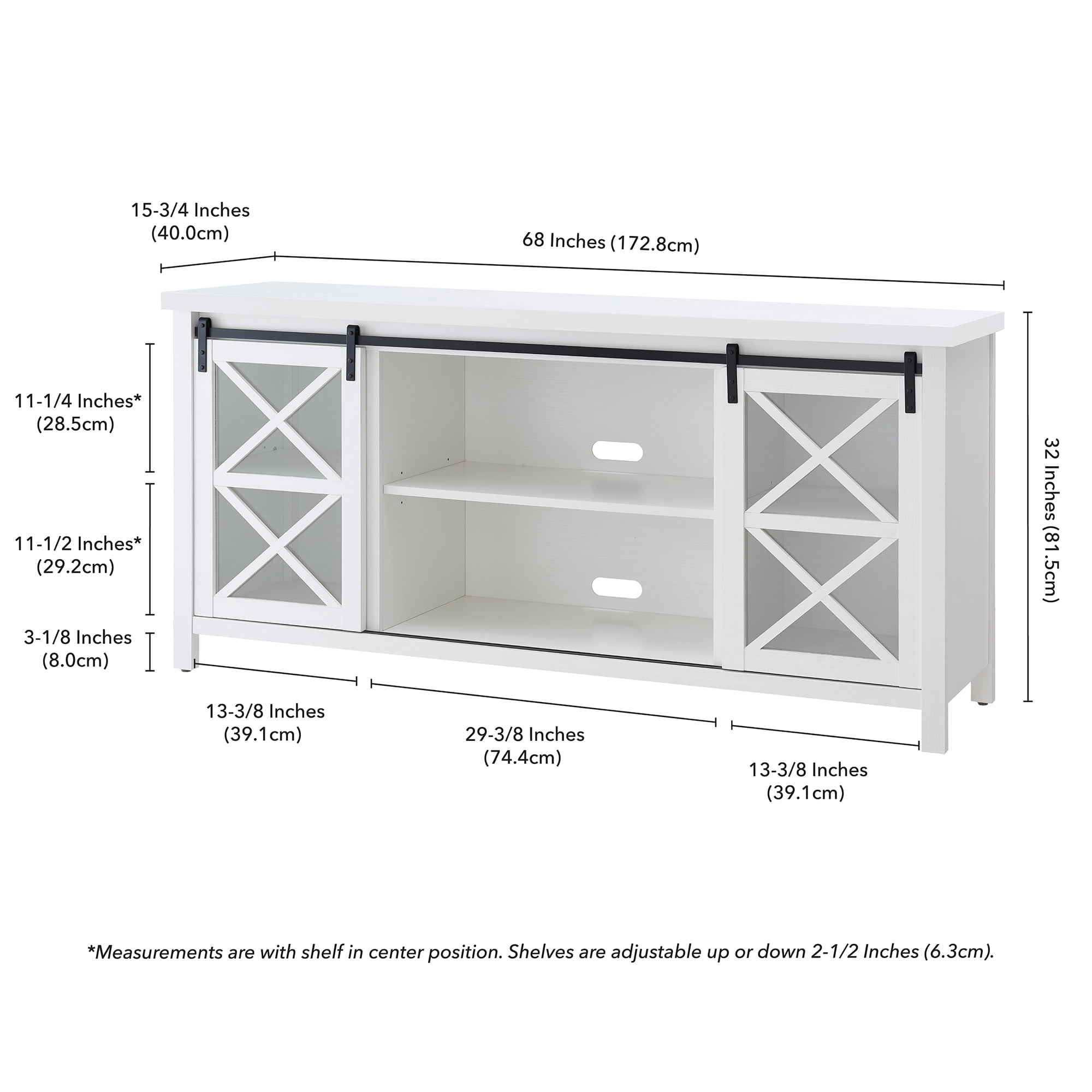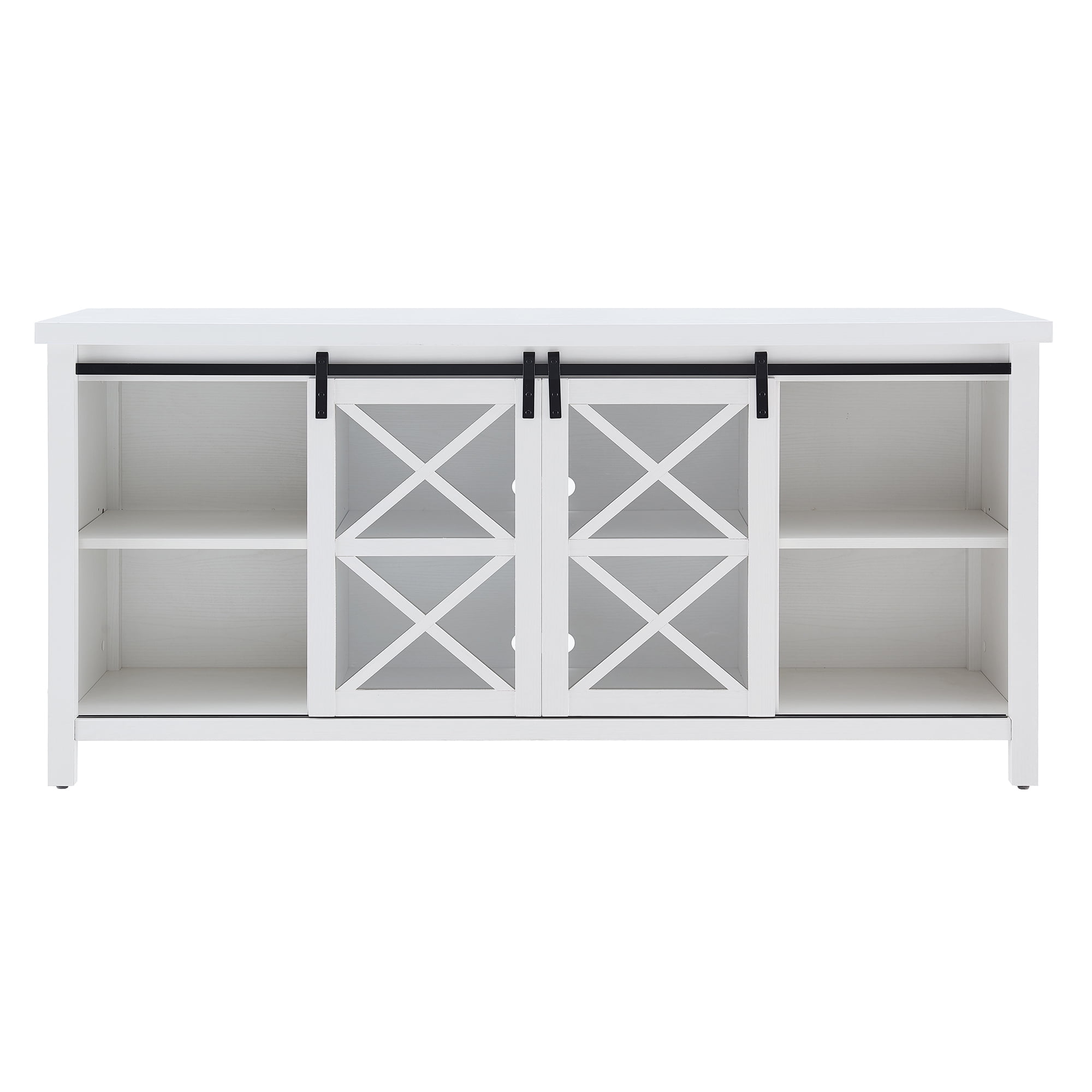 Combine functionality and on-trend design with this sturdy TV stand. Its rich wood tone creates a warm neutral palette that will blend seamlessly into any color scheme, while its functional sliding barn doors add a touch of modern farmhouse whimsy. A must-have for living areas and entertainment spaces, this TV stand sets the stage for the big game, a movie marathon, or that season finale everyone’s been talking about.
