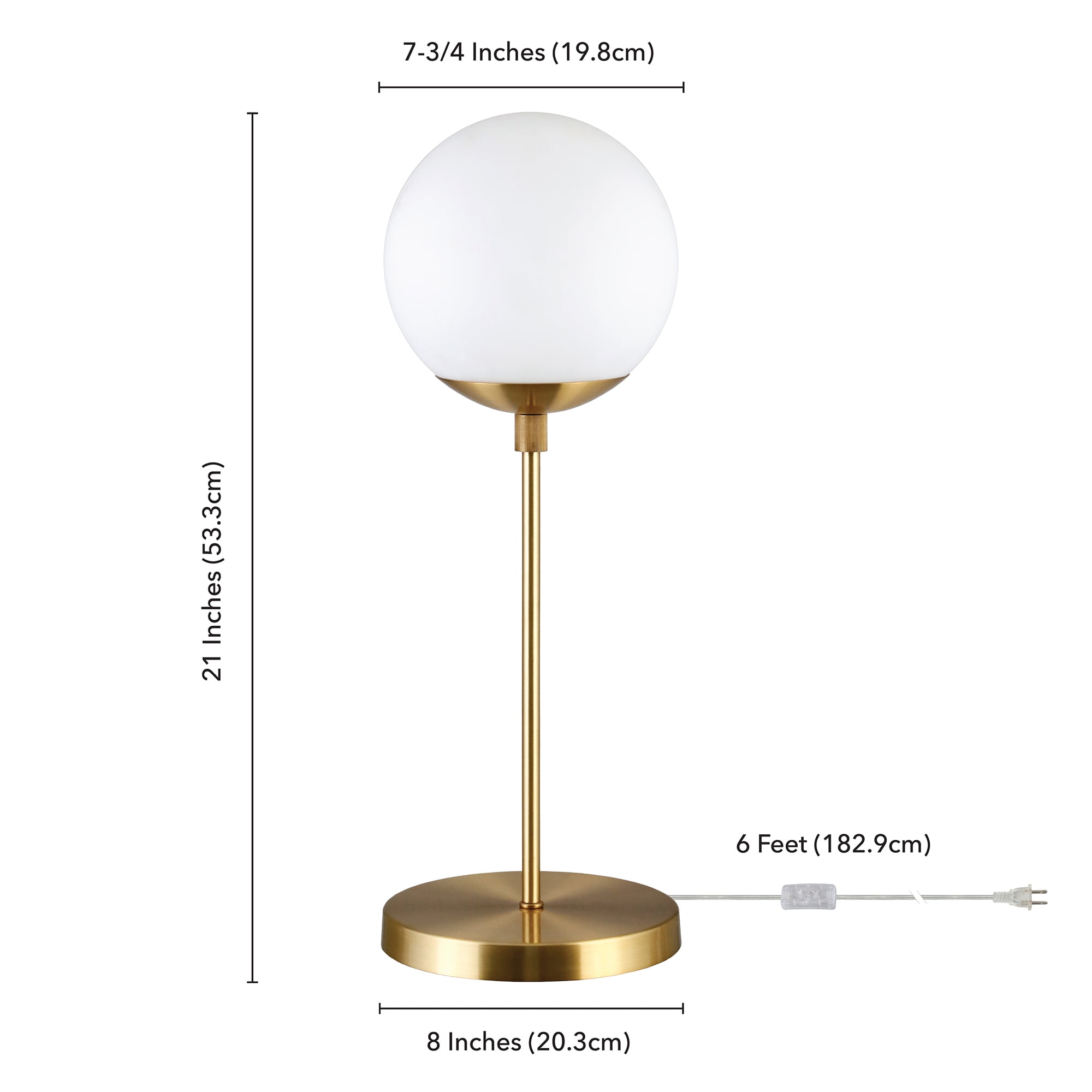 Compatible with smart light bulbs such as Philips Hue, LIFX, IOTTY, TP-Link, Texsens, Flux, Samsung SmartThings, WiZ, and C by GE. Bulb is not included. Uses an E26 base bulb with a max wattage of 60 watts. E26 is considered the standard, basic light bulb. And the lamp is compatible with energy efficient LED bulbs effectively putting out much more light per watt. Ideal use for bedroom lamp, nightstand lamp, kid’s room lamp, living room lamp, dining room lamp, reading lamp, living room lamp, office lamp, task lamp, table lamp, dorm room lamp, buffet table lamp, side table lamp, etc. Premium materials have been used making this lamp: glass in the shade, steel in the frame and base, UL certified wiring components. And the finishes are hand done: the brass finish is a rich brushed brass finish, the blackened bronze finish is a deep dark brown that is nearly black to the eye, and the nickel is a brushed nickel giving the lamp a silver sheen. Features versatile design, chic design inspired by mid-century modern designers, it can easily transform into a contemporary lamp, clean line lamp, mid-century modern lamp, modern design lamp, urban modern lamp, transitional lamp, modern farmhouse lamp, industrial lamp, minimalist lamp, Scandinavian lamp, traditional lamp, Hollywood Glam Lamp, Coastal lamp, Hollywood Regency lamp, eclectic lamp, modern country lamp, Art Deco lamp, Asian Zen lamp, Feng Shui lamp, chic lamp. The base is a brushed brass metal This shade is made of glass. Rated for one 60W incandescent bulb; 9W LED bulb, 13W fluorescent (CFL) bulb, or 9W self-ballasted LED bulb. E26-base bulb. Includes a 6 ft. cord. Clean with a soft, dry cloth; no harsh chemicals or abrasive cleaning materials.