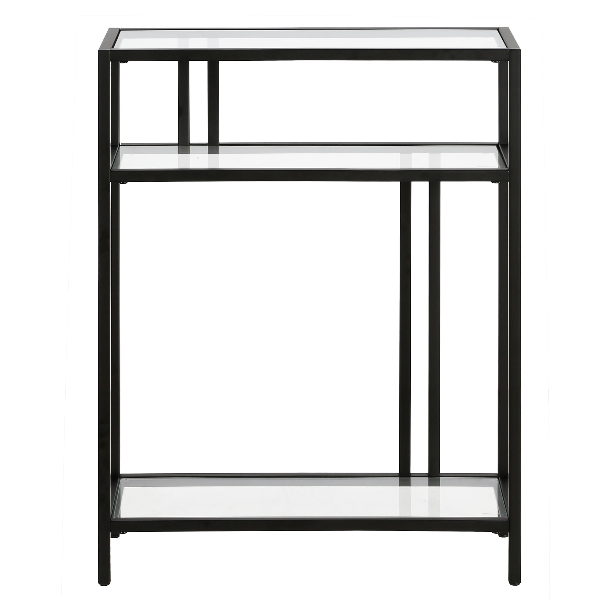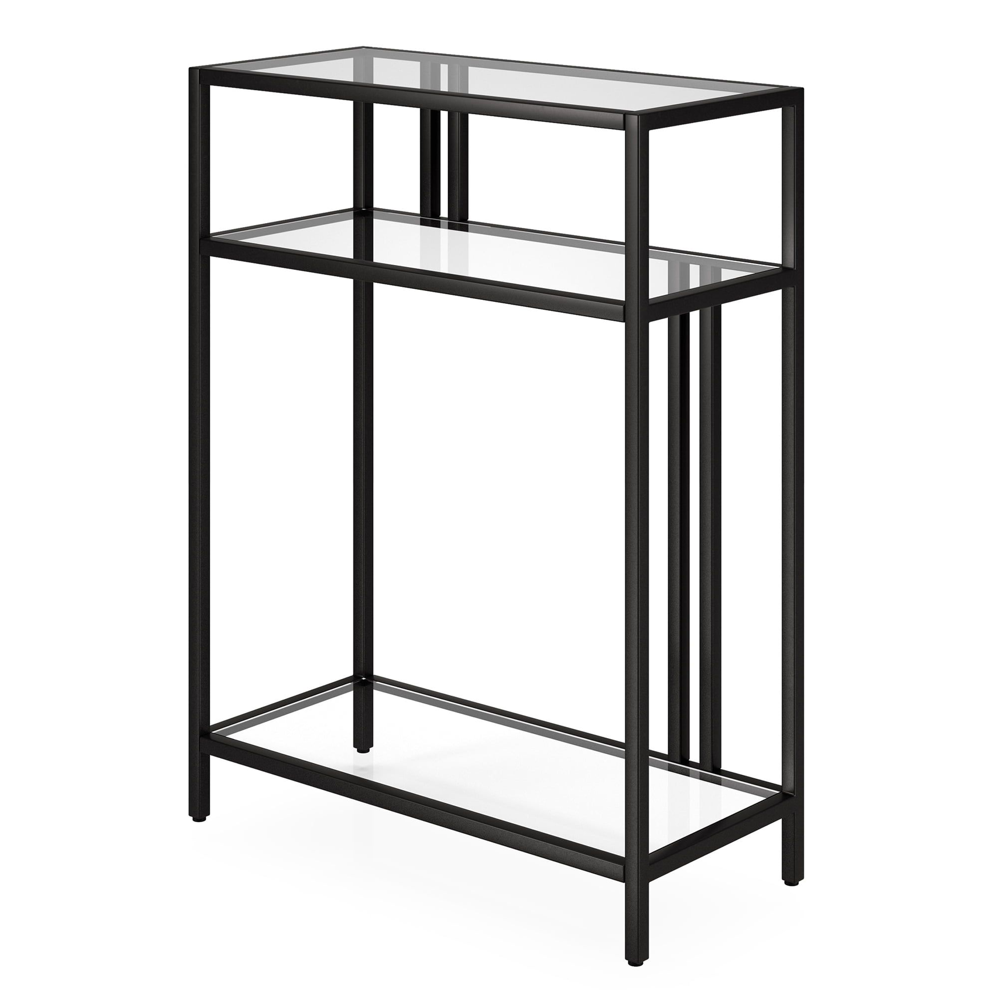 Evelyn&Zoe Cortland 22″ Wide Rectangular Console Table with Glass Shelves, Blackened Bronze