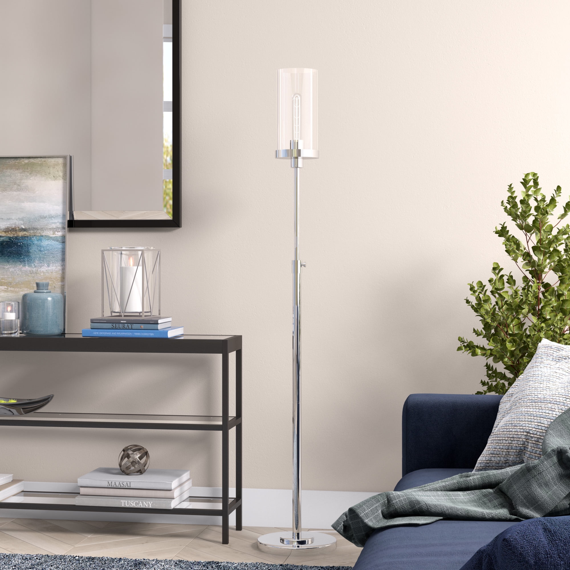 Evelyn&Zoe Frieda 66″ Tall Floor Lamp with Glass Shade, Polished Nickel/Clear