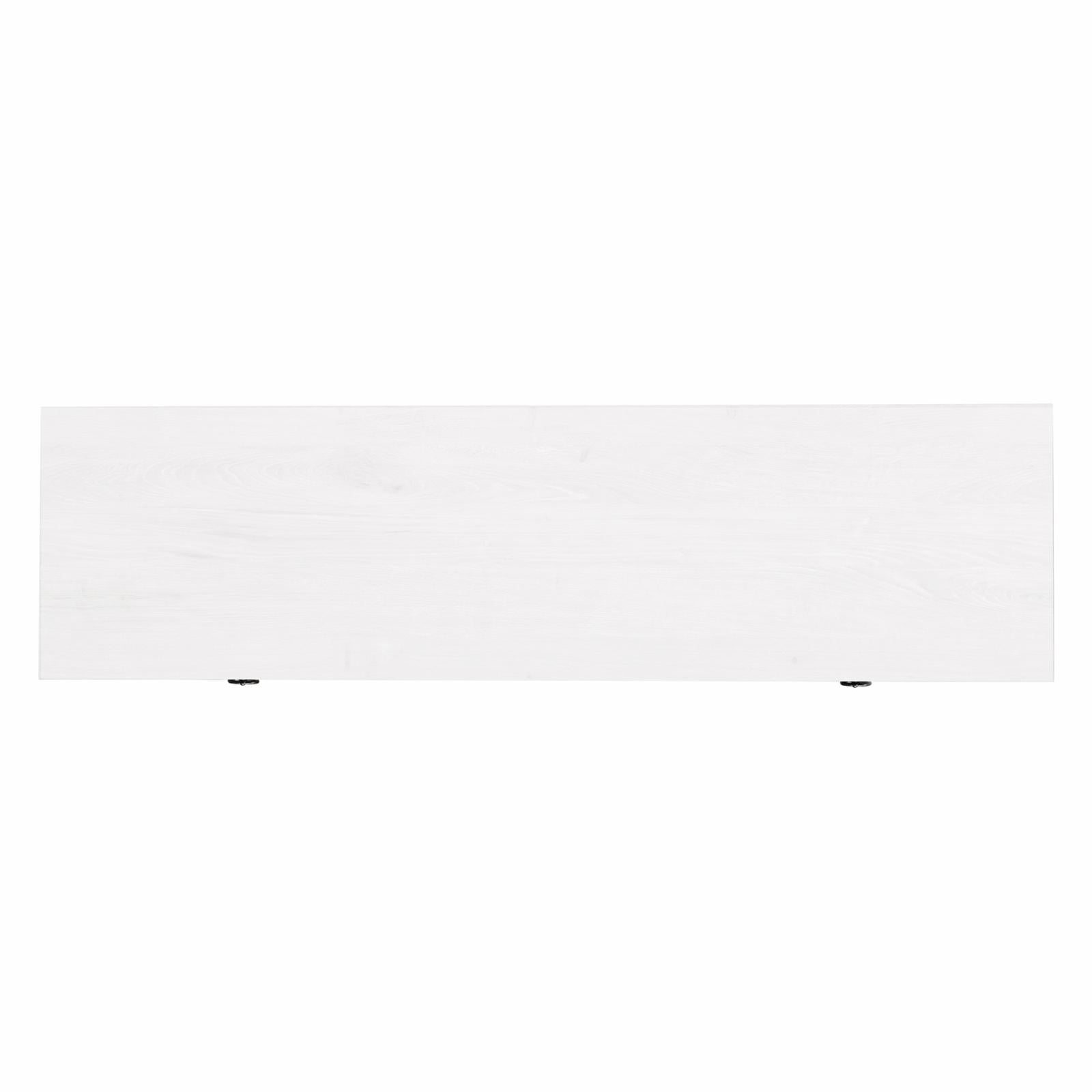 Dimensions: 58W x 15D x 24H in. Constructed of sturdy MDF Handcrafted white finish Fireplace insert features 4777 BTUs (heat coverage for 400 sq. feet) and an automatic temperature cut-off for safety. The top has a weight capacity of 75lbs. Lower shelves can hold 25 lbs. each. Features easy assembly.