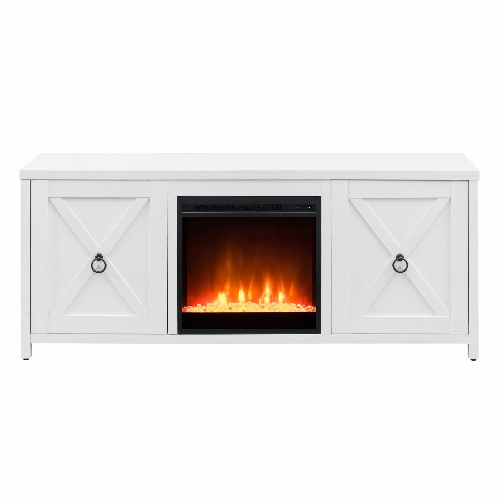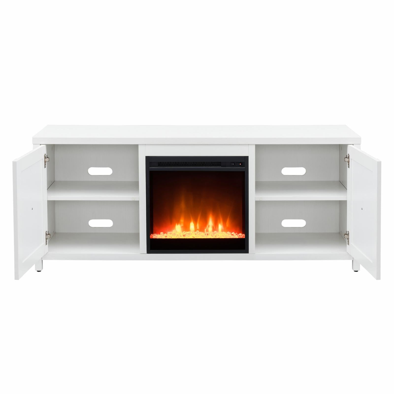 Evelyn&Zoe Granger Rectangular TV Stand with Crystal Fireplace for TV’s up to 65″, White