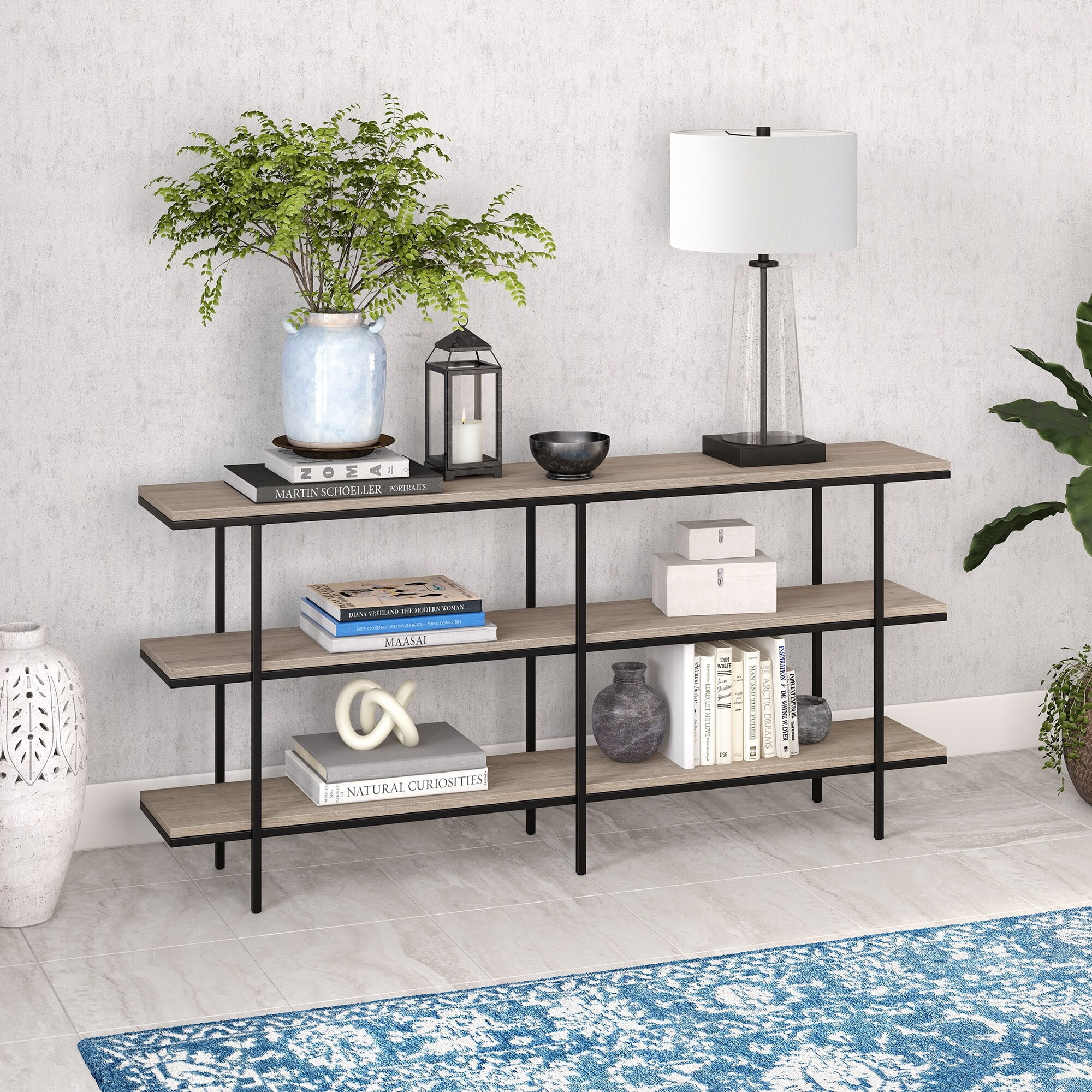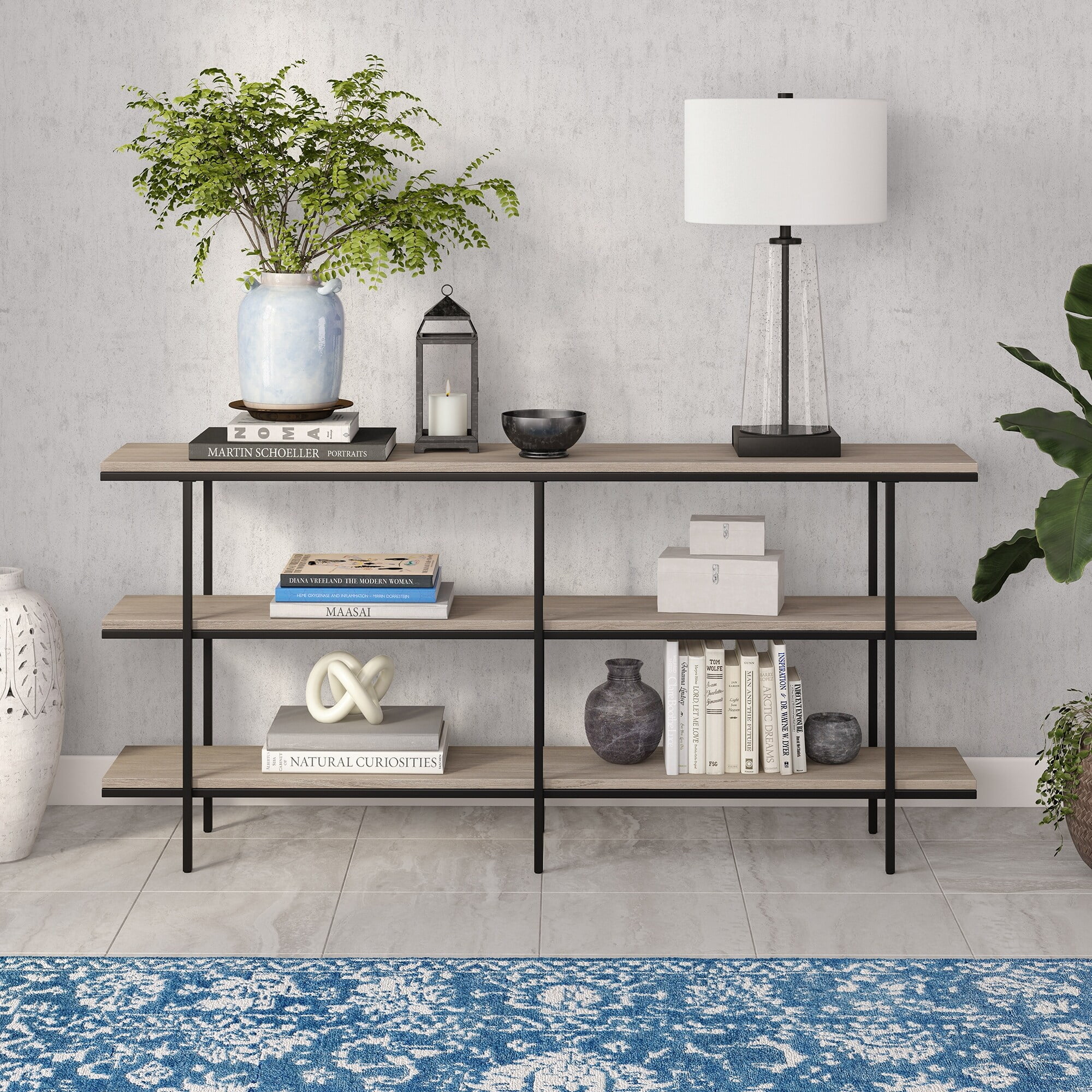 Evelyn&Zoe Harper 64″ Wide Rectangular Console Table, Black Grain
