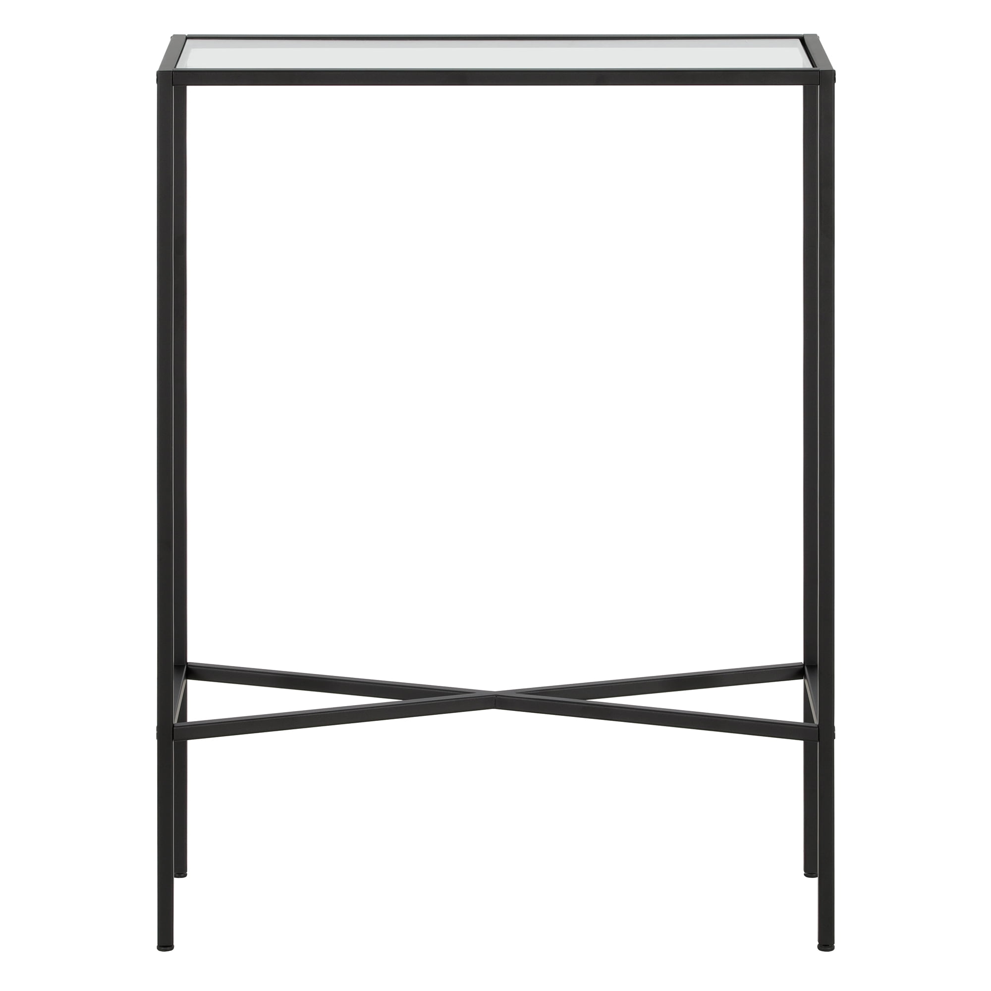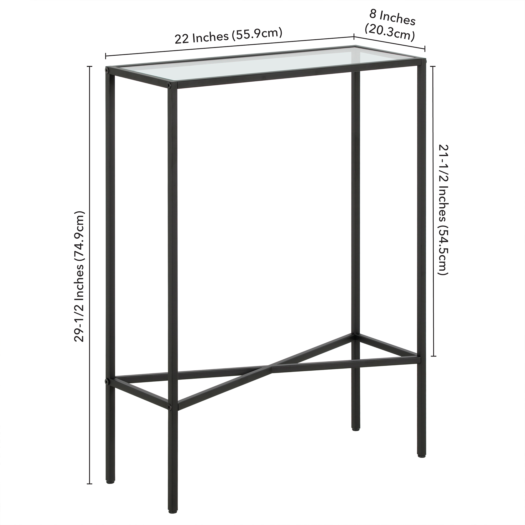 An industrial style for your living room, hallway, or bedroom. Handcrafted blackened bronze finish is applied to the steel frame. Made of durable steel and tempered glass. Table has a weight capacity of 25 lbs. Clean with a soft, dry cloth; no harsh chemicals or abrasive cleaning materials. Features easy assembly.