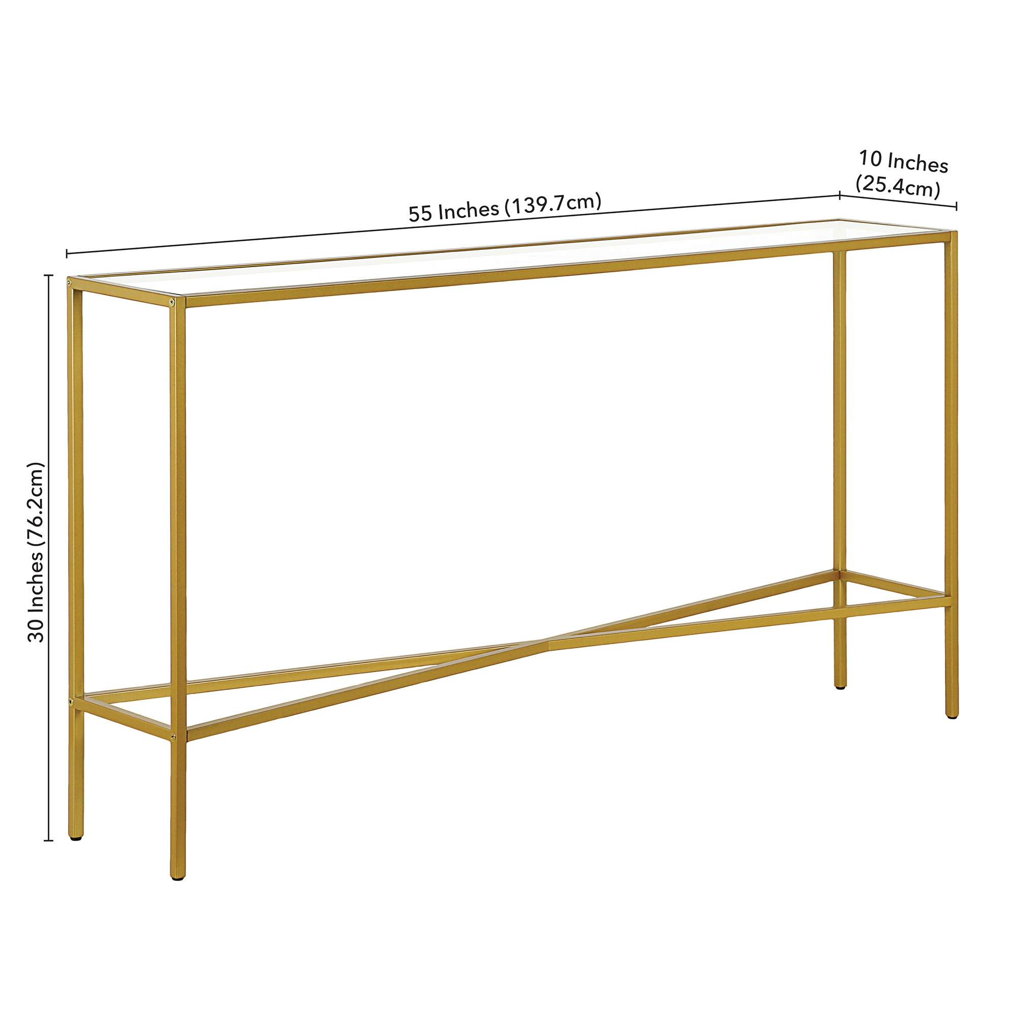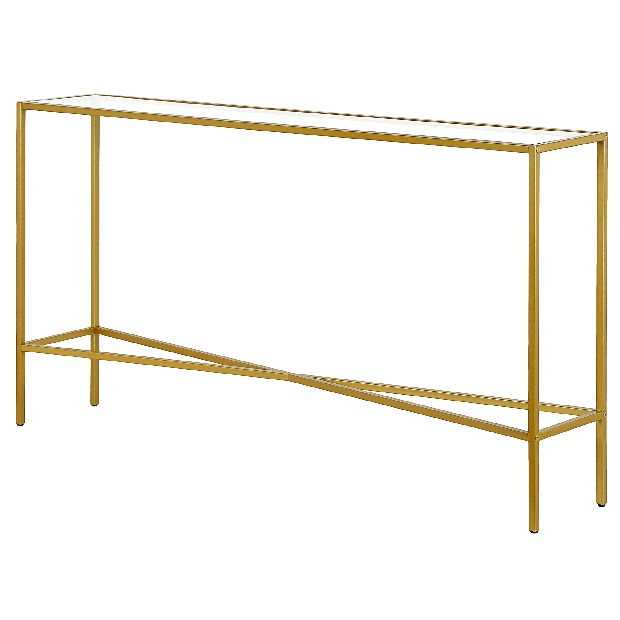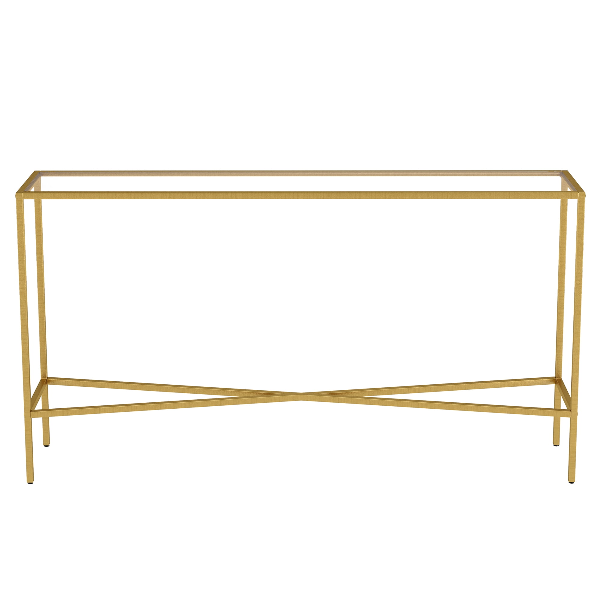 Evelyn&Zoe Henley 55″ Wide Rectangular Console Table with Glass Top, Brass