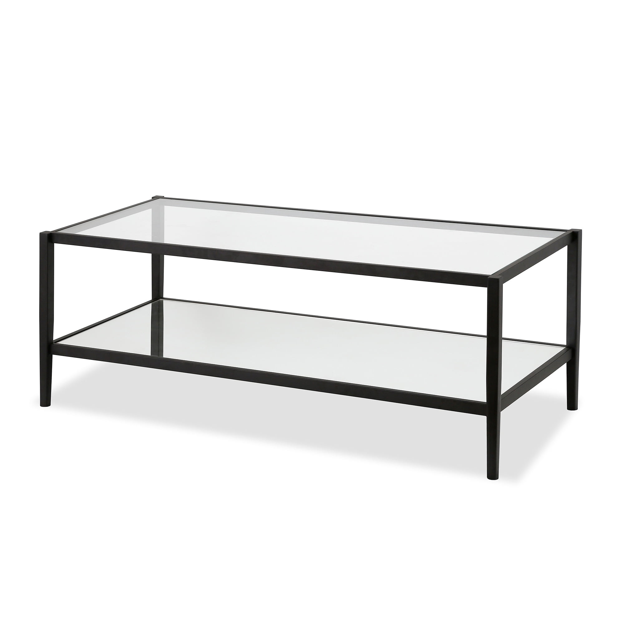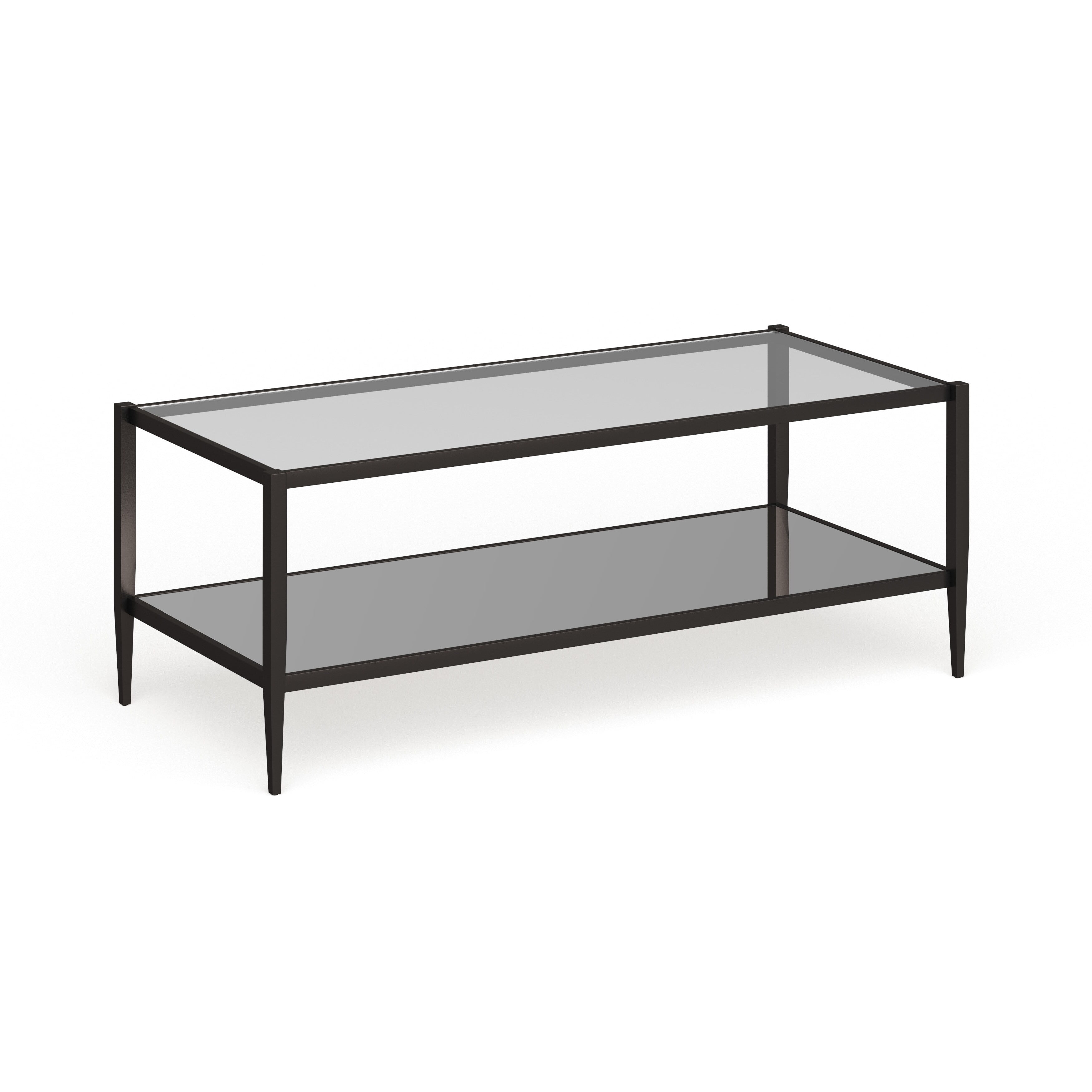 Evelyn&Zoe Hera 45″ Wide Rectangular Coffee Table with Mirror Shelf, Blackened Bronze