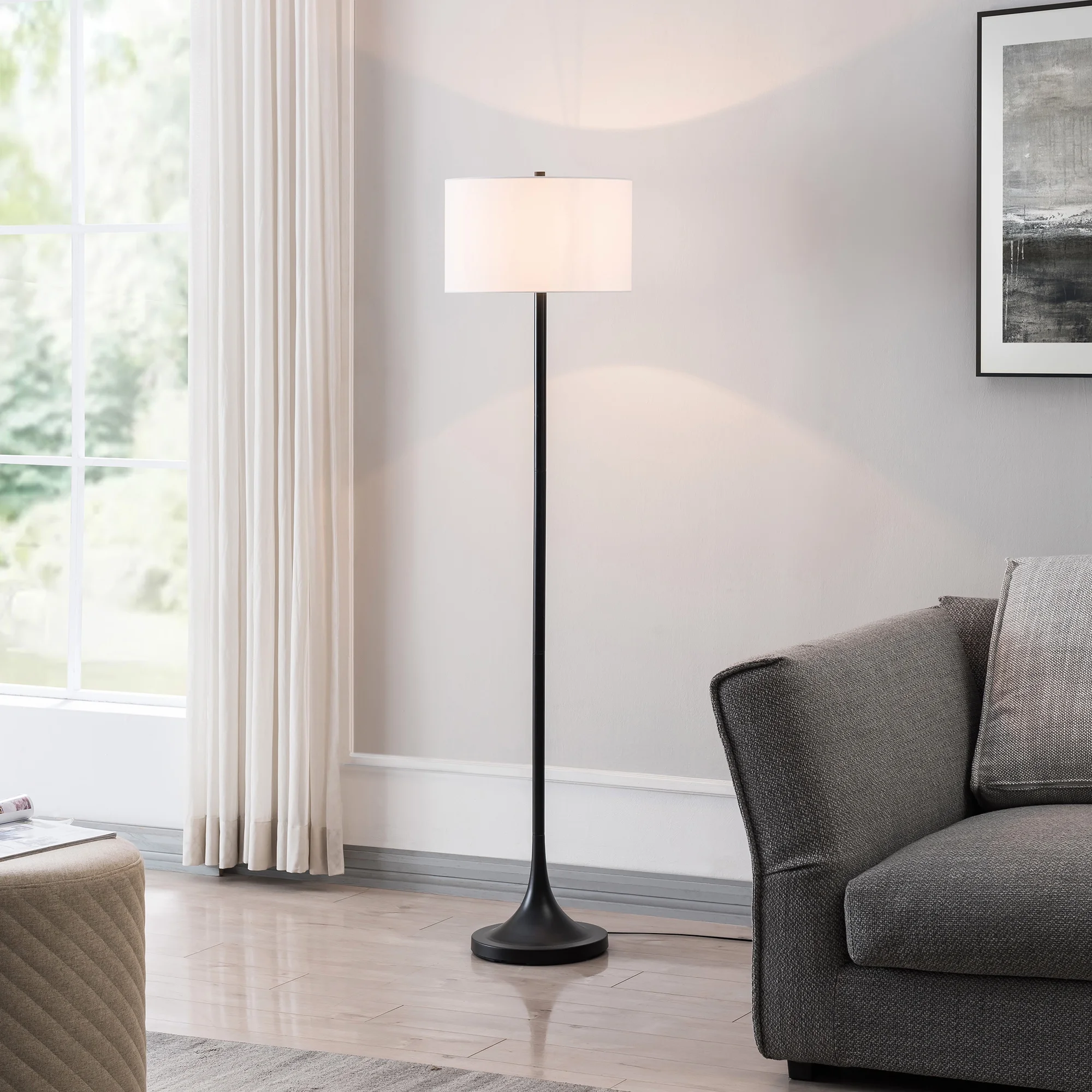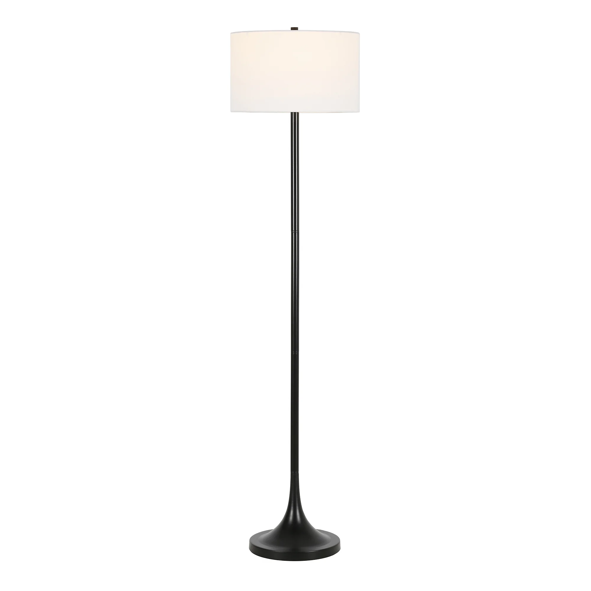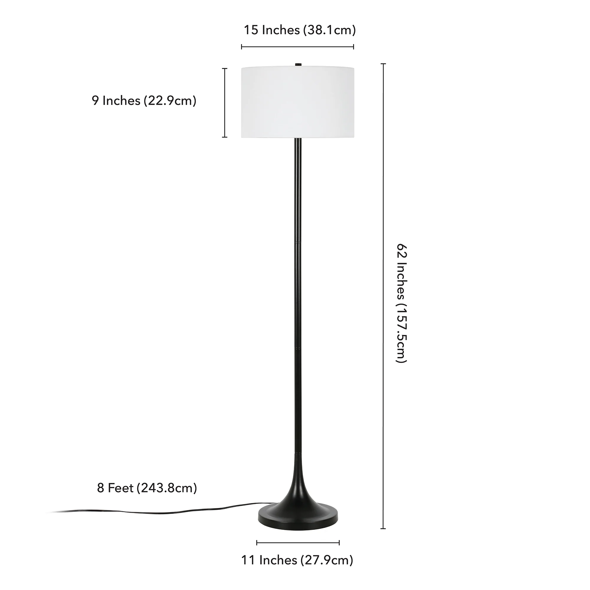 Evelyn&Zoe Josephine 62″ Tall Floor Lamp with Fabric Shade, Blackened Bronze/White