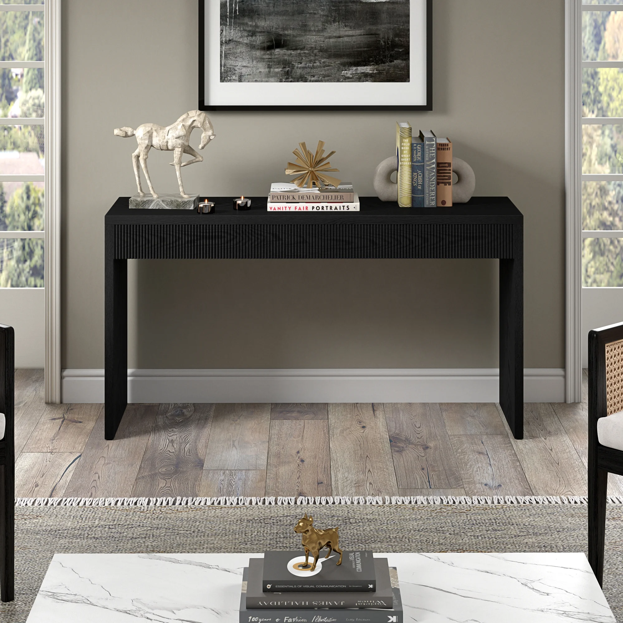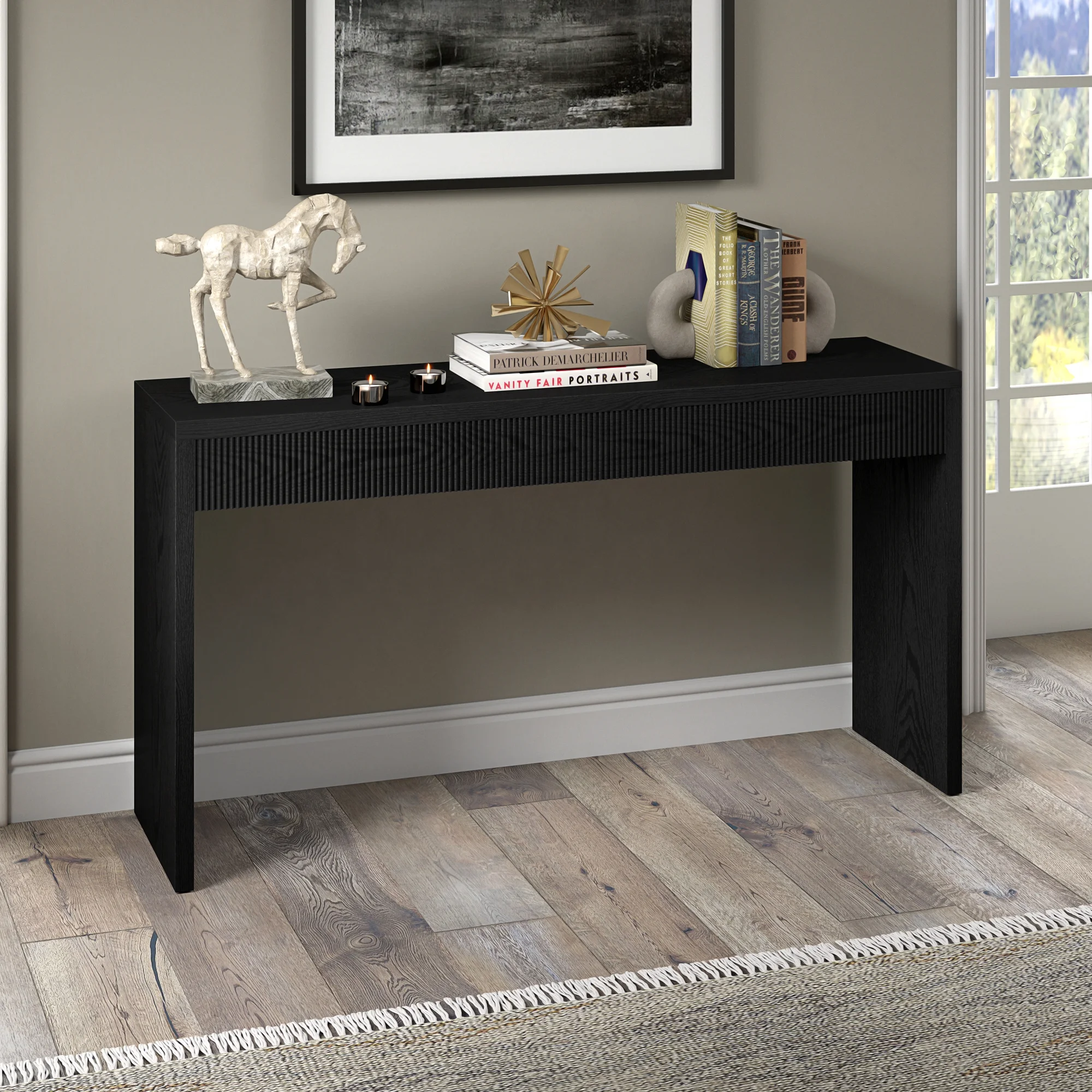 Evelyn&Zoe Lawrence 55″ Wide Rectangular Console Table, Black Grain