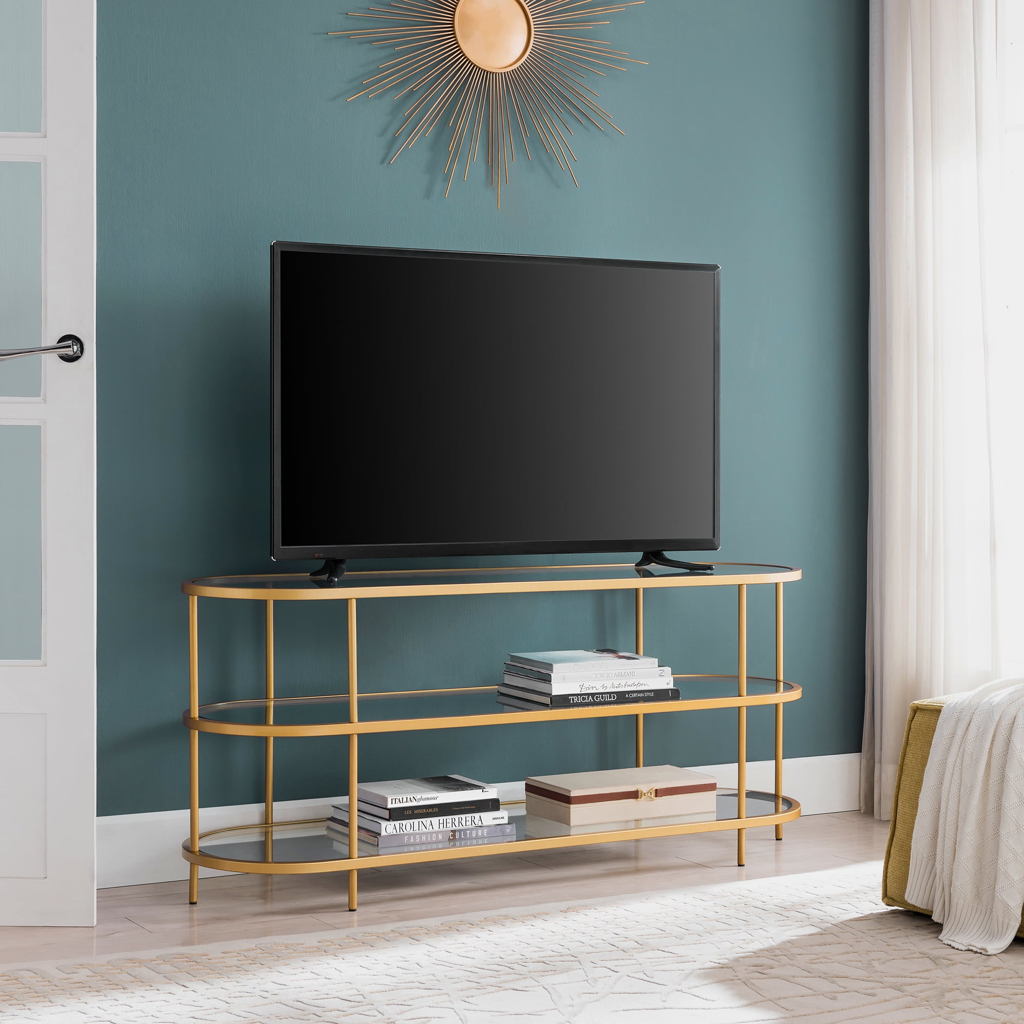 Evelyn&Zoe Leif Oval TV Stand for TV’s up to 60″, Brass