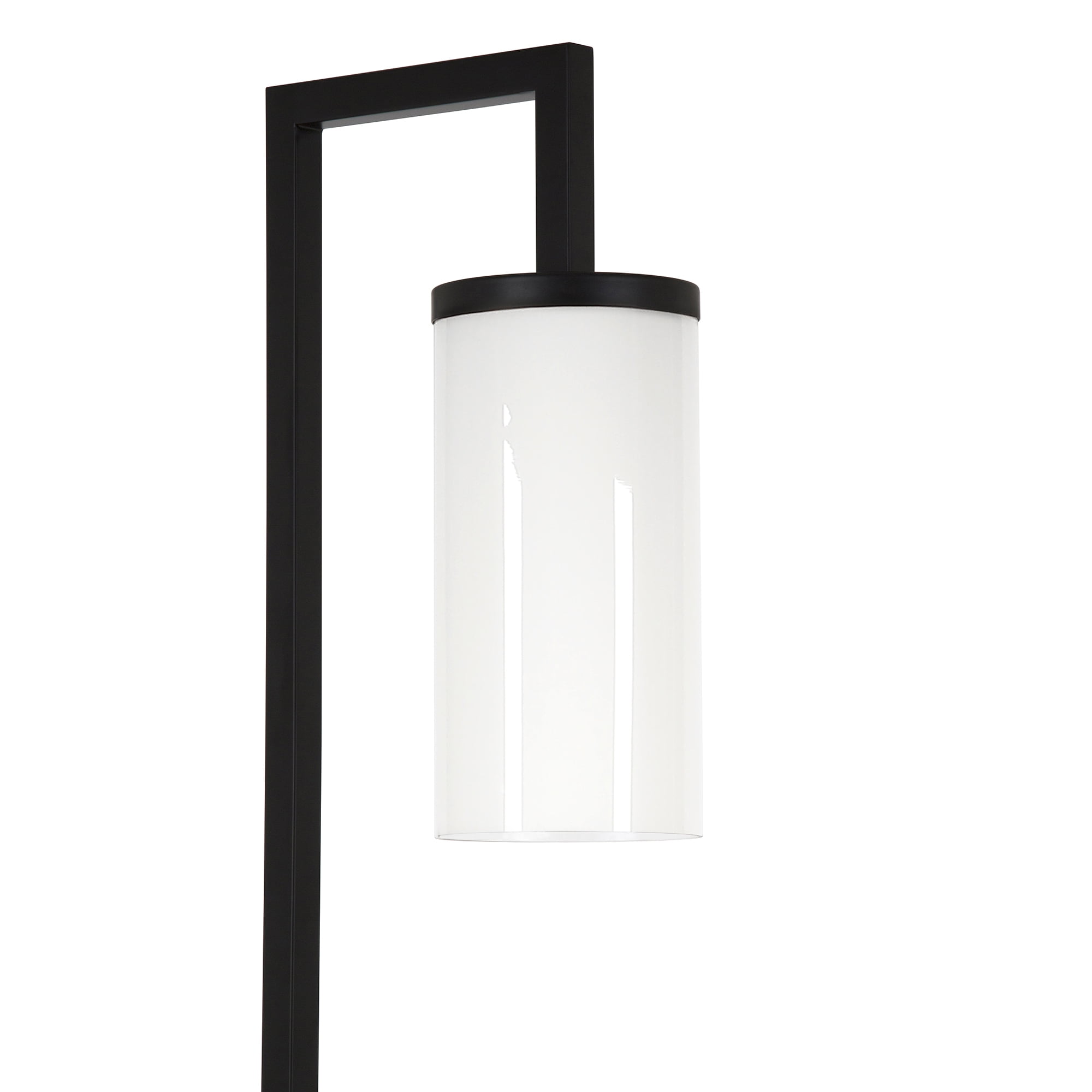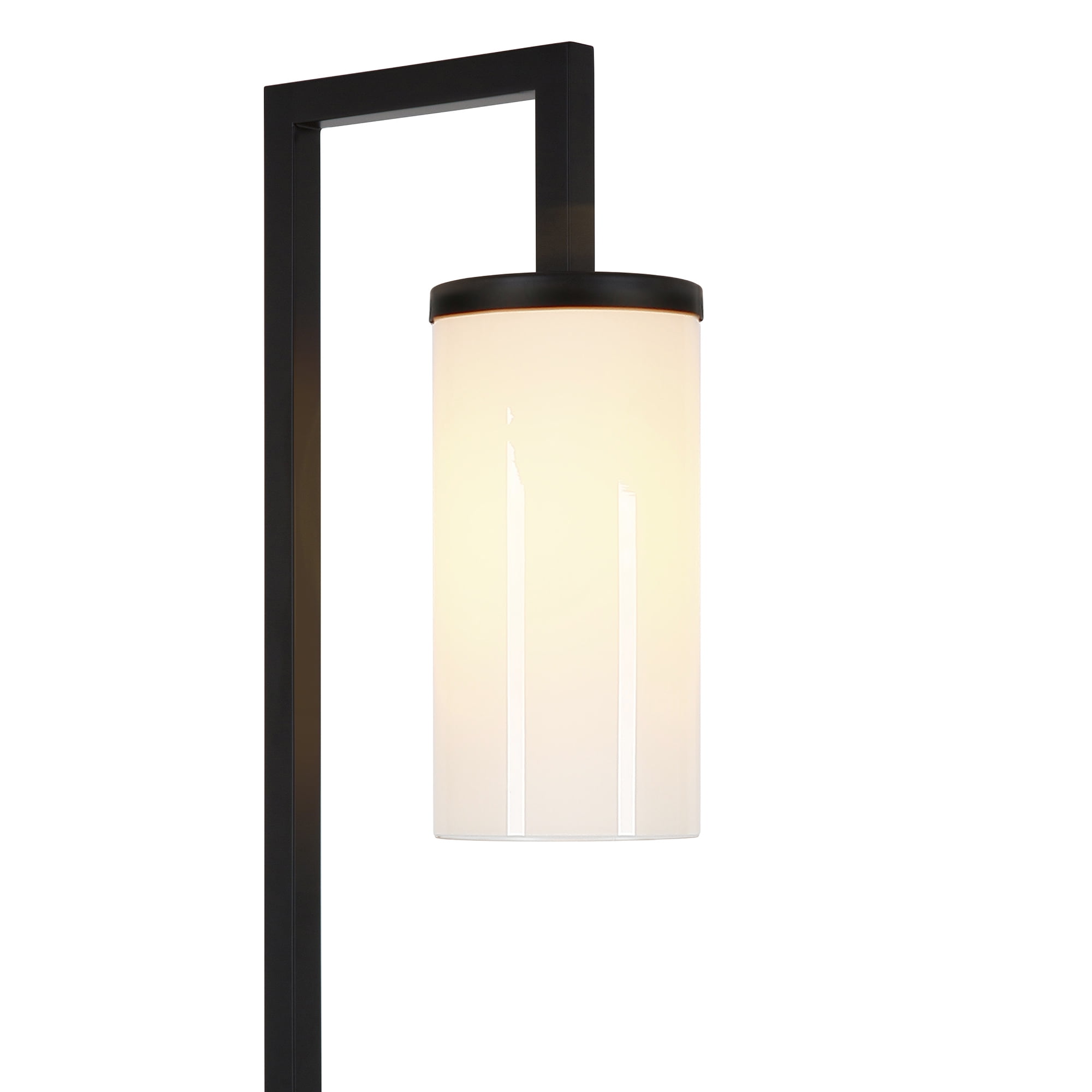 The base is finished in a classic blackened bronze. It’s paired with a hand-made cylinder shaped shade. The shade is made from glass and finished in a milky white color. Includes an 8ft cord. Premium materials have been used in the making of this product